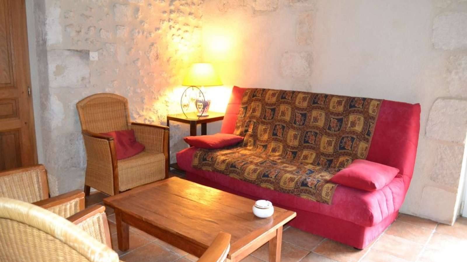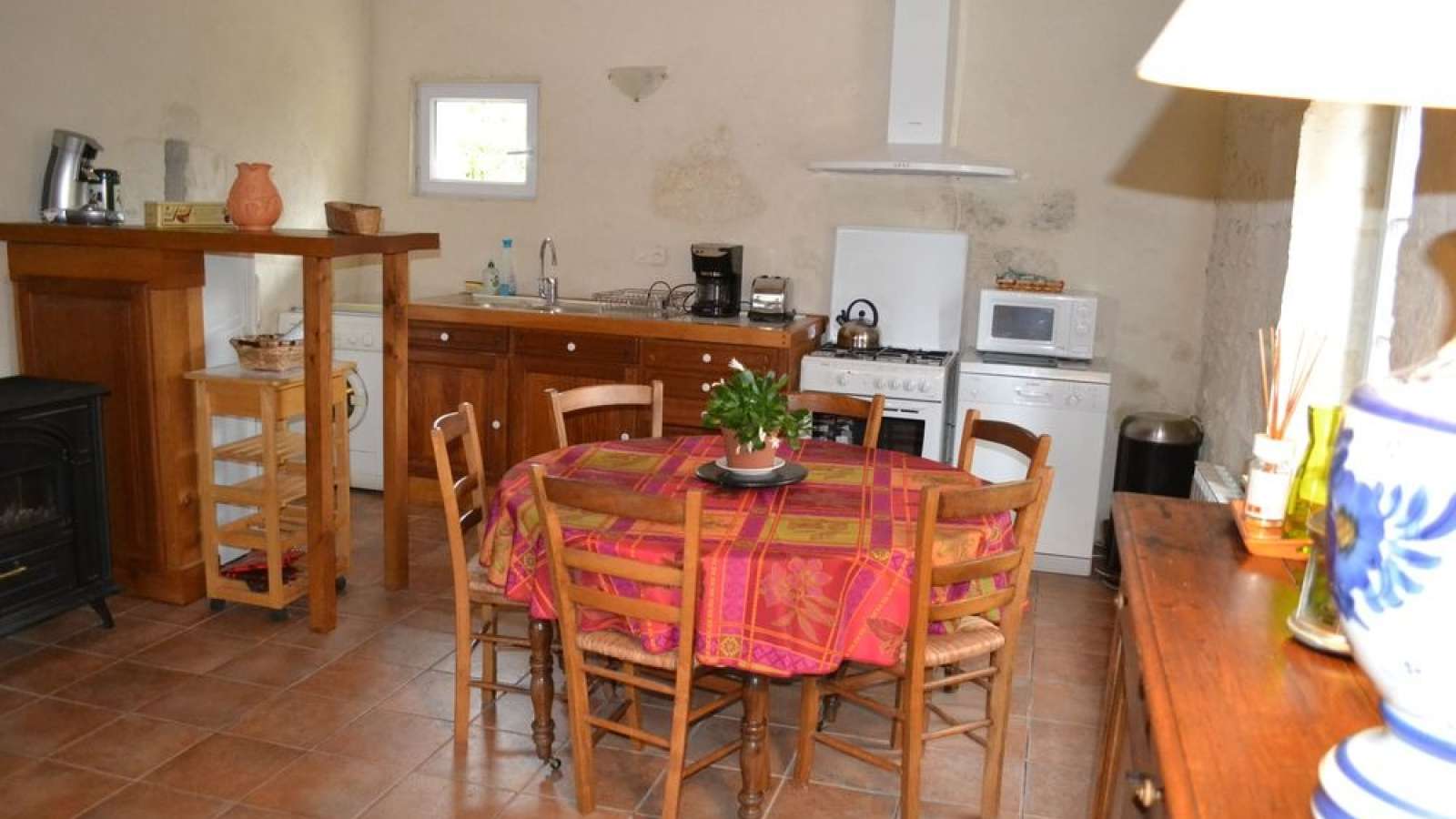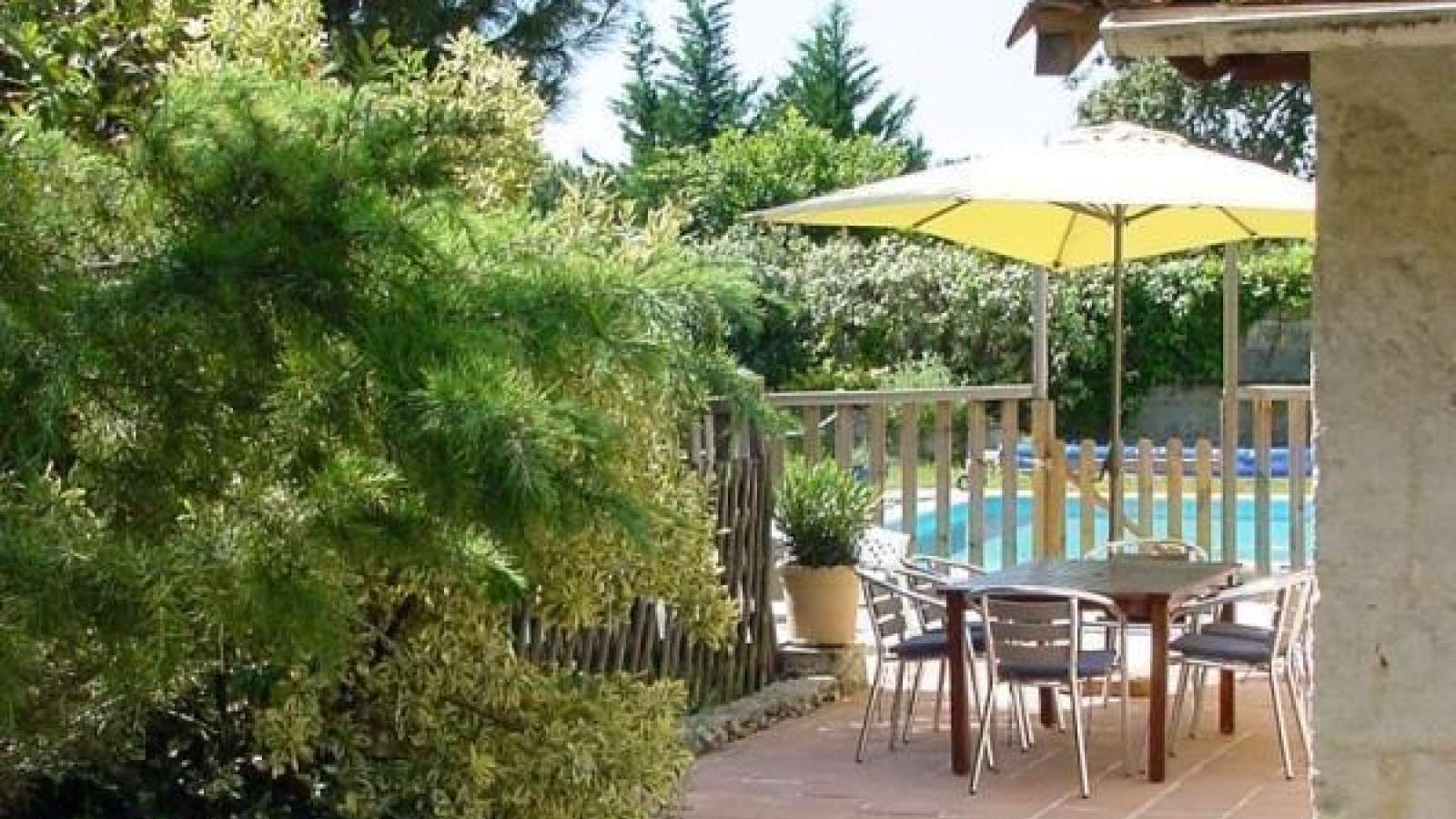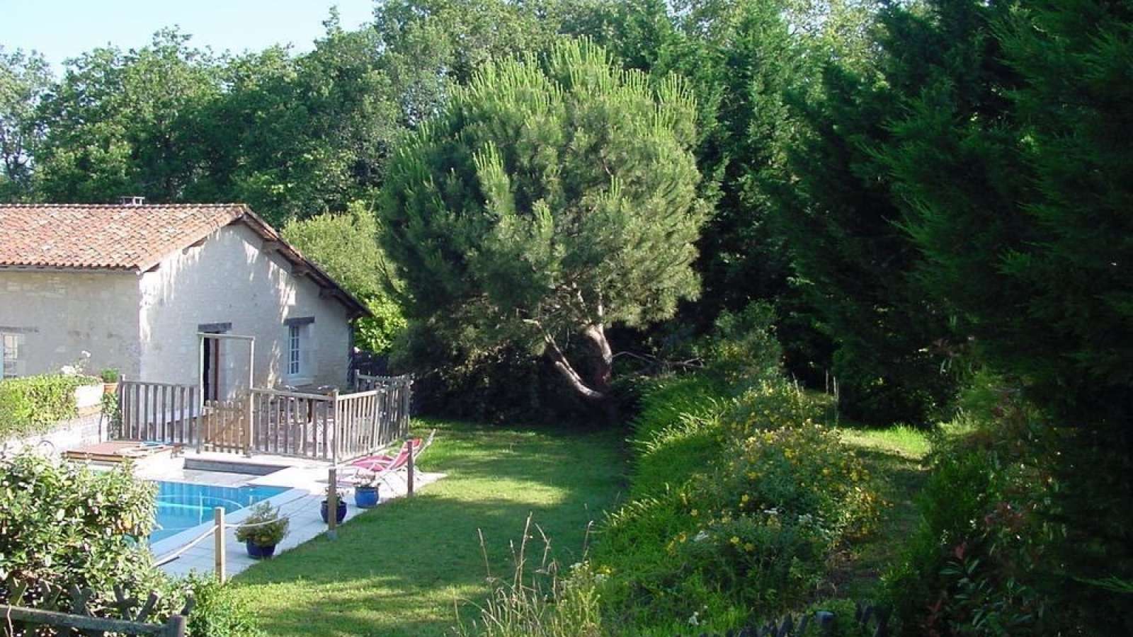 Maison de pays attenante à celle du propriétaire, sur une propriété boisée de 4 ha, à 500 m d'Aubeterre-sur-Dronne, l'un des Plus Beaux Villages de France. Terrasse et jardin indépendants. Au rez-de-chaussée : séjour avec coin cuisine, une chambre avec 1 lit 140, une chambre avec 2 lits 90, salle de bains, wc séparés. A l'étage : mezzanine avec coin lecture, une chambre avec 1 lit 160. Poêle à bois (bois fourni). WIFI. Terrasse, jardin clos privatif et piscine privative 4x8 m du 20/05 au 16/09 (non surveillée, sécurisée par alarme + barrière), terrain clos. Base de loisirs d'Aubeterre à 5 km. Ecolabel européen.