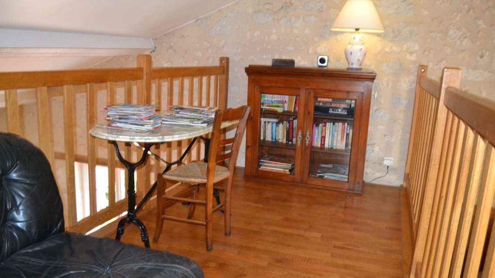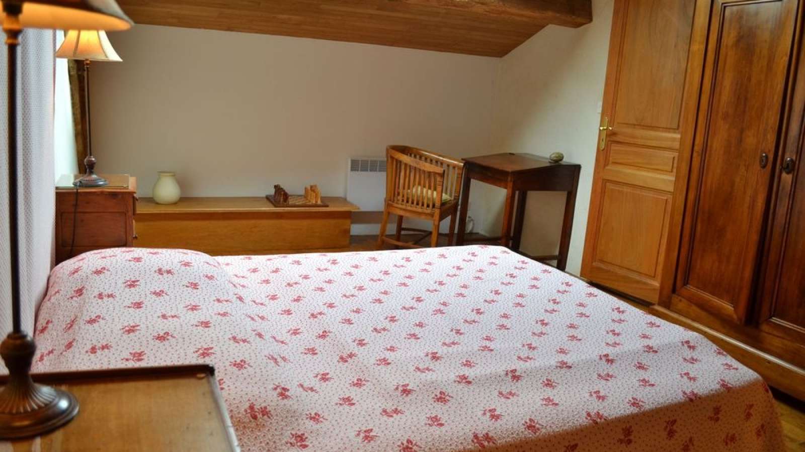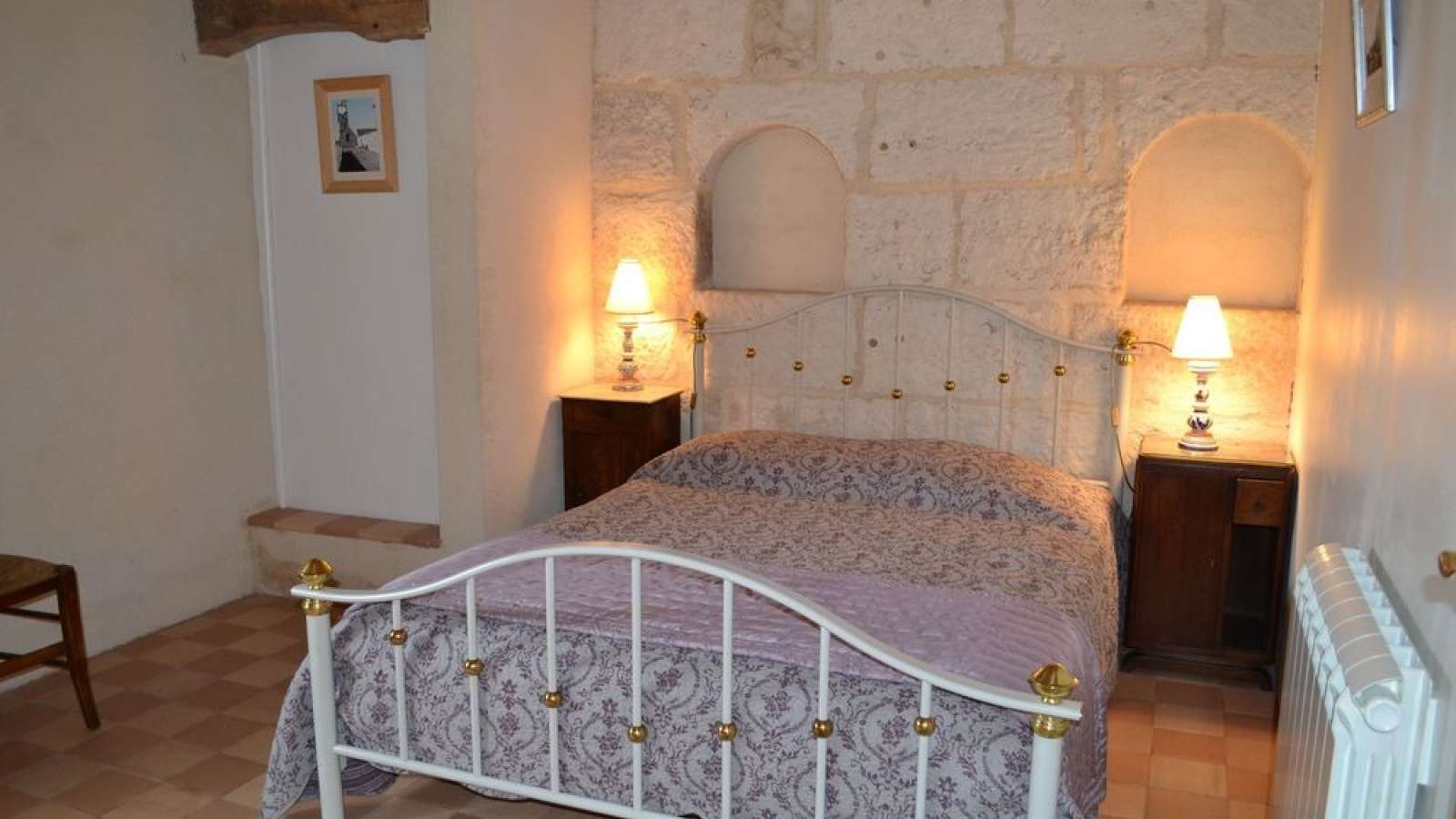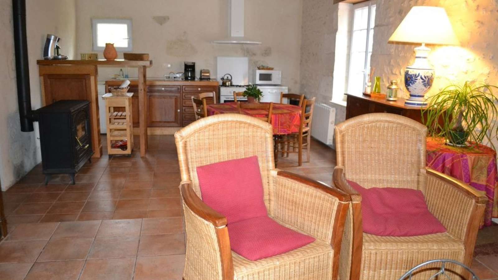 Maison de pays attenante à celle du propriétaire, sur une propriété boisée de 4 ha, à 500 m d'Aubeterre-sur-Dronne, l'un des Plus Beaux Villages de France. Terrasse et jardin indépendants. Au rez-de-chaussée : séjour avec coin cuisine, une chambre avec 1 lit 140, une chambre avec 2 lits 90, salle de bains, wc séparés. A l'étage : mezzanine avec coin lecture, une chambre avec 1 lit 160. Poêle à bois (bois fourni). WIFI. Terrasse, jardin clos privatif et piscine privative 4x8 m du 20/05 au 16/09 (non surveillée, sécurisée par alarme + barrière), terrain clos. Base de loisirs d'Aubeterre à 5 km. Ecolabel européen.