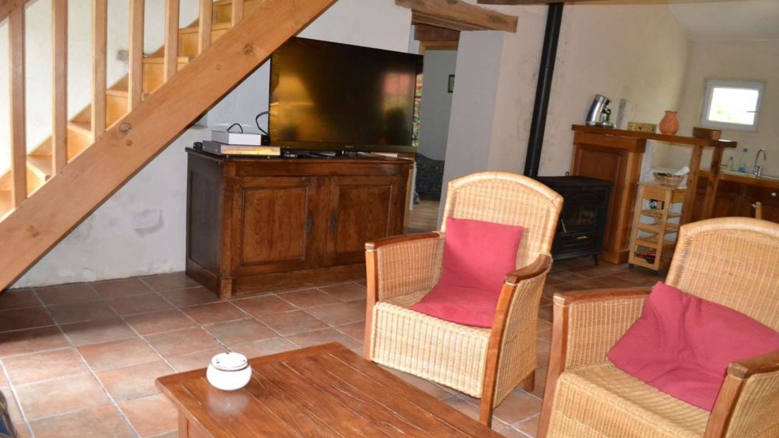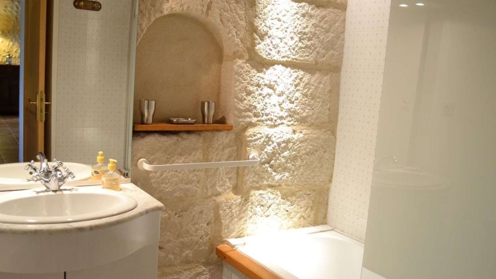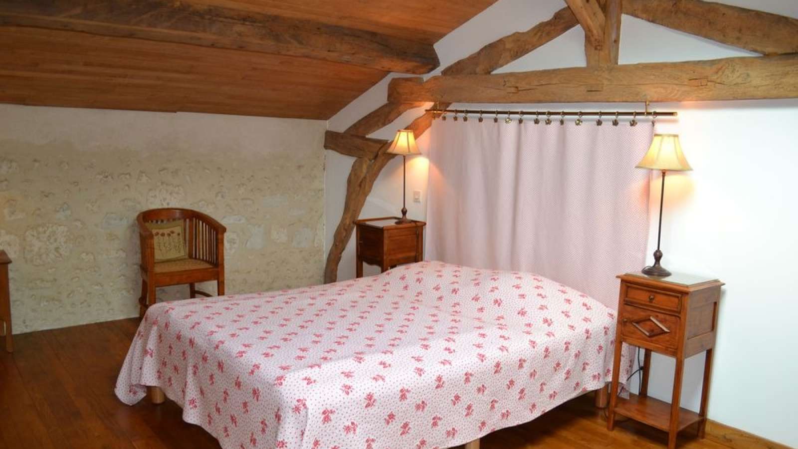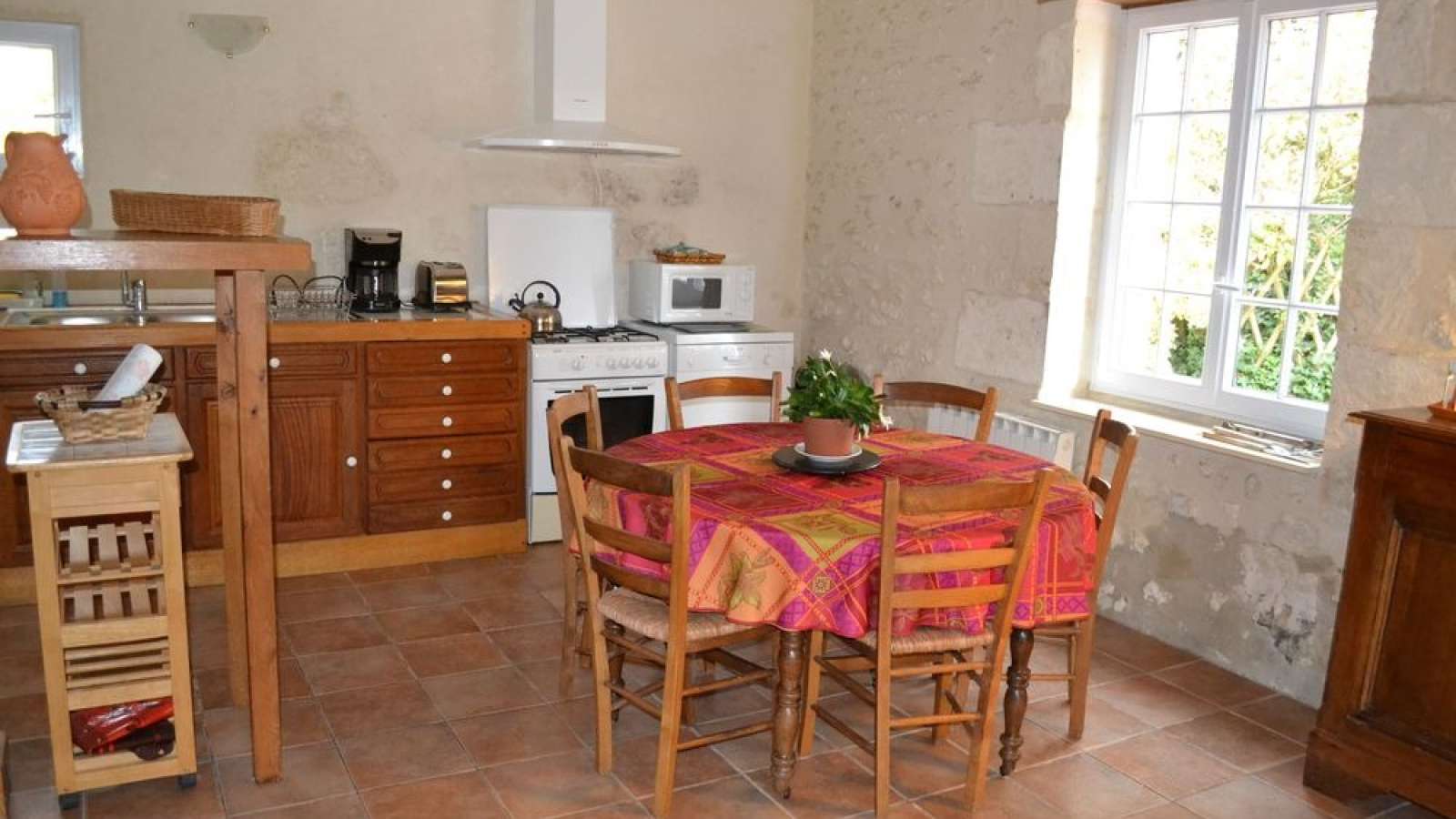 Maison de pays attenante à celle du propriétaire, sur une propriété boisée de 4 ha, à 500 m d'Aubeterre-sur-Dronne, l'un des Plus Beaux Villages de France. Terrasse et jardin indépendants. Au rez-de-chaussée : séjour avec coin cuisine, une chambre avec 1 lit 140, une chambre avec 2 lits 90, salle de bains, wc séparés. A l'étage : mezzanine avec coin lecture, une chambre avec 1 lit 160. Poêle à bois (bois fourni). WIFI. Terrasse, jardin clos privatif et piscine privative 4x8 m du 20/05 au 16/09 (non surveillée, sécurisée par alarme + barrière), terrain clos. Base de loisirs d'Aubeterre à 5 km. Ecolabel européen.