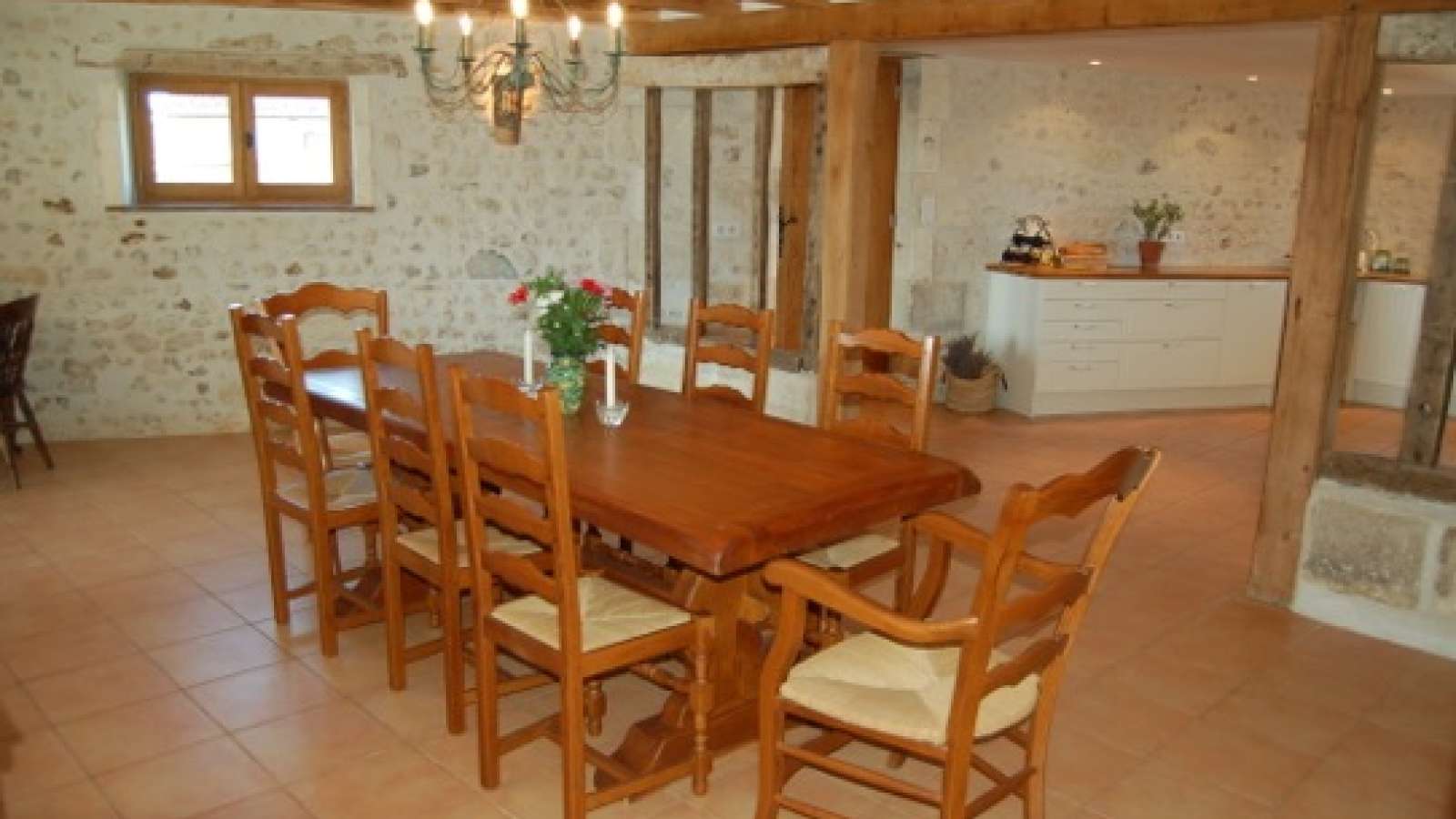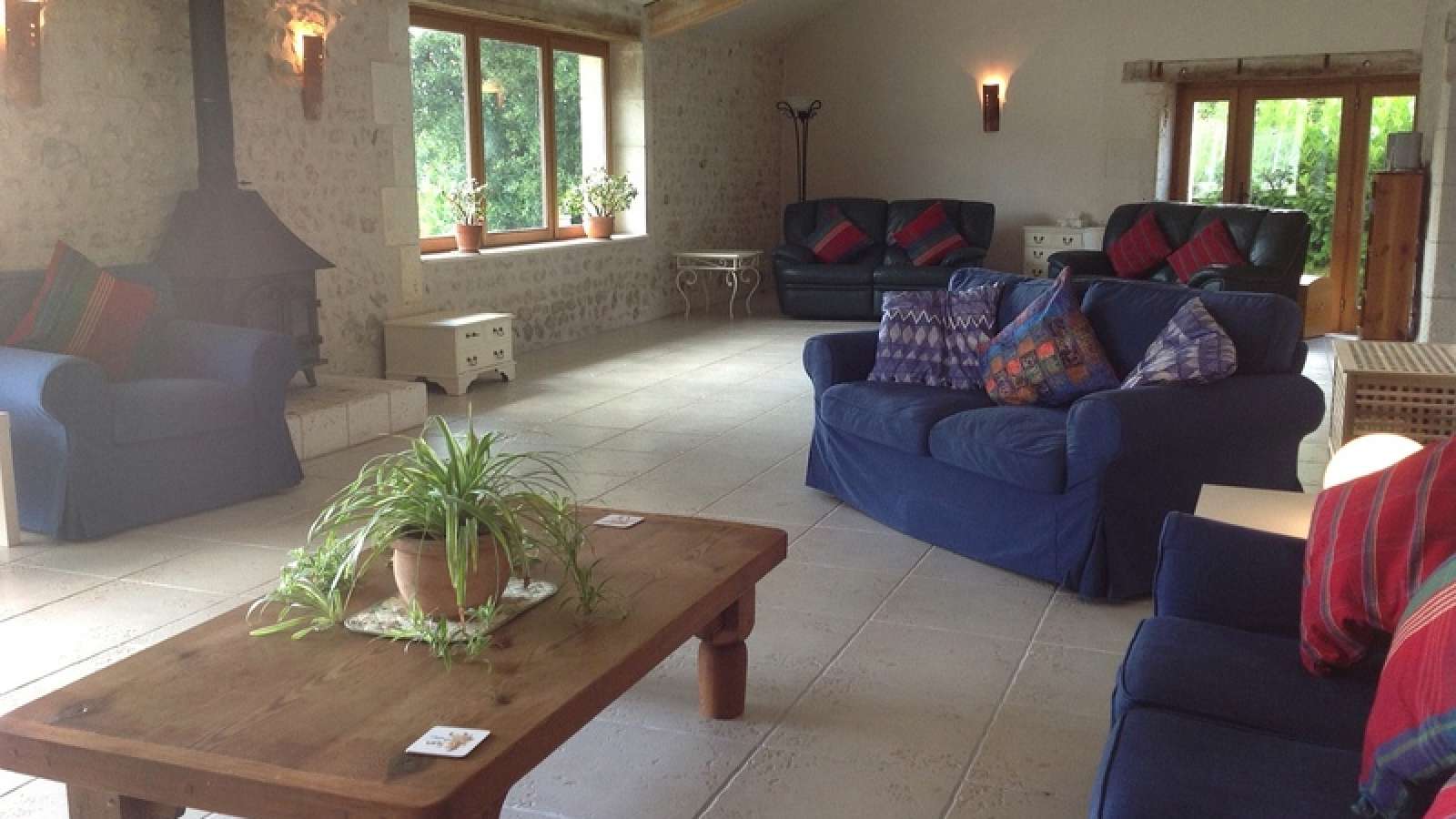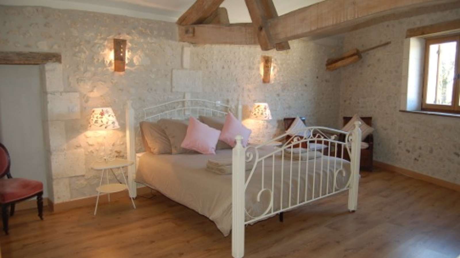 Belle et vaste maison de 290 m² en moellons apparents avec piscine chauffée ( privative aux locataires) située dans la campagne vallonnée du sud Charente. Au rez de chaussée : cuisine, salle à manger, 2 grands salons de 80 m² et de 35 m², 1 chambre avec 2 lits 90 et 1 salle d'eau avec wc. A l'étage : 2 chambres avec 1 lit 140, 2 chambres avec 2 lits 90 et 1 chambre avec 1 lit 180. Une salle d'eau (douche italienne) privative à une chambre et salle de bains (douche italienne + baignoire). Equipements : télévision, lecteur DVD, lave-linge, lave-vaisselle, micro-ondes, plaque vitrocéramique, four, deux réfrigérateur, réfrigérateur, congélateur, internet (wifi) Eau chaude produite par des panneaux solaires. Chauffage en sous-sol + poêle à bois. A l'extérieur, vous pourrez profiter du jardin privatif de 4000 m², de la piscine chauffée, de la salle de jeux ( vélos, table de ping-pong) , du badminton, jeux de boules et de croquet.
