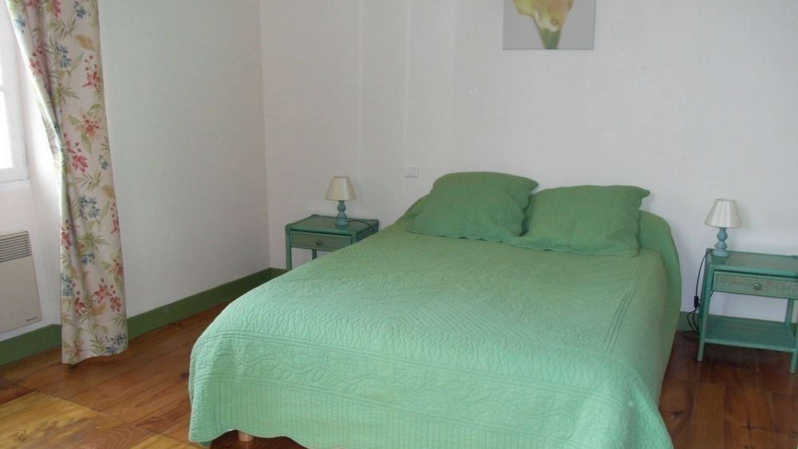 Gîte aménagé dans une maison ancienne rénovée de caractère régional attenante à d'autres habitations, dans un bourg du Sud Charente. Au rez-de-chaussée : salon, salle à manger, cuisine, salle d'eau, wc séparés. A l'étage : une chambre avec lit 140, une chambre avec lit 120, deux chambres chacune avec 2 lits 90, salle de bains, wc. Lit bébé à disposition. Accès internet en WIFI, lecteur DVD, jeux de société. Terrasse de 28 m² et jardin clos de 700 m², tous deux privatifs, parking dans cour fermée. Jeux divers (badminton, pétanque). Tous les commerces sont sur place, ainsi que la piscine municipale. Chauffage à régler sur place selon la consommation. Proche voie verte (500m), ancienne voie ferrée aménagée en piste cyclable adaptée à la promenade familiale.