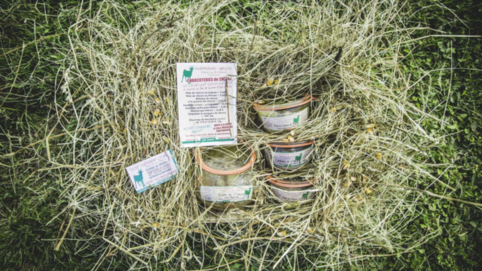 Pierre et Mélanie Dupperay élèvent des chèvres dans le Sud Charente, nourries au foin de luzerne et aux céréales. Ils proposent des charcuteries de chèvres en vente directe à la ferme et dans les magasins partenaires. Accent charentais garanti ! Détail des produits que vous retrouverez à la ferme : Pâté de chèvre au Cognac : 5,70€ Pâté de chèvre au Pineau : 5,70€ Rillettes de chèvres à la graisse de canard : 5,70€ Sauté de chèvre aux légumes : 13,00€ Saucisse sèche pure chèvre : 6,50€ Chorizo pur chèvre : 6,50€ Chipolata et merguez de chèvre : 13,50€/kg Chevreau de boucherie (saison) : de 11,50€ à 13€/ kg Terrine forestière : 5,70€