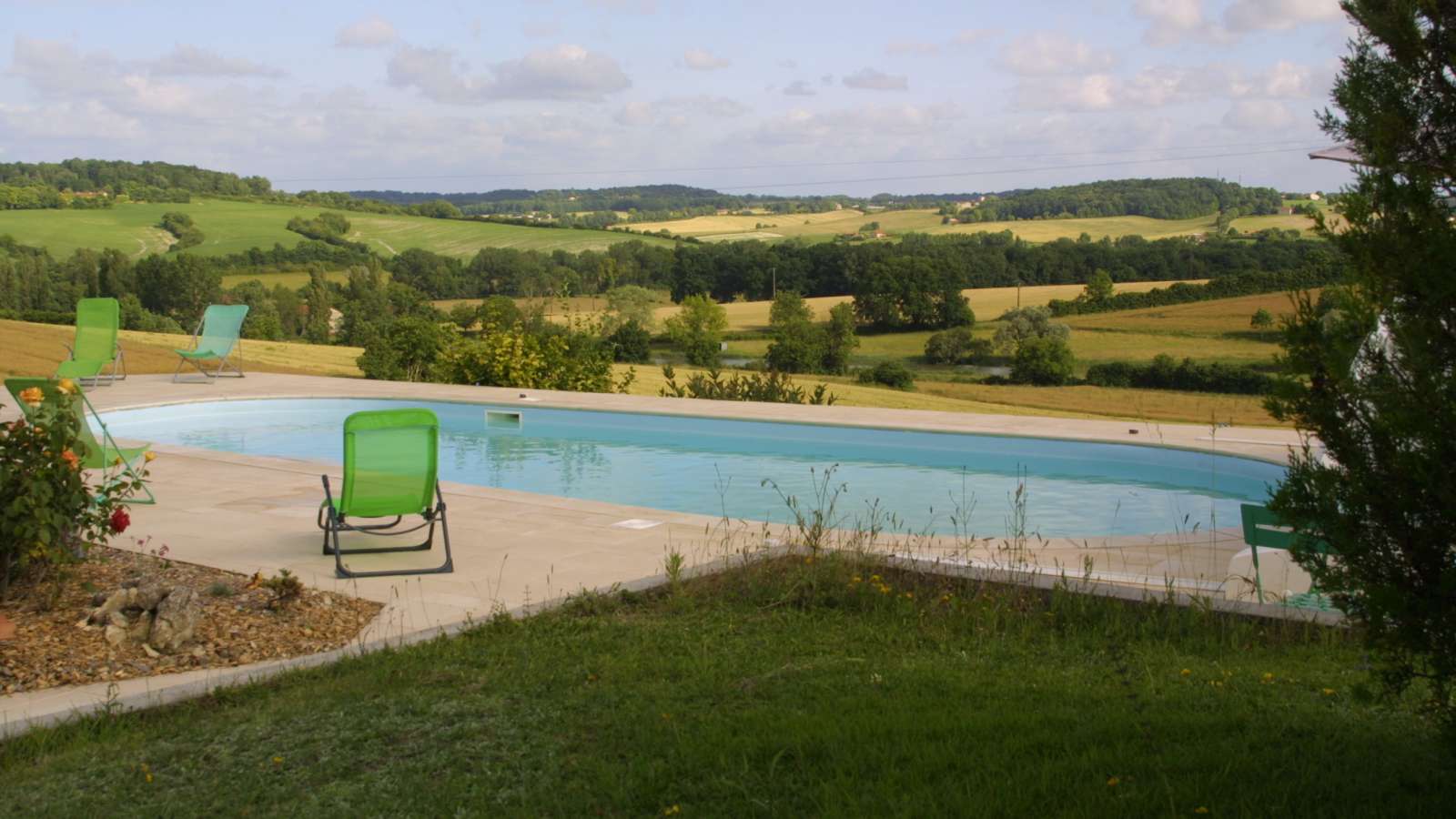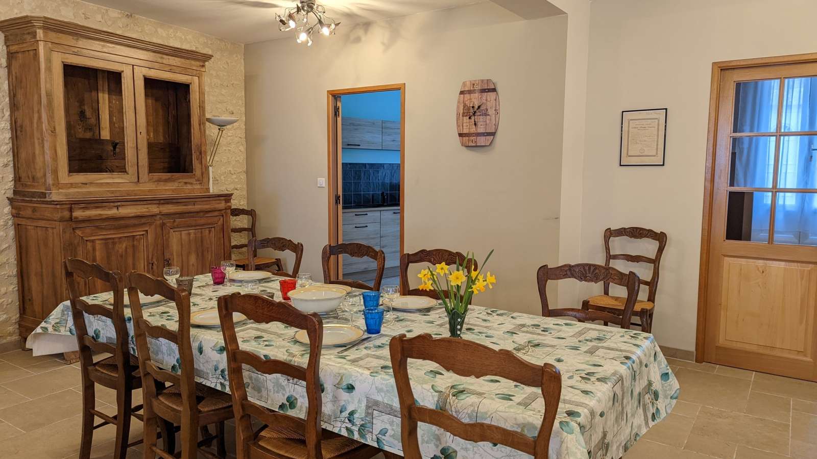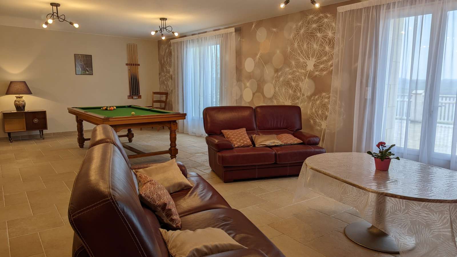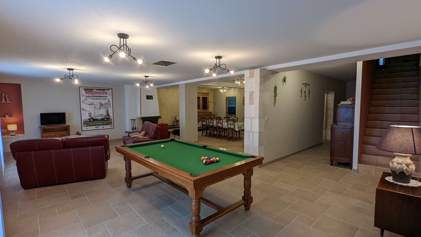 Ancienne grange entièrement rénovée avec une vue dégagée sur les vallons du Sud Charente. Dans un petit bourg paisible du Sud Charente, ancienne grange entièrement rénovée avec une vue magnifique et dégagée sur les vallons. Maison spacieuse et confortable avec accès à une piscine à partager. Gîte mitoyen à un autre gîte avec accès indépendant. Dans un petit village, cette maison spacieuse vous offre une grande pièce de vie (93 m²) avec cuisine, séjour, salon avec insert et billard à laquelle on accède par 3 marches descendantes. Toujours au rez-de-chaussée : WC, accès au sous-sol avec la buanderie privative et une salle de jeux avec baby-foot (commune avec un autre gîte). Accès à une grande terrasse extérieure de 110m² mitoyenne à l'autre gîte depuis la pièce de vie. A l'étage, deux chambres avec accès à une terrasse (une avec 1 lit 130 et l'autre avec 1 lit 140 et 1 lit 120). Toujours à l'étage, 3ème chambre avec 2 lits 90. salle de bains avec baignoire et grande douche. WC séparés. Accès au jardin de 1000m² par le sous-sol et accès à la piscine 11x5m par le jardin (à environ 60m) ouverte du 15/5 au 30/9, à partager avec l'autre gîte. Piscine sécurisée par un abri couvert. Abri voitures au sous-sol. Matériel bébé : lit, baignoire, chaise haute, pot. Internet (fibre). Couverture téléphonique 4 G SFR, Orange.
