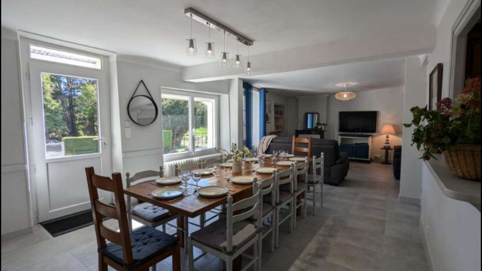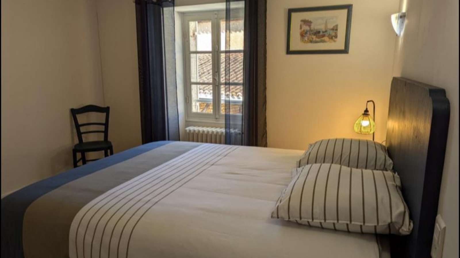 Dans un hameau tranquille du Sud Charente, grand gîte de 12 personnes à partager entre amis ou plusieurs familles et vos animaux sont même les bienvenus. Ancienne maison du 19ème siècle, vous apprécierez ses espaces et sa luminosité. Le village est très calme et vous aurez accès à des chemins de randonnée sur place. La maison est indépendante sans mitoyenneté. Accès par 3 marches à la maison. Au rez-de-chaussée, un grand séjour avec espace repas, coin salon et cuisine aménagée ouverte puis une arrière cuisine. Ensuite, la partie nuit est composée de toilettes, d'une salle de bain, de 2 chambres équipées chacune d'un lit 140 x 190, d'une 3ème chambre avec 2 lits de 90 x 190 et une 4ème chambre aménagée avec un lit 160 x 200. A l'étage, 1 chambre avec un lit de 140 x 190, 1 autre chambre équipée d'un lit 160 x 200, WC indépendants et salle d'eau. Accès Internet/fibre grâce à une box. Chauffage central au fioul. Pour bébé : Lit, chaise haute, matelas à langer, pot. Jardin arboré clos de 2000 m², non attenant, séparé de la maison par une petite route non passagère qui dessert le hameau. Terrasse de 15 m² avec pergola, plancha/barbecue au gaz, salons de jardin. Boulodrome dans la partie non close. Ancien hangar aménagé avec ping-pong. et tables. Parking, abri couvert, possibilité de garage pour motos et vélos. Piscine de Montmoreau à 10 mn.