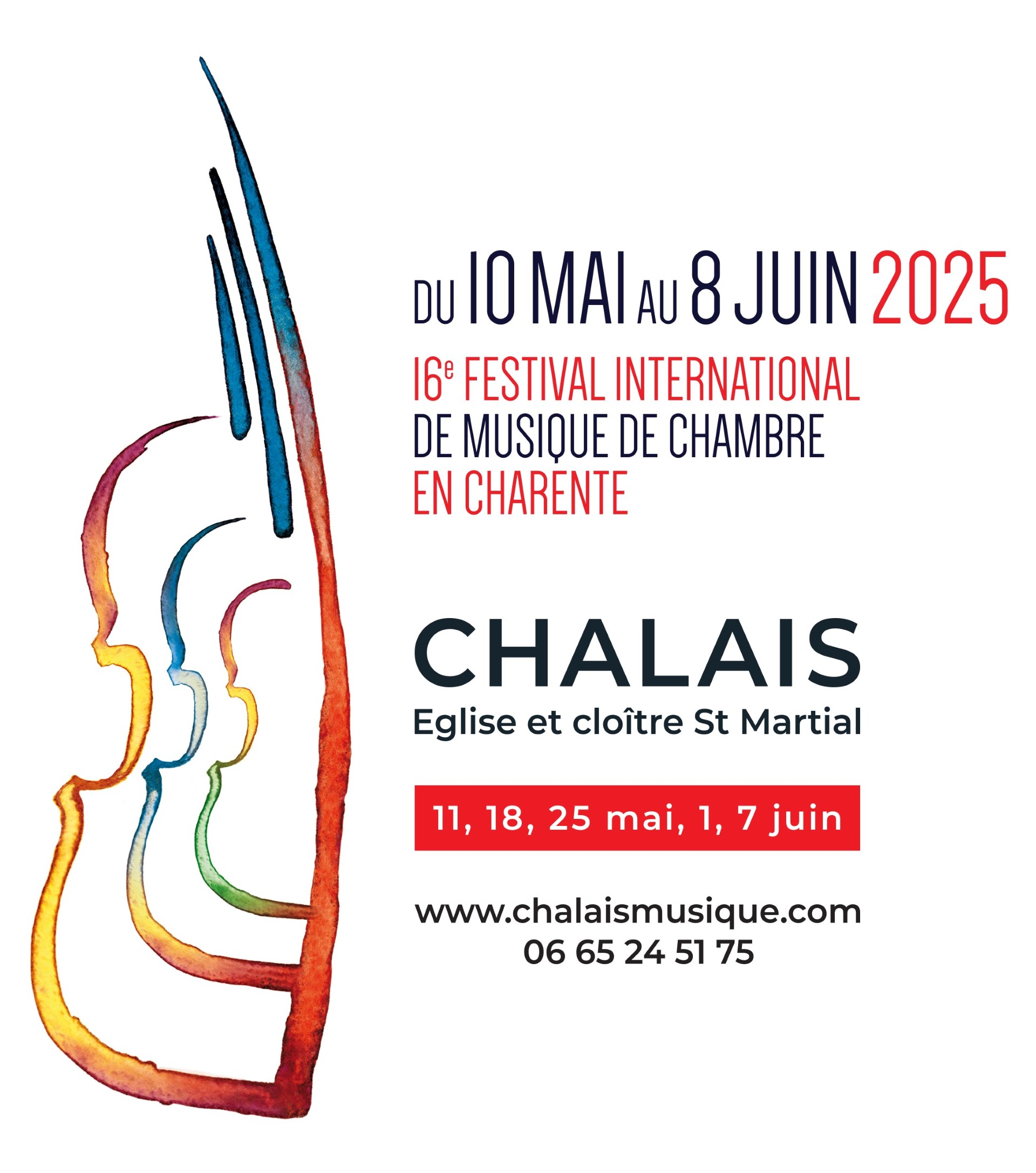Le Festival International de Musique de Chambre en Charente présente des musiciens de renommée internationale venant de toute l’Europe. Cinq week-ends d’excellence musicale et d’exaltation ; quel beau festival, intéressant, original, inattendu et…réussi ! La mission du très populaire Festival International de Musique de Chambre en Charente, maintenant en sa 17ème année, peut être résumée en trois simples mots : qualité, variété, accessibilité. Mais par-dessus tout, c'est le plaisir qu'offre vraiment le Festival. Plaisir sur le visage du public quand il écoute de tels joyaux, des performances si pleines d’énergie, plaisir éprouvé à l’écoute de musiciens internationaux jouant ensemble et pour nous, comme organisateurs, plaisir de pouvoir partager notre passion pour la musique de chambre avec d’anciens et de nouveaux amis, des collègues et un public toujours plus important dans ce magnifique petit coin de la Charente. Le programme vous sera prochainement communiqué.