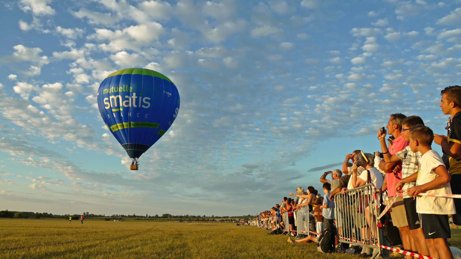 À l’aérodrome de Jonzac-Neulles, envol d'une soixantaine de montgolfières dont un quarantaine seront en compétition pour la 24ème Coupe d’Europe de montgolfières. En attendant l'envol, vous pourrez découvrir dès 10h les nombreuses activités qui ont lieu toute l'année à l’aérodrome de Jonzac-Neulles par l'aéroclub de Jonzac en Haute-Saintonge et le monde merveilleux de l’aéronautique. Plusieurs ateliers seront installés dans le hangar de l’aéroclub : - simulateurs de vol, - un stand du musée aéronaval de Rochefort, avec le "nez" d’un super étendard et son siège éjectable, - un stand d’aéromodélisme, - une présentation du Sonex, ULM métallique de construction amateur, - une présentation de l’histoire des bombes en ciment pendant la guerre, - un stand BIA (Brevet d’initiation à l’aéronautique) et de l’école de pilotage de l’aéroclub, - un ULM Super Guépard. Enfin, les trois avions du club permettront par ailleurs d’effectuer des vols "découverte". Manifestation ouverte à tous et gratuite Programme de l’étape : animation et présentation de la soirée, briefing de l’épreuve, préparation de l’envol, envol de la compétition et des vols “Fiesta”. Les horaires peuvent être modifiés en raison des conditions météorologiques