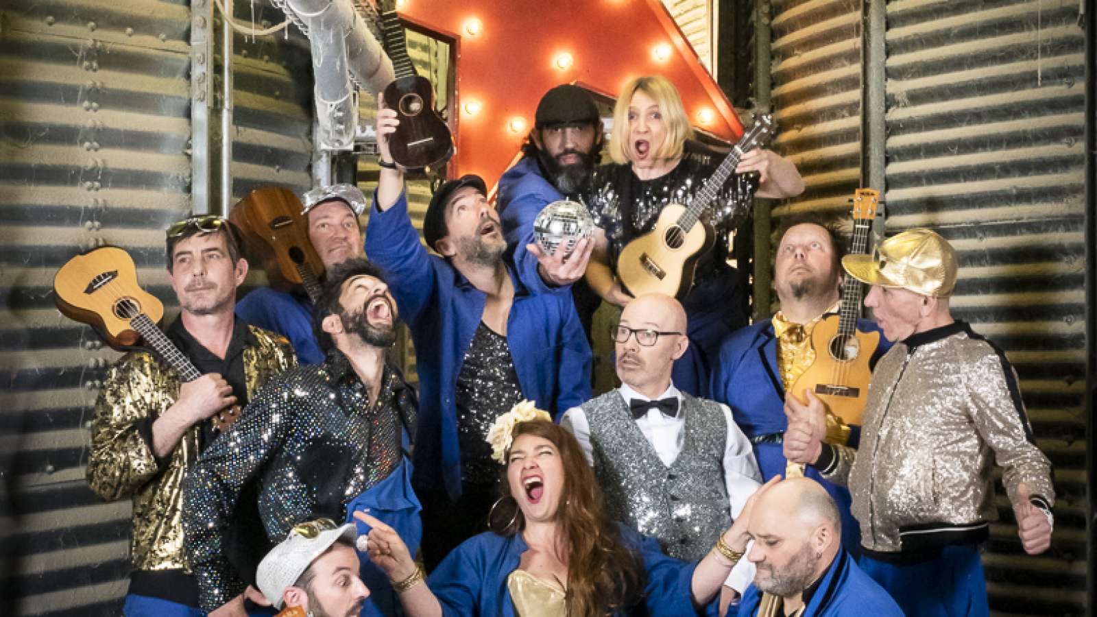 Big Ukulélé Syndicate – Cie Intermezzo Samedi 23 mai à 20h30 au Vingt-Sept à Rouillac Un bal ? Oui, mais version B.U.S. Big Ukulélé Syndicate : décalé, joyeux, foutraque… et totalement irrésistible. Sur scène, une quinzaine de musiciens armés de ukulélés revisite des tubes pop-rock avec des orchestrations jubilatoires. En smoking ou en boa, diva ou syndicaliste, les personnages s’affrontent, se répondent, se taquinent. Ça chante, ça groove, ça rit et ça joue avec les codes du bal populaire pour mieux les dynamiter. Le public n’est pas seulement invité à danser… il est entraîné dans un vrai show collectif. Venez bouger, chanter, rire et danser… jusqu’à l’infini (ou presque). Rock, valse, zouk, salsa, funk… trois heures d’ambiance survoltée pour clore la saison en beauté, comme on l’a commencée : la musique dans les oreilles et les pieds sur la piste ! Durée : 3h Plein tarif : 22€ Tarif CE : 20€ Tarif réduit : 18€ Tarif -16 ans : 12€