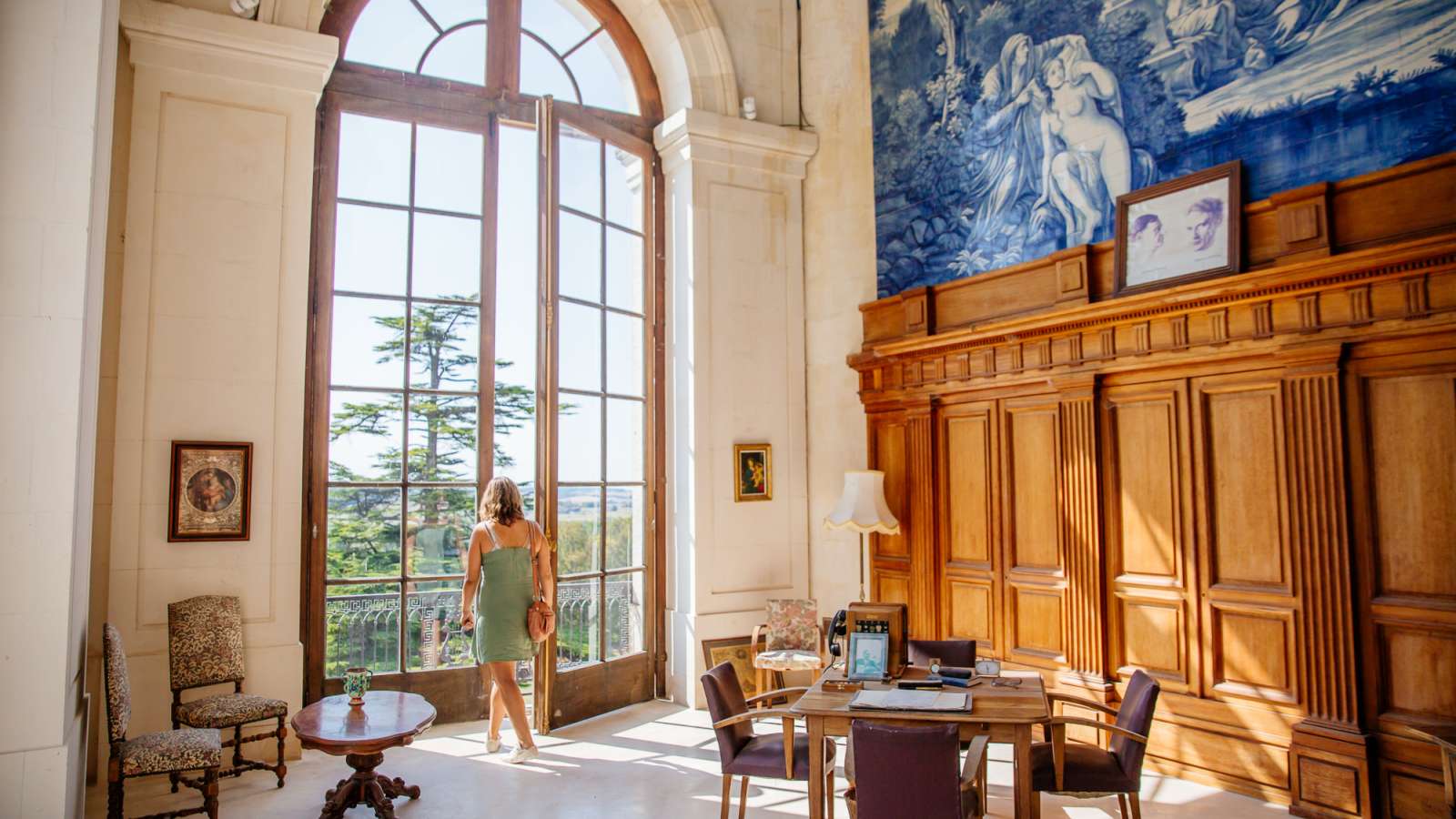 En vous approchant du château de la Mercerie, vous serez surpris par son impressionnante façade de 220 mètres de long. Appelé le “Petit Versailles des Charentes”, il est le fruit de l’imagination sans limite des frères, Alphonse et Raymond Réthoré. L’étonnement perdure tout au long de la visite grâce aux trésors qui se cachent à l’intérieur : la galerie d’Azulejos du Portugal, la galerie d’acajou, les chambres et salons ornés de multiples peintures en font partie. Traversez l’arboretum et la roseraie pour faire durer l’émerveillement. Son éblouissante façade en pierres blanches s'étend sur 220 mètres de longueur, au milieu d'un écrin de verdure de 50 Ha. Certains arbres rares et remarquables agrémentent la promenade à travers le parc. L'histoire extraordinaire de cette demeure grandiose commence en 1924, au cœur d'un petit manoir XIXème (à gauche de la façade actuelle) : le castel troubadour de La Mercerie est alors acquis par Alphonse et Raymond Réthoré. Dés lors, les deux frères, rêvant du grand Versailles, consacrent toutes leurs ressources à l'agrandissement et à l'embellissement de la bâtisse. Les travaux entrepris sont à la mesure de l'ambition qui les anime. A l’extérieur, colonnades et balustres en pierres blanches prolongent bientôt le bâtiment premier . la pierre de taille accroît le gigantisme et la rigueur d'une façade au rythme parfait. A l’intérieur, rien n'est trop beau pour La Mercerie, Raymond rapporte de ses voyages meubles et peintures, lustres et bois précieux, marbres d'Italie, azulejos du Portugal etc .. Il rentre d'Italie avec un peintre sculpteur qui réalisera sur place les décorations les plus monumentales avec l'aide des habitants du pays. Les trésors s'accumulent, mais 30 années de travail ne suffiront pas à l'achèvement du projet colossal. Les collections sont dispersées lors de ventes en enchères en Juin 1987. Au décès des deux frères, le château tombe dans l'oubli, jusqu'à la mobilisation des habitants de la commune, qui décident de fonder une association pour la sauvegarde de ce patrimoine unique et prestigieux. La chambre des Béruges, le salon central, le salon du Vernet, le vestibule, la galerie d'acajou et la grande galerie des Azulejos, autant de pièces plus impressionnantes les unes que les autres, conquièrent désormais pleinement le visiteur avide de découvertes culturelles. Un petit tour sur le belvédère du château vous permet de l'admirer en prenant de la hauteur.