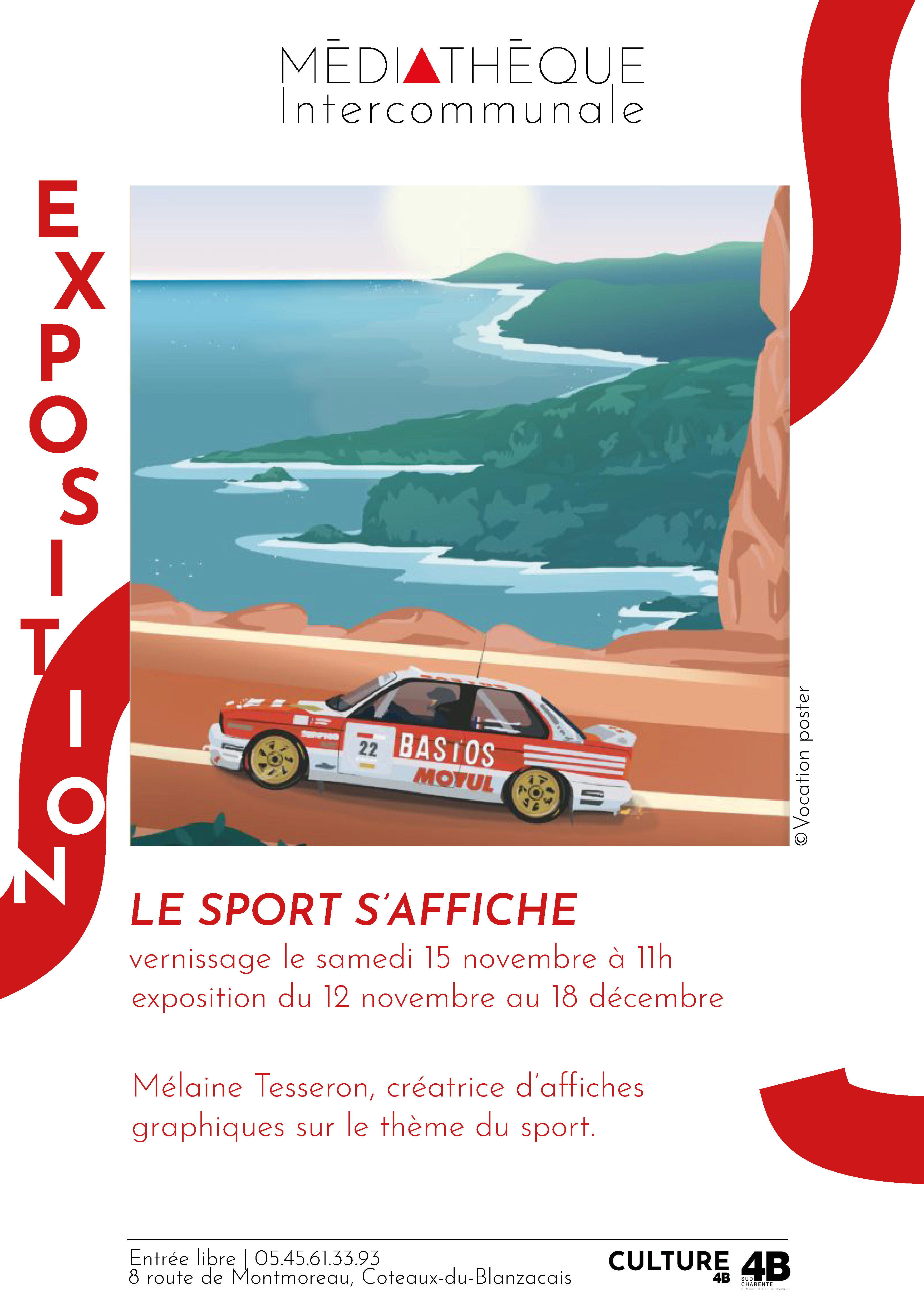 Exposition de Mélaine Tesseron, créatrice d'affiches graphiques sur le thème du sport. Tout public. Entrée libre aux heures d’ouverture