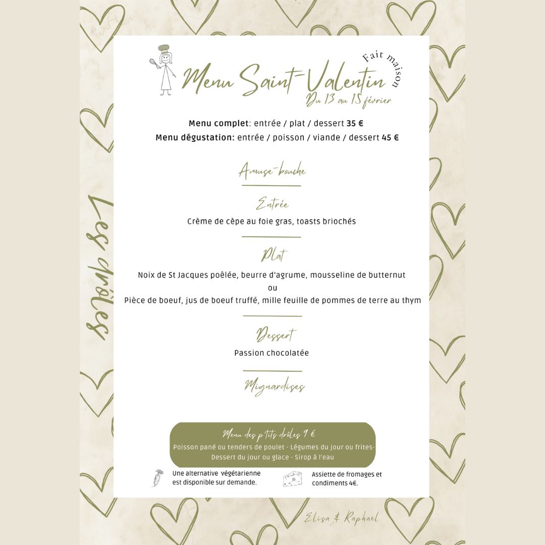 Menu de la Saint Valentin au restaurant "Les Drôles"
