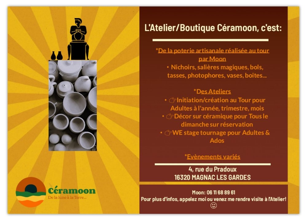 Week end, stage de tournage pour de l'initiation au tournage. Séances collective de max 4 personnes. Matériel fourni. Si tu préfères t’initier au Tour seul(e) ou avec un(e) ami (e), fille/fils, frère/sœur, père/mère, cousin(e), collègue, c’est possible aussi ! Il faudra alors réserver au minimum 4 sessions pour réussir à sortir ses premières pièces « abouties » … On choisit ensemble les créneaux et le rythme qui te, ou vous, conviennent le mieux…