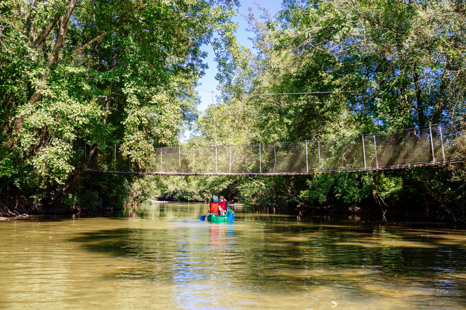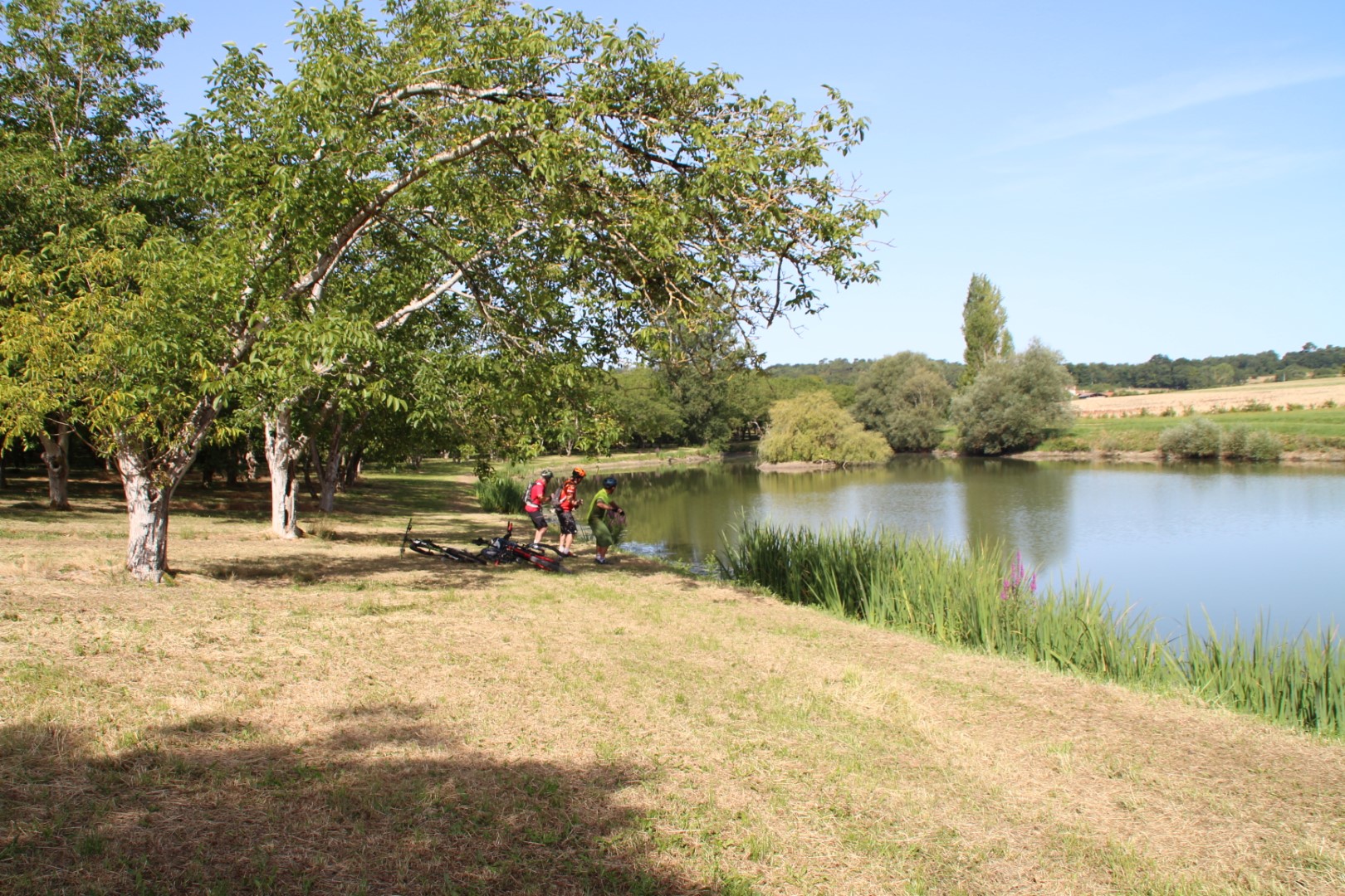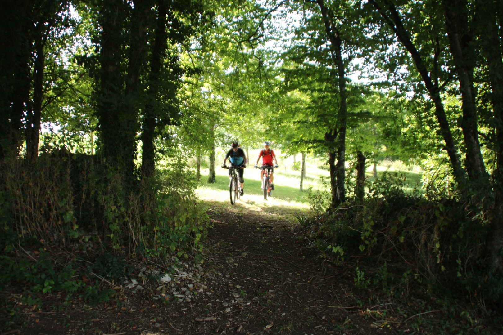 Par les chemins, nous faisons connaissance avec le Val de Dronne, et nous arrivons à la rivière au moulin de Poltrot où se trouve une guinguette et des passerelles permettant de passer sur la rive gauche en Dordogne.