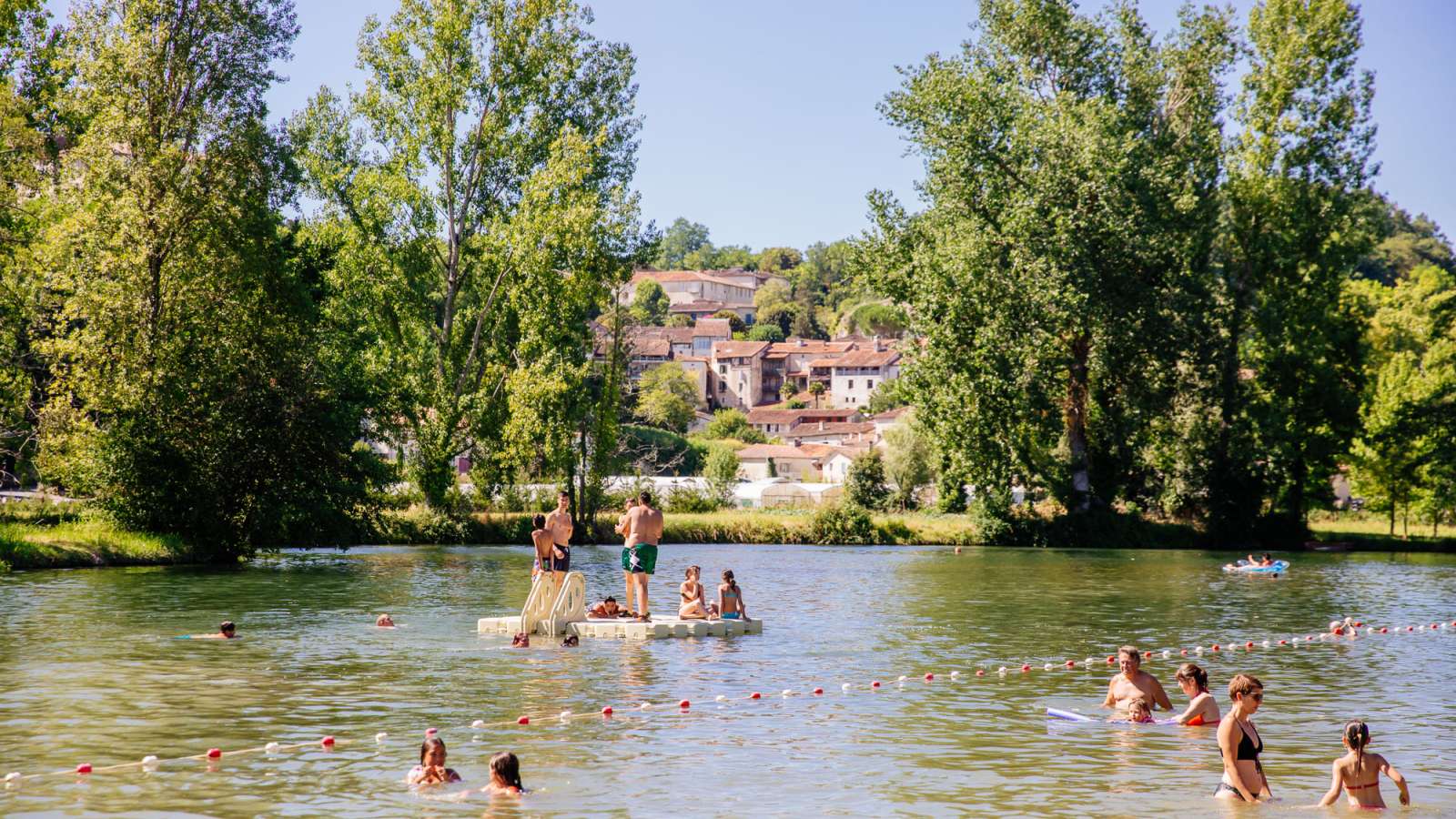 La base de loisirs, située au bord de la rivière Dronne, bénéficie d’une vue imprenable sur l’un des Plus Beaux Village de France, Aubeterre-sur-Dronne. Vous pourrez vous baigner dans la Dronne grâce avec sa plage aménagée et surveillée en saison. Une aire de jeux pour les enfants, un terrain de jeux en sable pour le volley-ball sont également mis à votre disposition gratuitement. Pour la pause déjeuner, vous pourrez profiter des tables de pique-nique sur la partie enherbée et ombragée. En saison, l’espace bar,snack, grill du camping vous accueille tout au long de la journée et vous propose des animations : karaoké, concerts etc… pour toujours plus de convivialité ! Juste à côté, louez un canoë, kayak, un pédalo ou même un stand up paddle pour une balade au fil de l’eau.