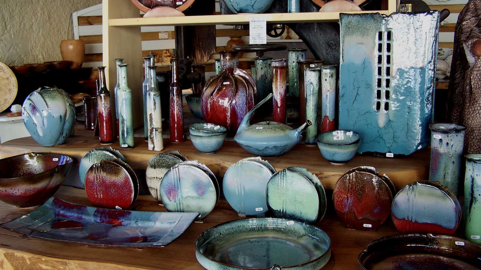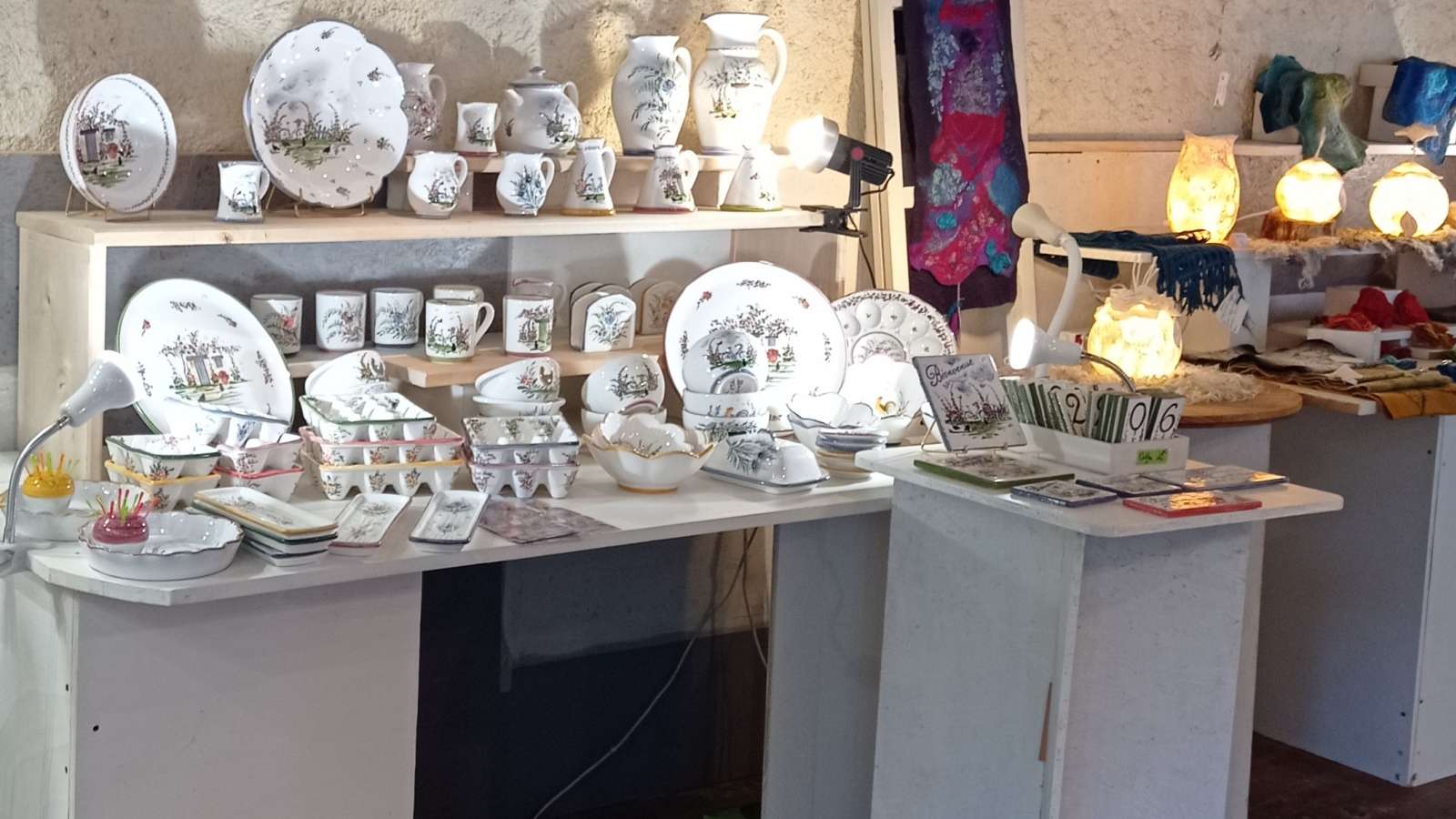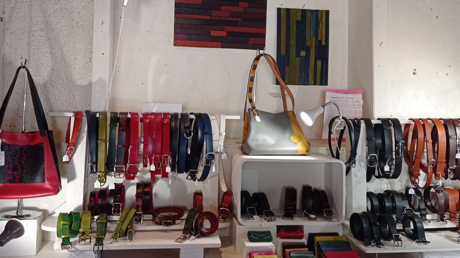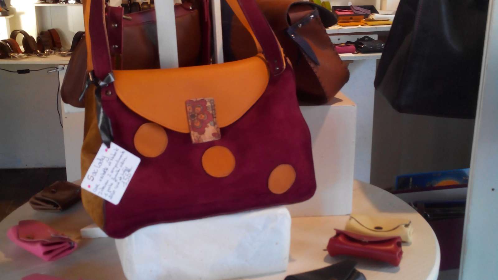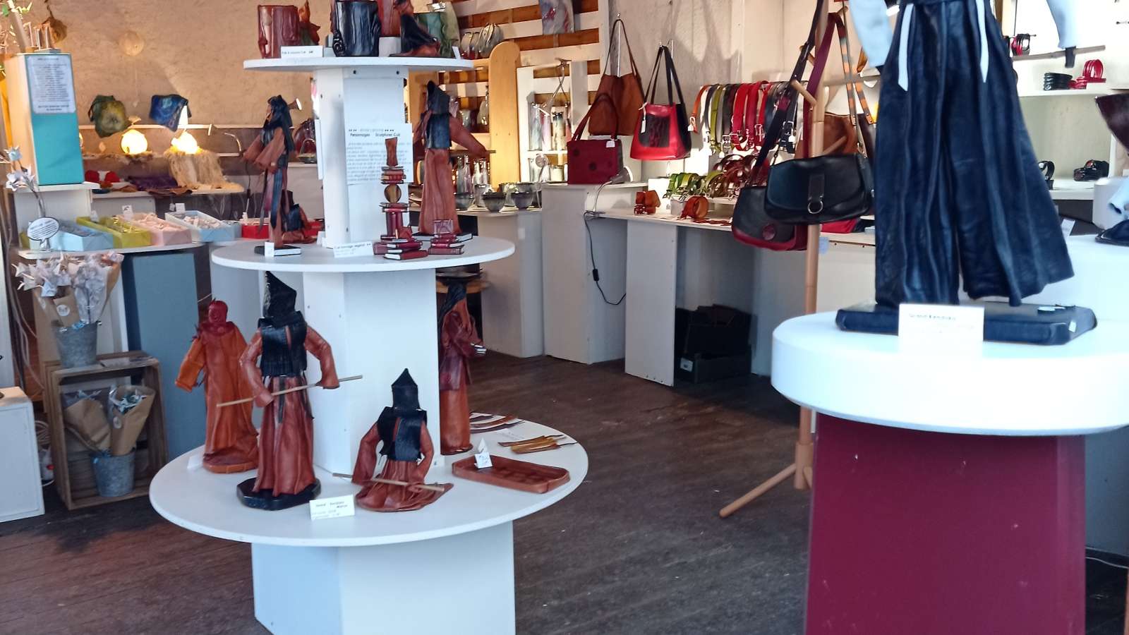 La boutique-atelier d'Annie Laroche est situé dans le magnifique village d'Aubeterre-sur-Dronne, juste à côté de impressionnante église souterraine. Annie travaille le cuir, avec de la ,maroquinerie et également des sculptures originales en cuir . Annie Laroche présente son travail sur cuir et accueille six artisans locaux, tous professionnels des métiers d'art : , céramiques contemporaines et animalières en grès, faïences traditionnelles, Origami sous forme de bijoux et de mobiles, objets d'art en verre soufflé. La boutique offre un large éventail d'objets de qualité, réalisés pièce par pièce, à la main de manière artisanale avec savoir-faire et amour du travail bien fait.