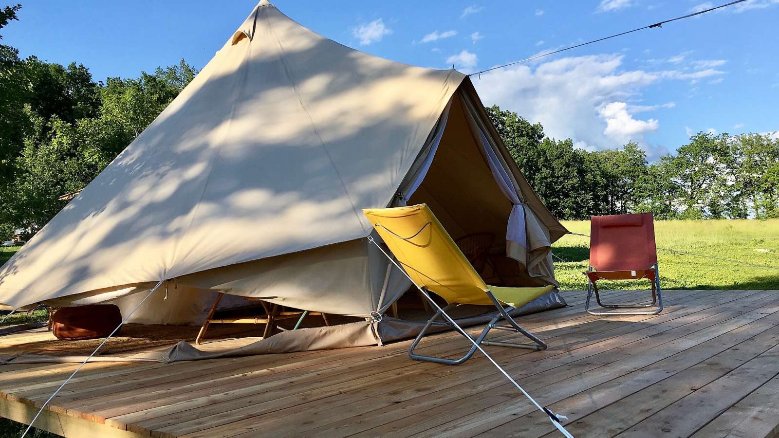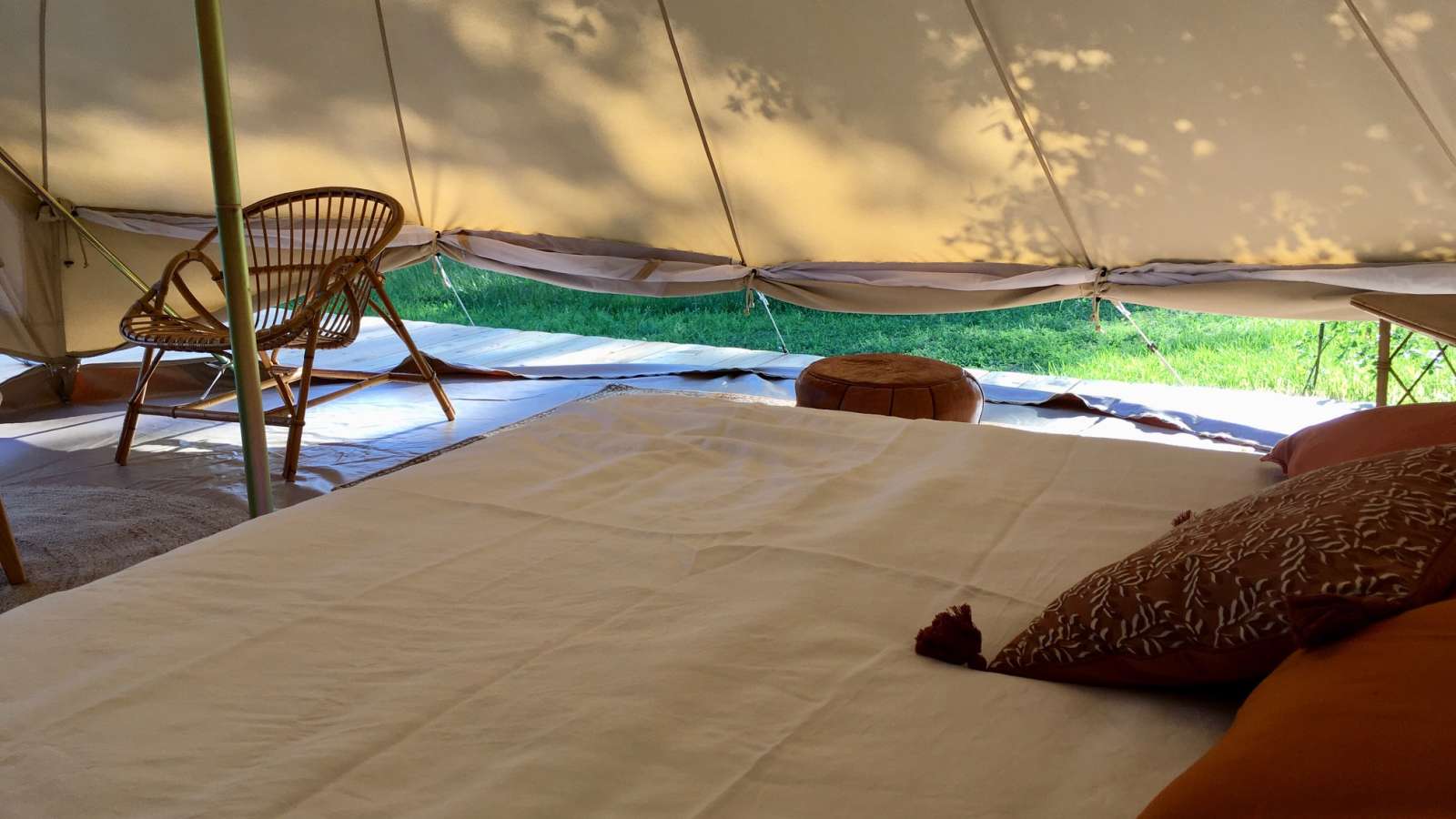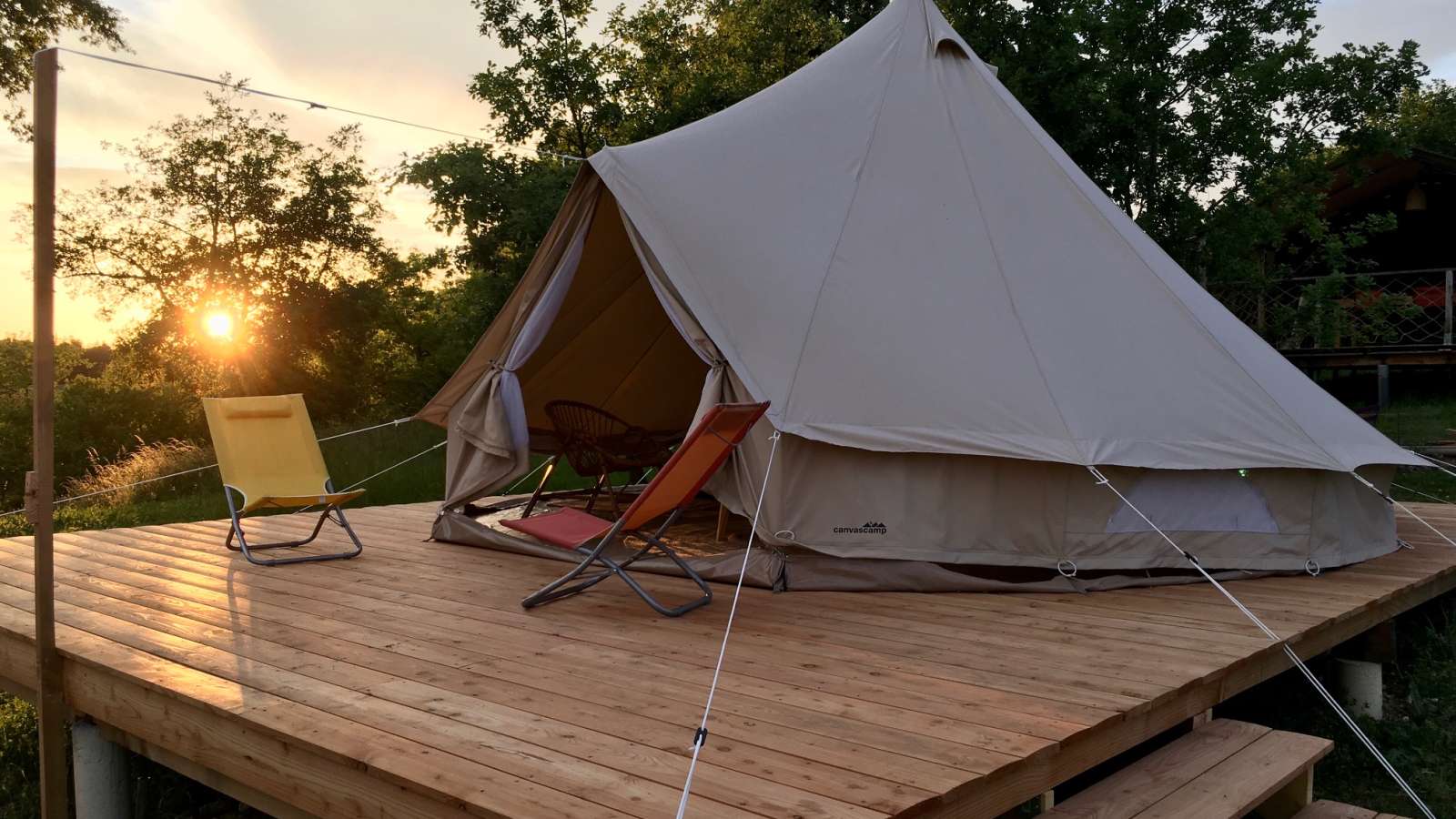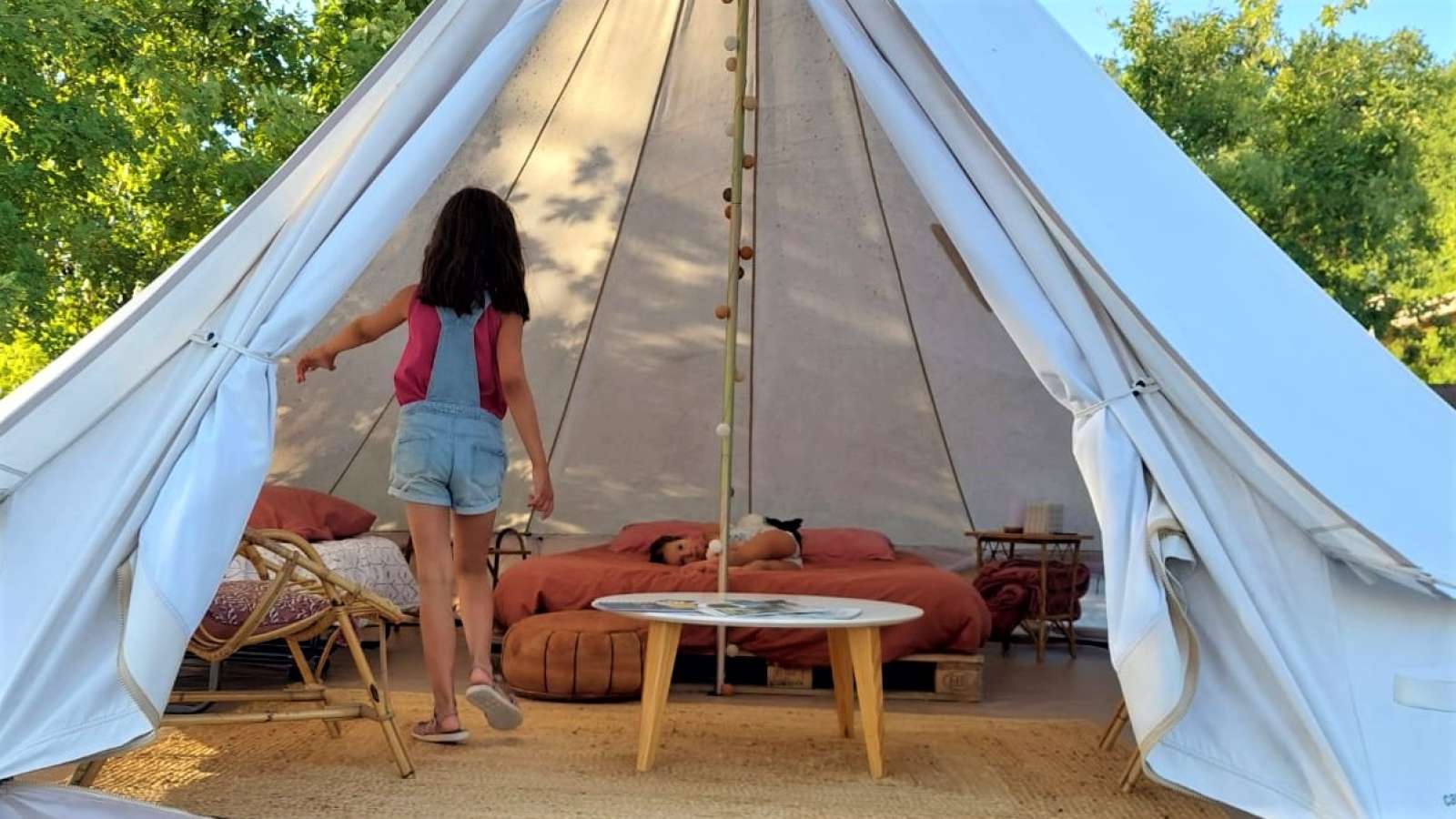 Vivez une nuit romantique dans notre Tente Nomade située au Sud de la Charente et aux portes du Périgord dans un cadre paisible et verdoyant, tout près d'Aubeterre sur Dronne, classé "Plus Beau Village de France" et sa célèbre église souterraine. Dans notre maison d'hôtes Casa Sana, l'esprit est sauvage et responsable, l'ambiance est conviviale, le cadre est paisible et verdoyant, c'est le lieu idéal pour se ressourcer… à deux, en famille ou entre amis. Profitez de notre table d’hôte locale et de saison et de tous les services qui participeront à votre confort et à votre bien être : parking, wi-fi, piscine, aire de jeux, ping-pong, vélos, animaux de ferme, épicerie locale… Laissez vous séduire par les multiples activités de loisirs que nous ne manquerons pas de vous conseiller : baignade, canoë, kayak, accrobranche, labyrinthe végétal, golf, mini-golf, tennis, équitation, marchés, châteaux... Située en pleine nature, notre tente de coton vous accueillera en toute intimité et saura vous séduire par son style bohême chic et son confort douillet. La terrasse sera idéale pour profiter des beautés et du calme de la campagne et admirer un coucher de soleil des plus agréable. Vous avez la possibilité de vous faire livrer vos petits-déjeuners et panier-repas directement dans votre tente. Toute la famille vous attend pour partager son art de vivre et ses douceurs locales.