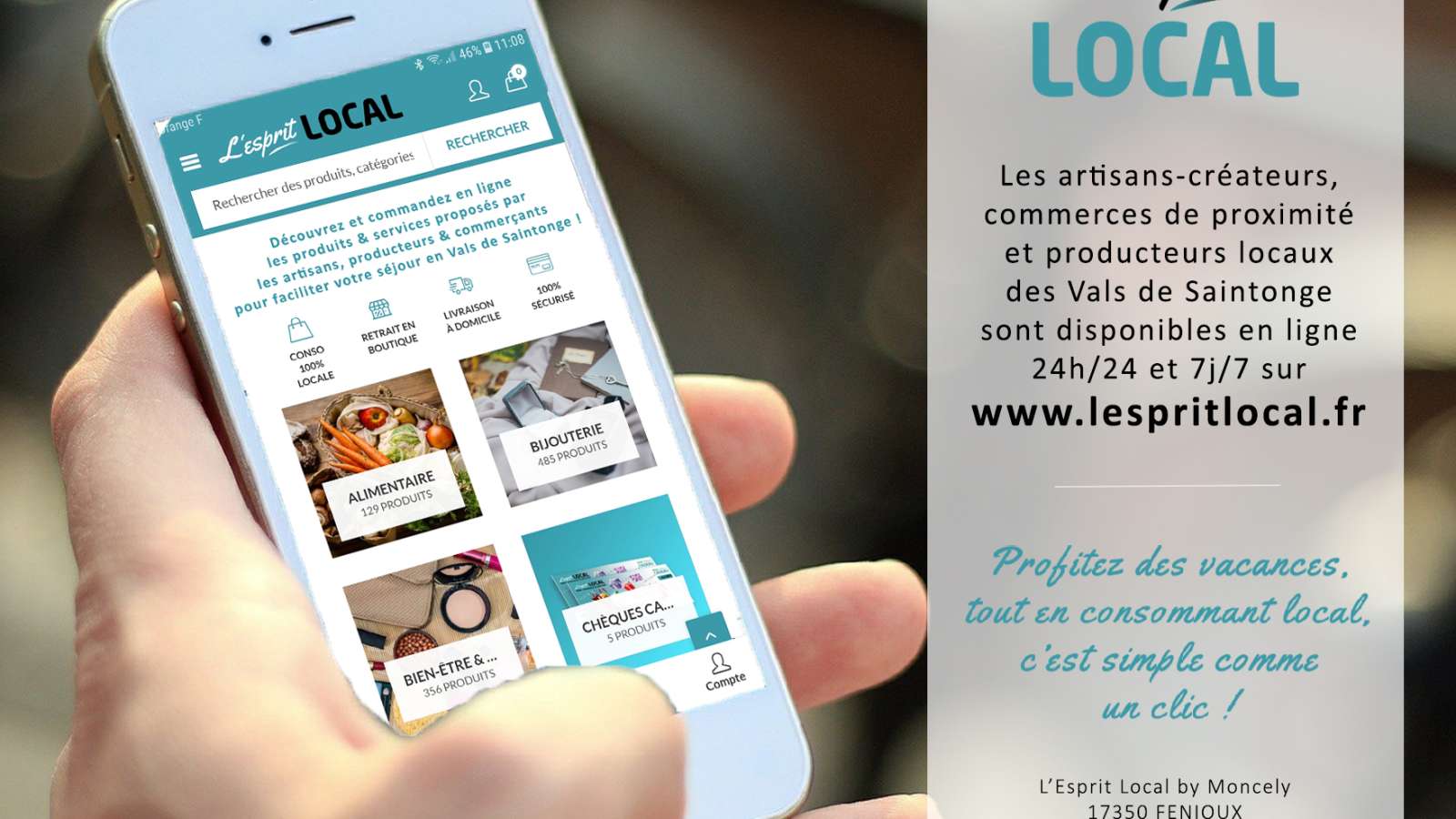 L’esprit Local est une plateforme numérique territoriale de vente en ligne qui regroupe l’offre des commerçants, producteurs et artisans localisés en Vals de Saintonge et plus largement en Charente-Maritime. Un large choix de produits gastronomiques, de fruits & légumes bio locaux, d’articles de modes, de santé & bien- être, d’objets de décoration et d’artisanat d’art, une offre de loisirs & de multimédia sont disponibles en click & collecte ou en livraison à votre domicile, votre résidence de vacances. L’esprit local, c’est l’occasion de découvrir et de soutenir en un seul clic tous les professionnels qui font la richesse du territoire des Vals de Saintonge et de Charente-Maritime. Consommer local n’a jamais été aussi simple et pratique !