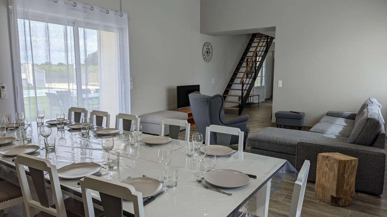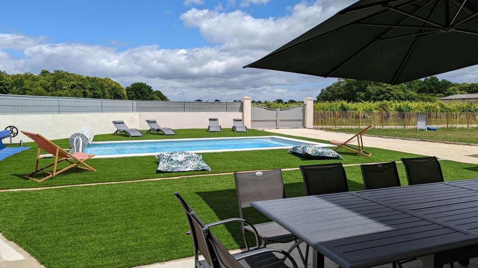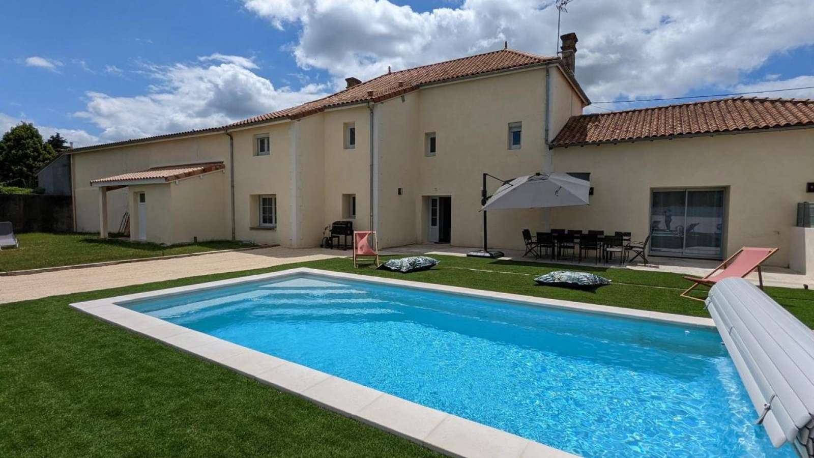 Au cœur d'un village calme du sud Charente, maison charentaise du 19ème siècle rénovée, avec piscine privative et vue sur les vignes. Idéal pour regroupements de familles. Gîte spacieux et lumineux, avec piscine privative, jardin clos et vue sur les vignes du vignoble du Cognac. Distillerie à proximité avec possibilité de visite sur demande. Maison indépendante. Rez-de-chaussée : cuisine ouverte sur le séjour avec salon et espace repas. Une buanderie, un WC, une chambre avec 2 lits 90, une chambre avec lit 160 accessible PMR et une salle d'eau avec WC accessibles PMR. (gîte access. partout sauf cuisine d'où pas label.T&H) A l'étage : une salle d'eau, un WC, deux chambres avec lit 160 dont une avec salle d'eau privative, deux chambres avec 2 lits 90. Draps, linge de toilette et linge de table fournis - Lits faits à l'arrivée. Équipement bébé : 1 lit bébé + chaise haute + baignoire. Accès Internet par fibre avec Box Orange Espace clos privatif de 600m² avec terrasse de 36m², piscine privative (7 x 3,5m) chauffée du 15/05 au 15/10 - Système de protection : volet roulant. Parking sur place. Forfait chauffage + électricité en hiver (100€ / semaine). Possibilité de ménage régulier pendant le séjour. Antilles de Jonzac à 25min, la voie verte à 5min et les étangs bleus à 10min. Départ de randonnées sur place.