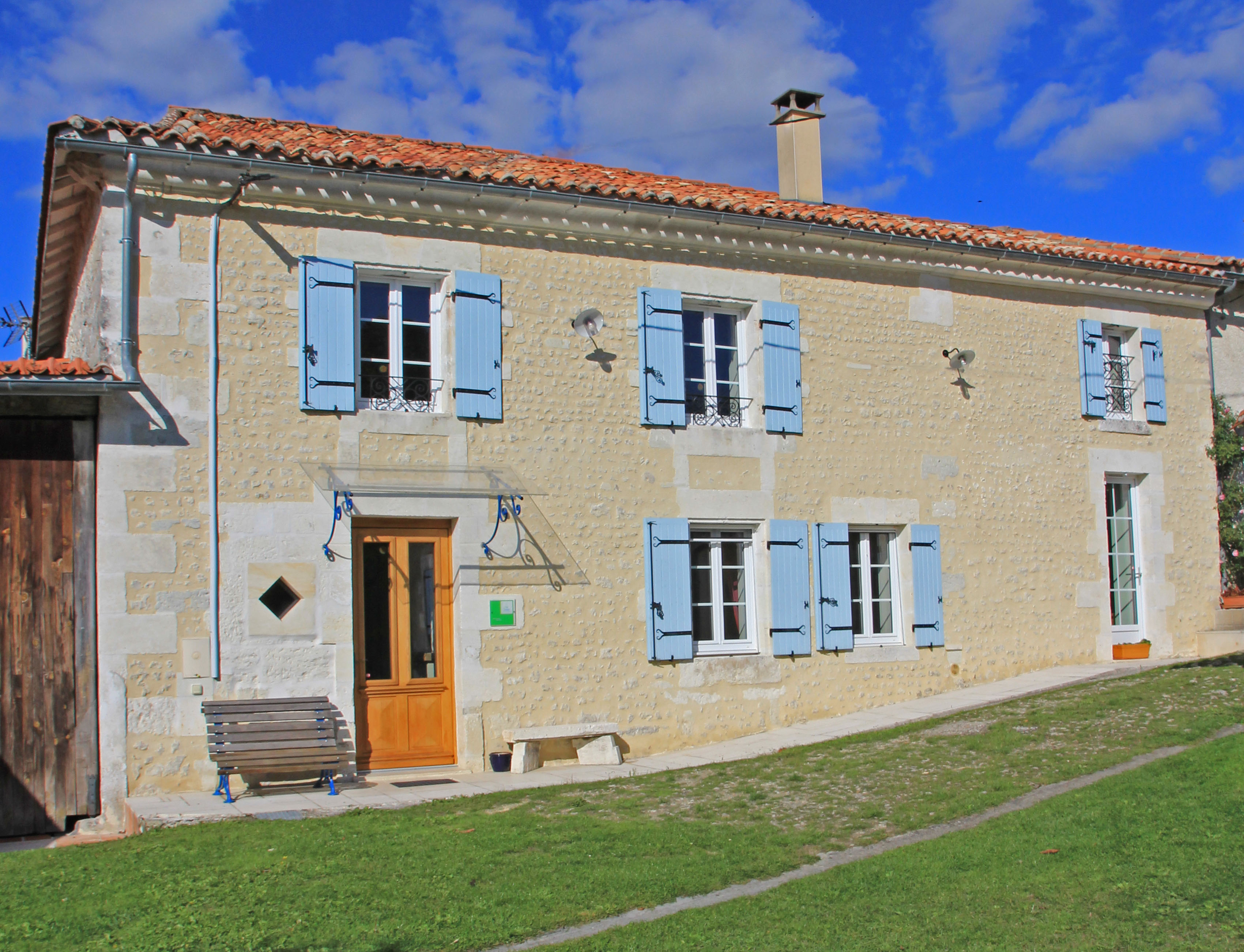 Ancienne longère charentaise en pierres apparentes, dans un hameau paisible, sans vis-à-vis et vue sur les coteaux vallonnés du Sud Charente. Ce très beau gîte a obtenu l'écolabel européen et vous assure des vacances au vert et écoresponsable. Rez-de-chaussée : cuisine, salle à manger avec cheminée (insert), salon, wc. À l'étage : 1 chambre avec lit 140 et salle d'eau privative avec wc, 1 chambre avec 1 lit 140, une chambre avec 1 lit 140 et 1 lit bébé, 1 chambre avec 2 lits 130, 1 salle d'eau avec wc. Bois fourni, draps fournis, lits faits à l'arrivée, linge de cuisine fourni. Jardin 700m² avec tobogan et bac à sable, terrain 2000m², 3 vélos. . Ecolabel européen. Arrivée à partir de 17h, départ à partir de 10h.