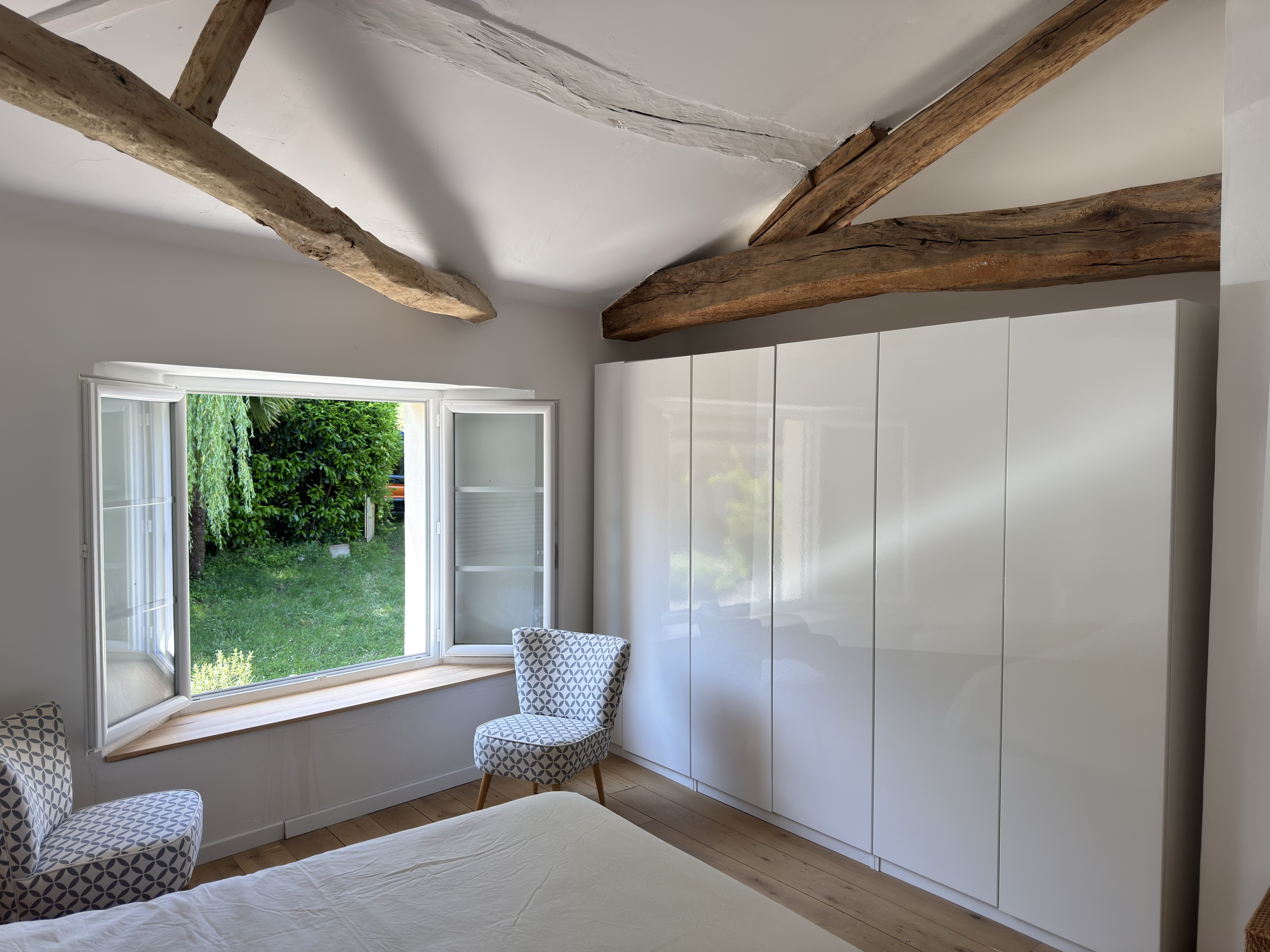 Charme Authentique & Confort • Air Conditionné • Famille • Maison entière • Petite terrasse et jardin Petit havre de paix à Touvérac, Charente-Sud, à 1h de Bordeaux. Maison rénovée avec poutres apparentes, parquet et lumière naturelle, climatisation. Equipement: - 2 chambres (2x2) - séjour lumineux - cuisine équipée - espace de travail avec WiFi - salle de jeux enfants (5–10) - entrée privée - parking - petit jardin - terrasse pour le café - Pas de télé Idéal pour livres, conversations, vin et soirées tranquilles.