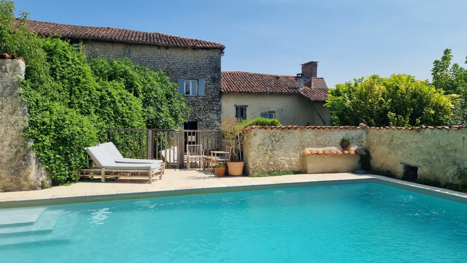 Bienvenue aux Chauvins... l'endroit idéal pour une escapade calme et relaxante en famille ou entre amis à la frontière de la Charente et de la Dordogne. Gite la Chaumière pour 4 personne. Il existe un second gite "La Maison d'Amis" pour 6 personnes. Possibilité de louer l'ensemble. Perché sur des collines ondulantes et niché au bout d'un paisible chemin de campagne à la frontière de la Charente et de la Dordogne, Les Chauvins offre l'antidote idéal aux tracas de la vie quotidienne. La Chaumière est l'un des deux charmants gîtes ruraux du XVIIe siècle situés aux Chauvins. Elle dispose d'une superbe grande piscine (partagée avec La Maison d'Amis, le second gîte, plus grand) qui est nichée dans les ruines ouvertes d'une ancienne grange, au milieu d'un parc paysager de plus d'un hectare. La Chaumière est une maison indépendante et dispose de ses propres espaces extérieurs, alliant charme, tranquillité et confort contemporain. L'accès à l'Internet haut débit est possible et, en plus de la piscine commune, une salle de jeux bien équipée avec table de ping-pong, billard, fusil, fléchettes et équipement de gymnastique. À l'extérieur, les enfants disposent de beaucoup d'espace pour jouer et d'équipements de plein air adaptés à tous les âges.