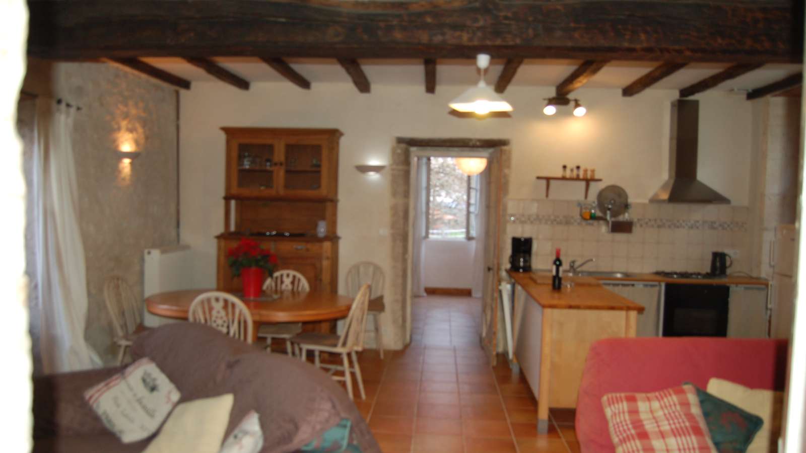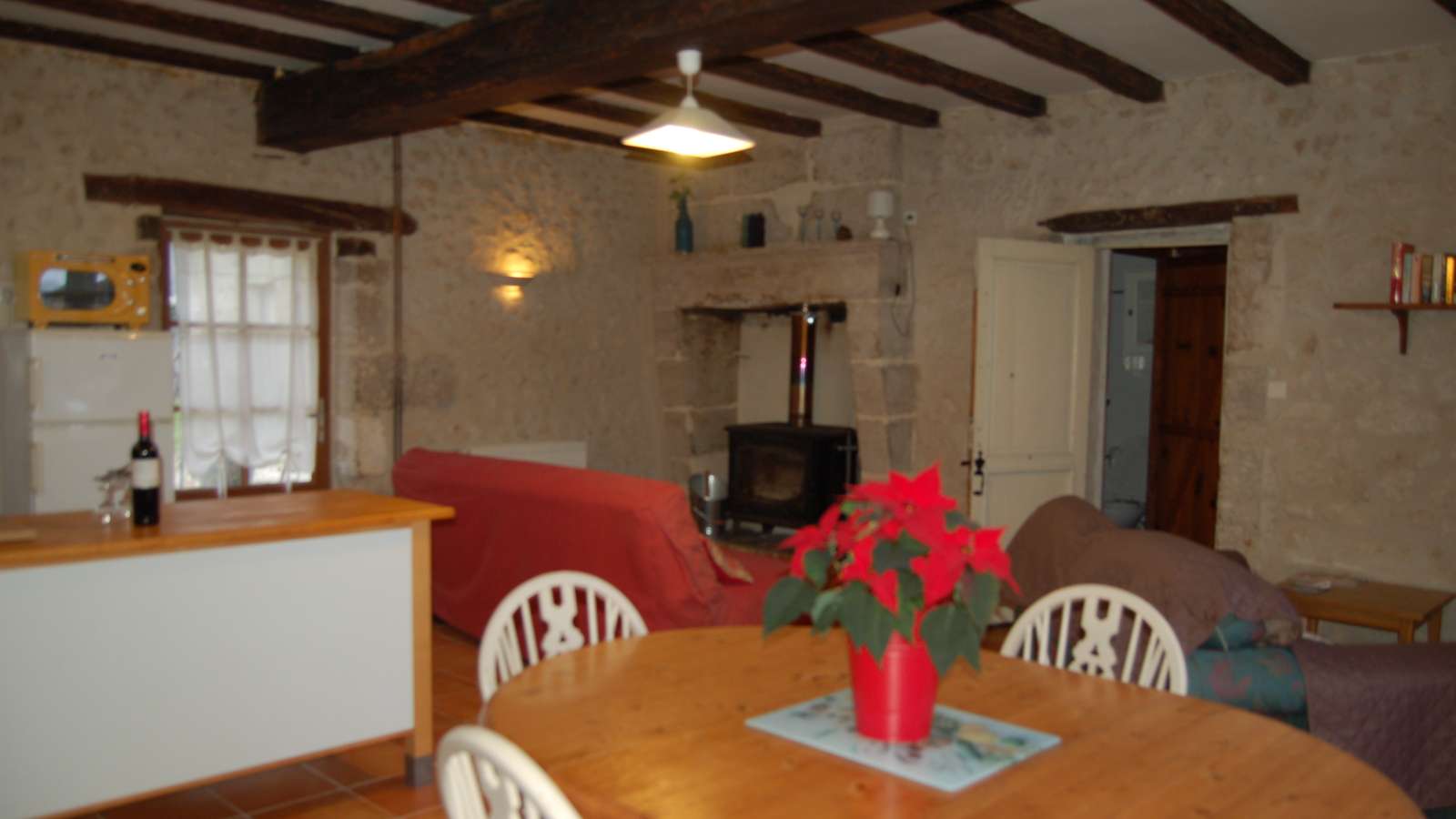 Jolie fermette indépendante dans un ensemble de bâtiments XIXe -120m² situé à 1km d'Aubeterre-sur-Dronne, village classé parmi les "Plus Beaux Villages de France". Dans un environnement verdoyant et calme, la maison est en poutres et pierres apparentes. Location pour 4 personnes, plus bb ou jeune enfant.