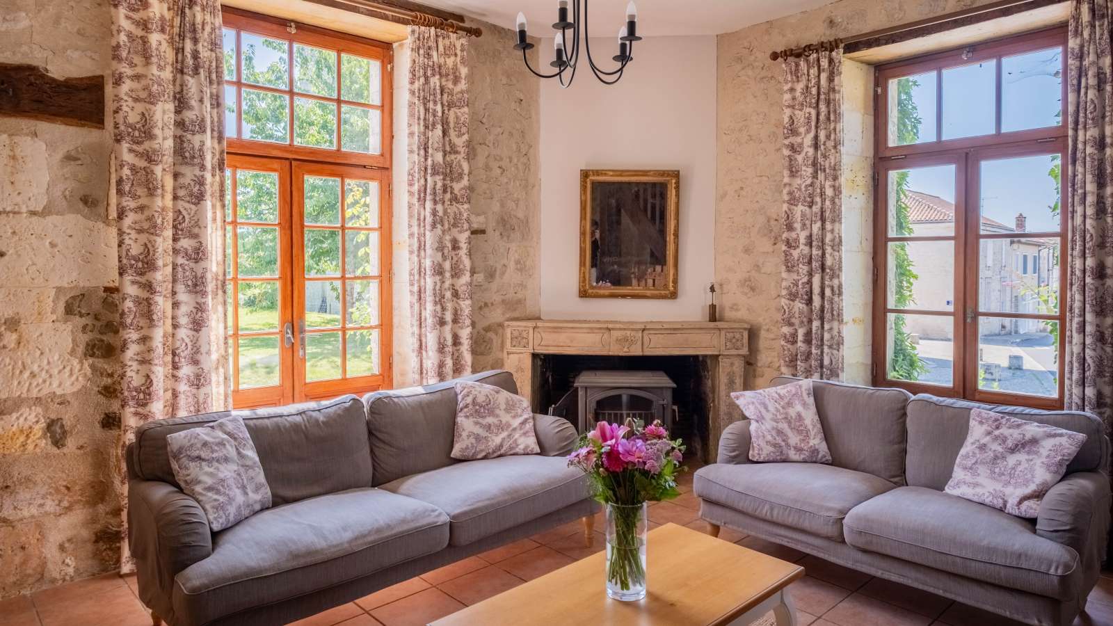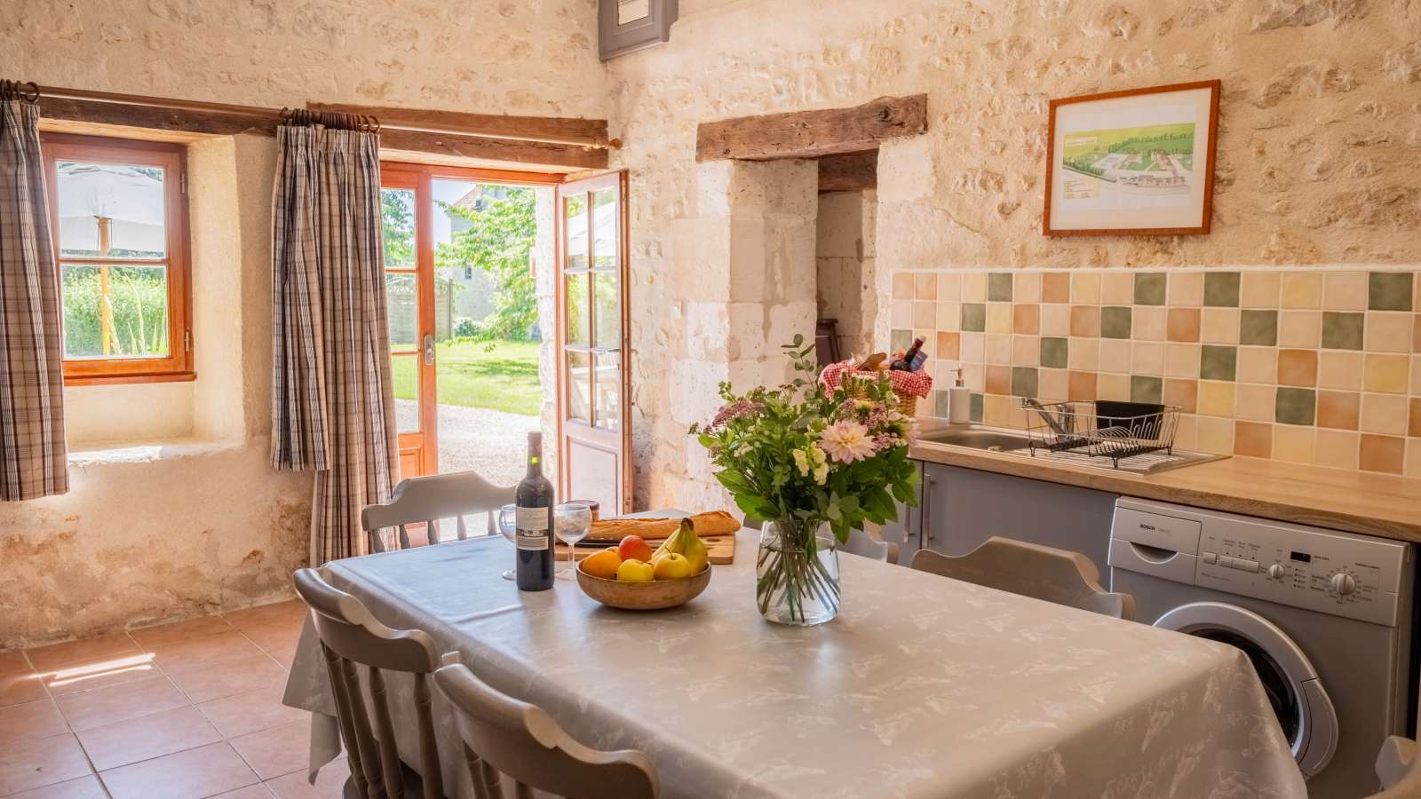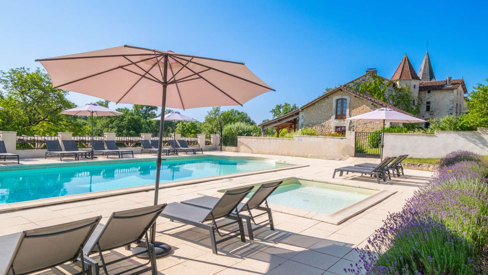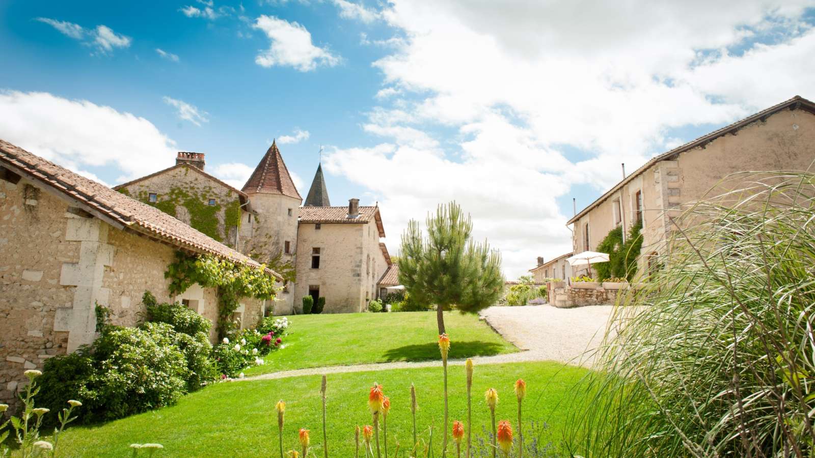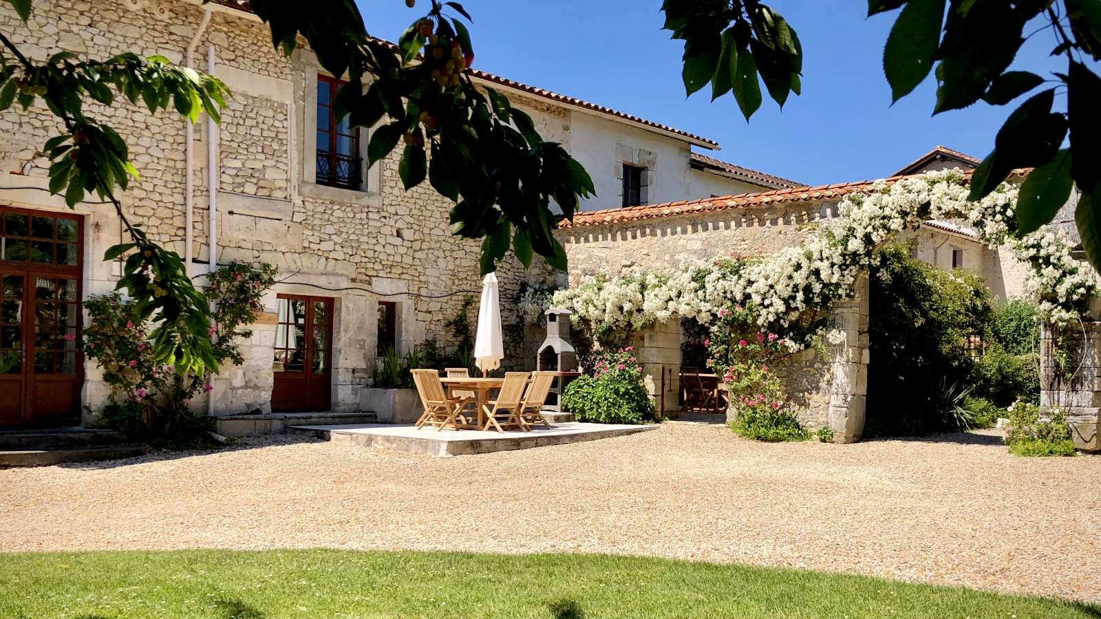 Le Coin Fleuri: The Secluded Family Gîte - Aux portes du Périgord, nichée entre le charmant et paisible village de Gurat et 14 hectares de bois et prairies, le Château de Gurat propose 6 gîtes avec piscine et bassin séparé pour les petits. Il y amples possibilités pour amuser les enfants de tout âge avec un bac à sable géant, trampoline, balançoires, et dans la grange rénovée toutes sortes de jouets, jeux et livres, DVD, un baby foot et table de ping-pong. Il y aussi la rencontre avec les animaux (cochons d’Inde, moutons, chèvres, poules), les promenades dans la campagne et la visite de la Charente et de la Dordogne. Il est ainsi nommé parce qu'il est situé dans un coin retiré de la cour du château, et que ses murs exposés au sud-ouest sont couverts de rosiers grimpants parfumés. Surface habitable de 92 m2 au total.