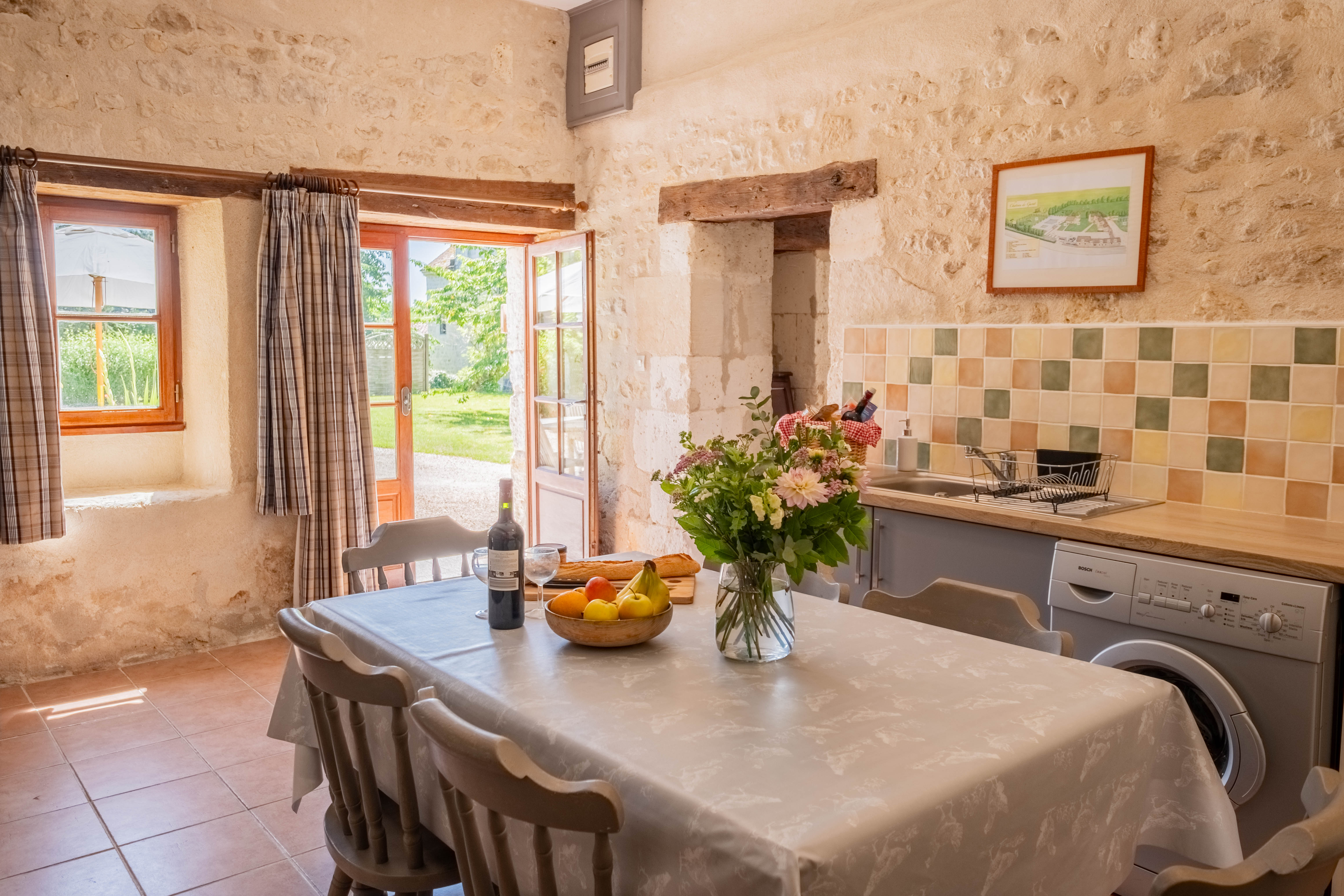 Le Coin Fleuri: The Secluded Family Gîte - Aux portes du Périgord, nichée entre le charmant et paisible village de Gurat et 14 hectares de bois et prairies, le Château de Gurat propose 6 gîtes avec piscine et bassin séparé pour les petits. Il y amples possibilités pour amuser les enfants de tout âge avec un bac à sable géant, trampoline, balançoires, et dans la grange rénovée toutes sortes de jouets, jeux et livres, DVD, un baby foot et table de ping-pong. Il y aussi la rencontre avec les animaux (cochons d’Inde, moutons, chèvres, poules), les promenades dans la campagne et la visite de la Charente et de la Dordogne. Il est ainsi nommé parce qu'il est situé dans un coin retiré de la cour du château, et que ses murs exposés au sud-ouest sont couverts de rosiers grimpants parfumés. Surface habitable de 92 m2 au total.