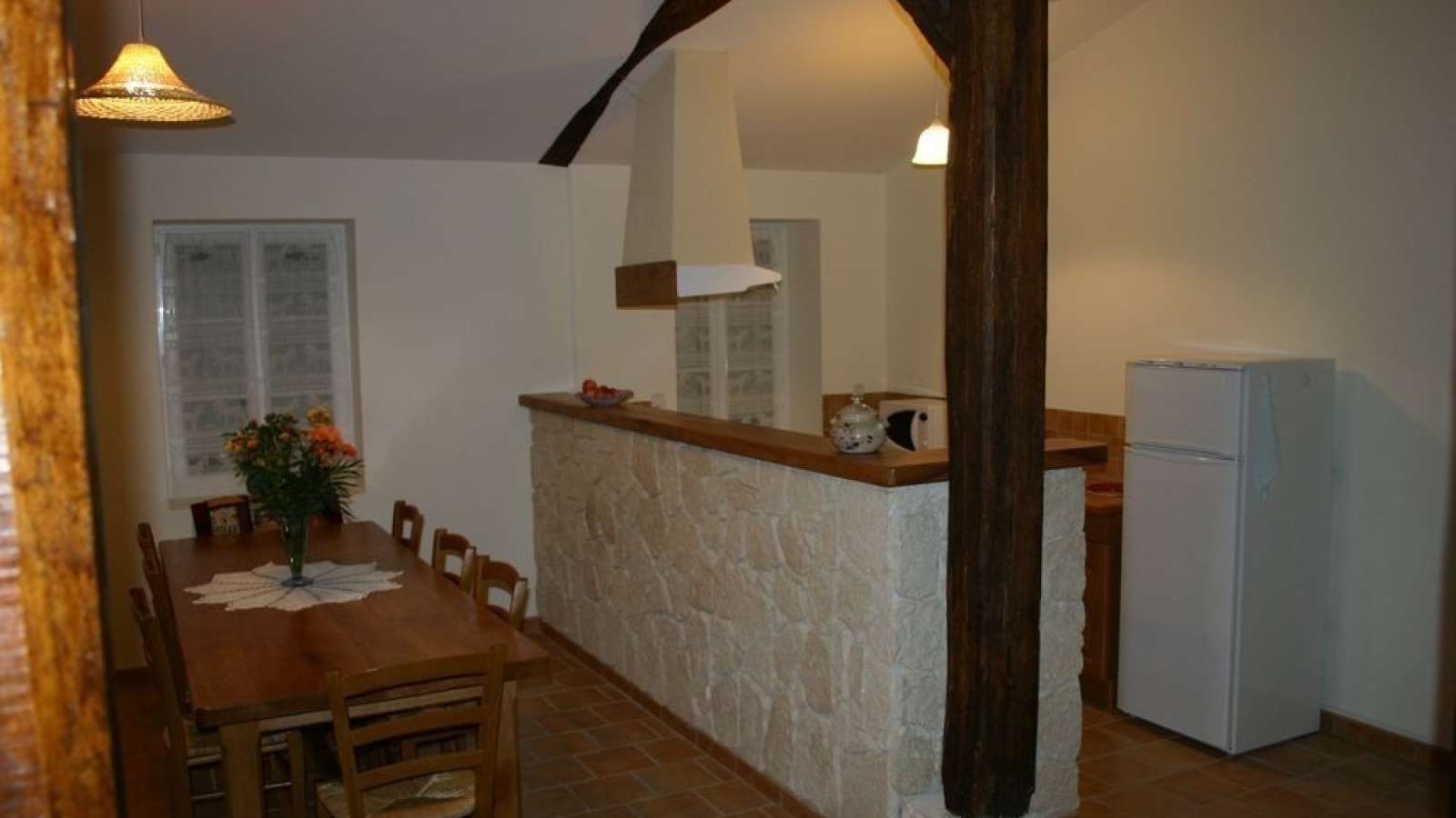 Gîte attenant à un autre gîte sur une exploitation agricole. Trois chambres chacune avec 1 lit 140, une chambre avec 2 lits 90, 2 salles d'eau (dont 1 avec wc),