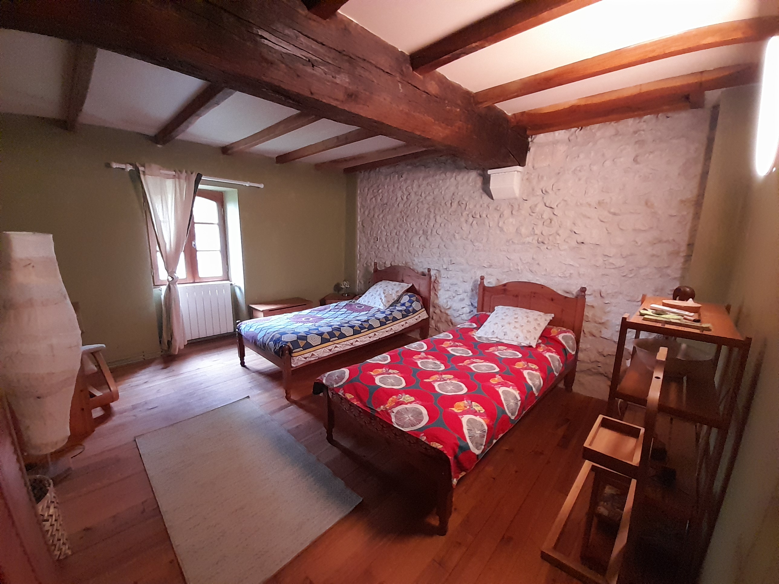 Trois chambres dans une demeure charentaise, dont une indépendante. Un domaine vaste avec prairie pour les chevaux permettant de planter la tente ou parquer son camion et van. Maison restaurée dans la tradition et le respect de l'environnement. Nous vous accueillons sur notre site dans une approche simple, conviviale et respectueuse. Pour profiter de notre coin, écrin de nature, dans un esprit d ouverture. Circuits de rando. depuis la maison avec des boucles de 5 à 30km. Rivière qui reste parmi les moins polluées avec point de baignade à 6km de la maison. Possibilité de se faire la cuisine sur place et de profiter de la salle à manger ouverte extérieur, mais en bâti et abritée. Accueil chevaux possible en paddock ou boxe sous la responsabilité du propriétaire.