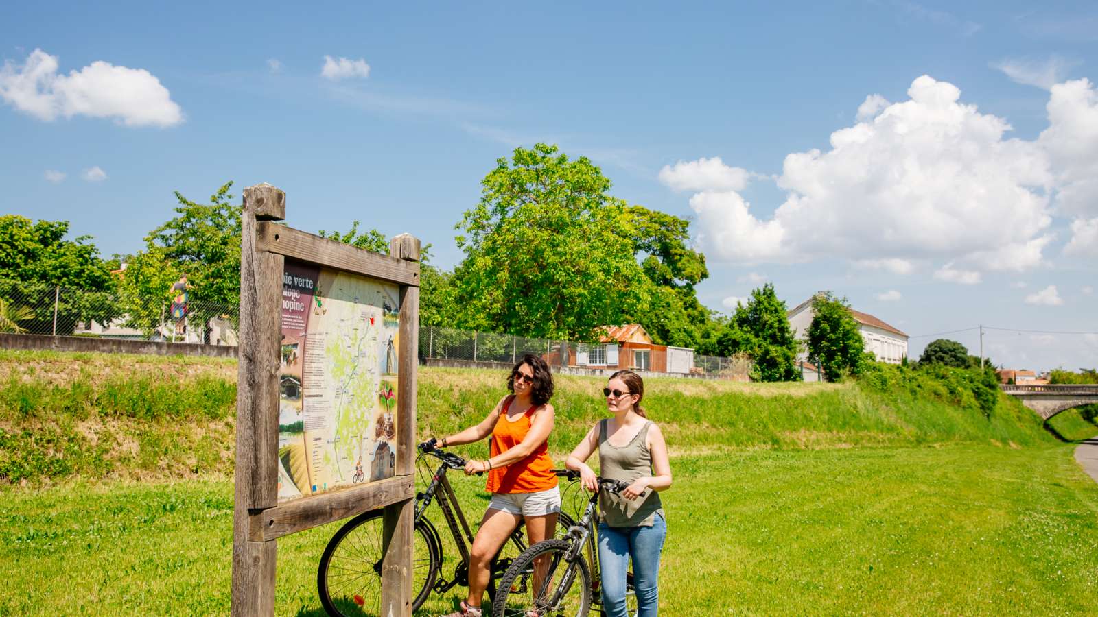 Depuis Barbezieux, stationnez-vous sur le parking de la médiathèque pour accéder au départ de la Voie Verte.