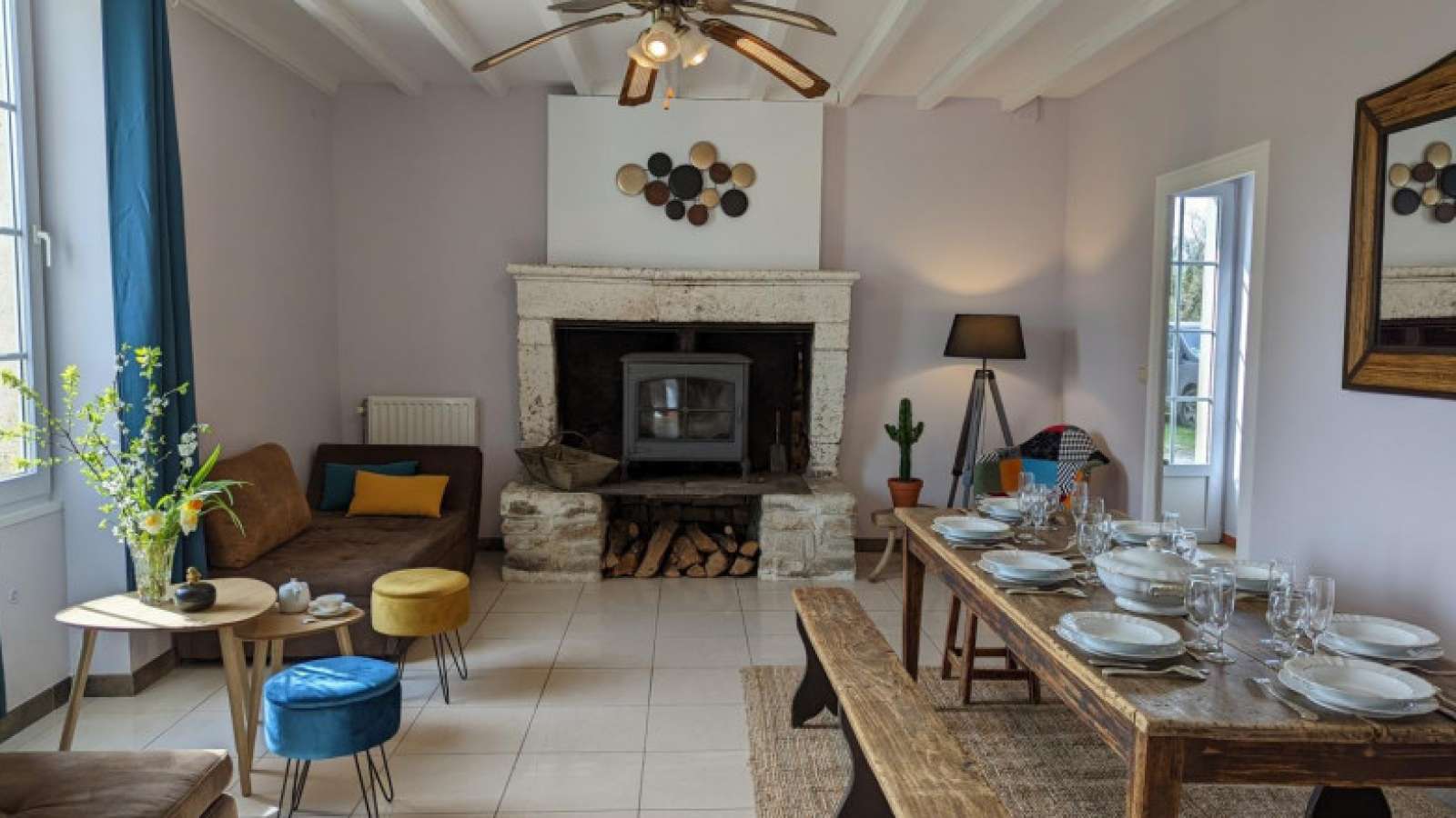Ancienne longère rénovée, lumineuse et bien équipée. Le gîte est mitoyen à un autre gîte et bénéficie d'une piscine commune couverte et chauffée. Au cœur d'un domaine charentais de 35 hectares, vous profiterez des vergers de pruniers, de châtaigniers, d'étangs et de bois pour vous ressourcer. Rez-de-chaussée : séjour avec poêle à bois (1ère flambée offerte), cuisine, sde, wc. A l'étage : trois chambres (6 lits 80x200 jumelables et 1 lit 160x200), salle d'eau avec wc. Sur la propriété, à partager avec d'autres gîtes et les propriétaires : cour, jardin, vergers, bois, étangs où l'on peut pratiquer la pêche. Ping-pong, piscine couverte et chauffée (non surveillée) ouverte du 01/06 au 15/10, WIFI avec répétiteur, accueil cheval et découverte sur place d'animaux (brebis, poules). Ce gite de 8 personnes peut être louer avec d'autres gites pour vos rassemblements familiaux.