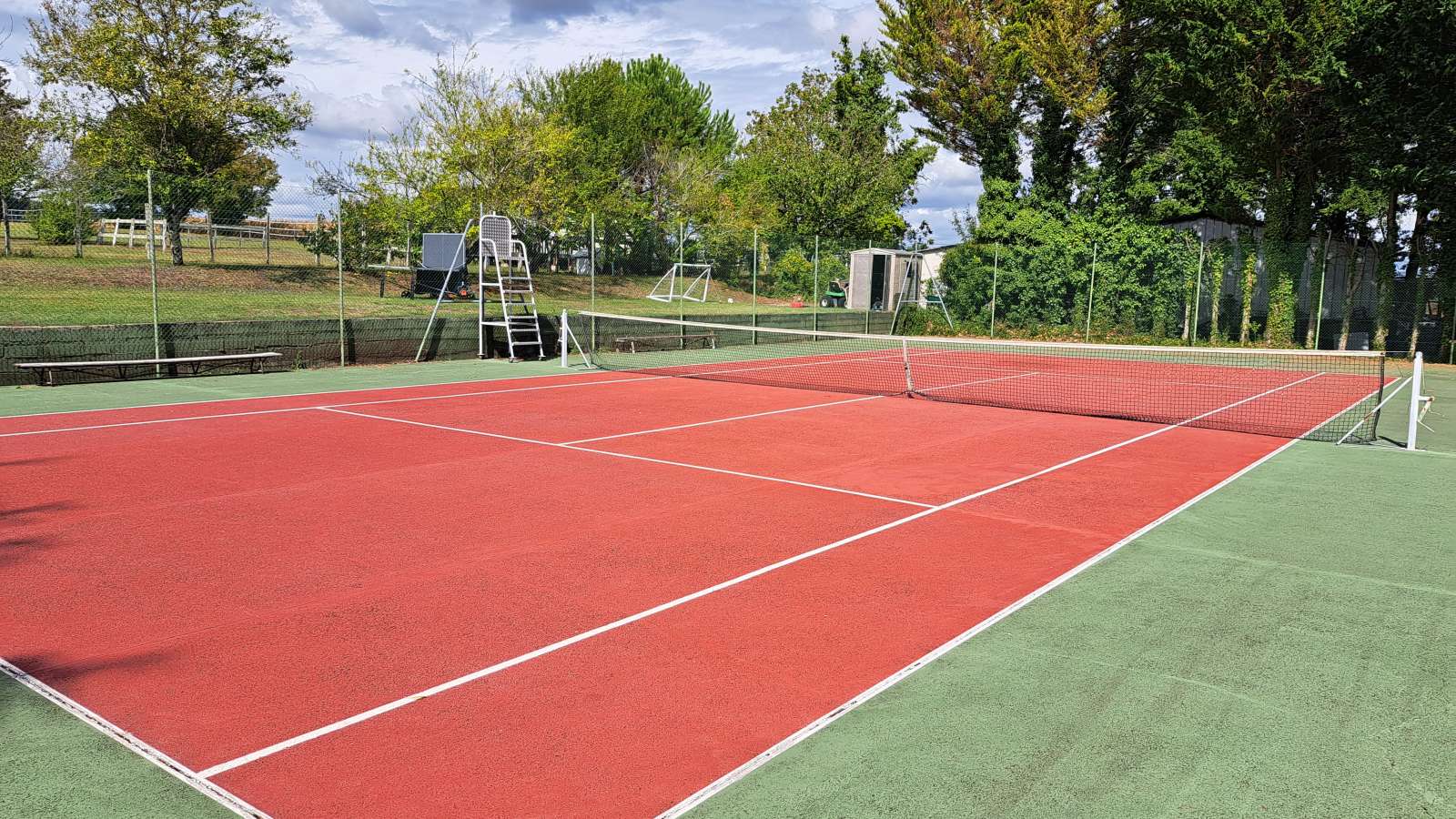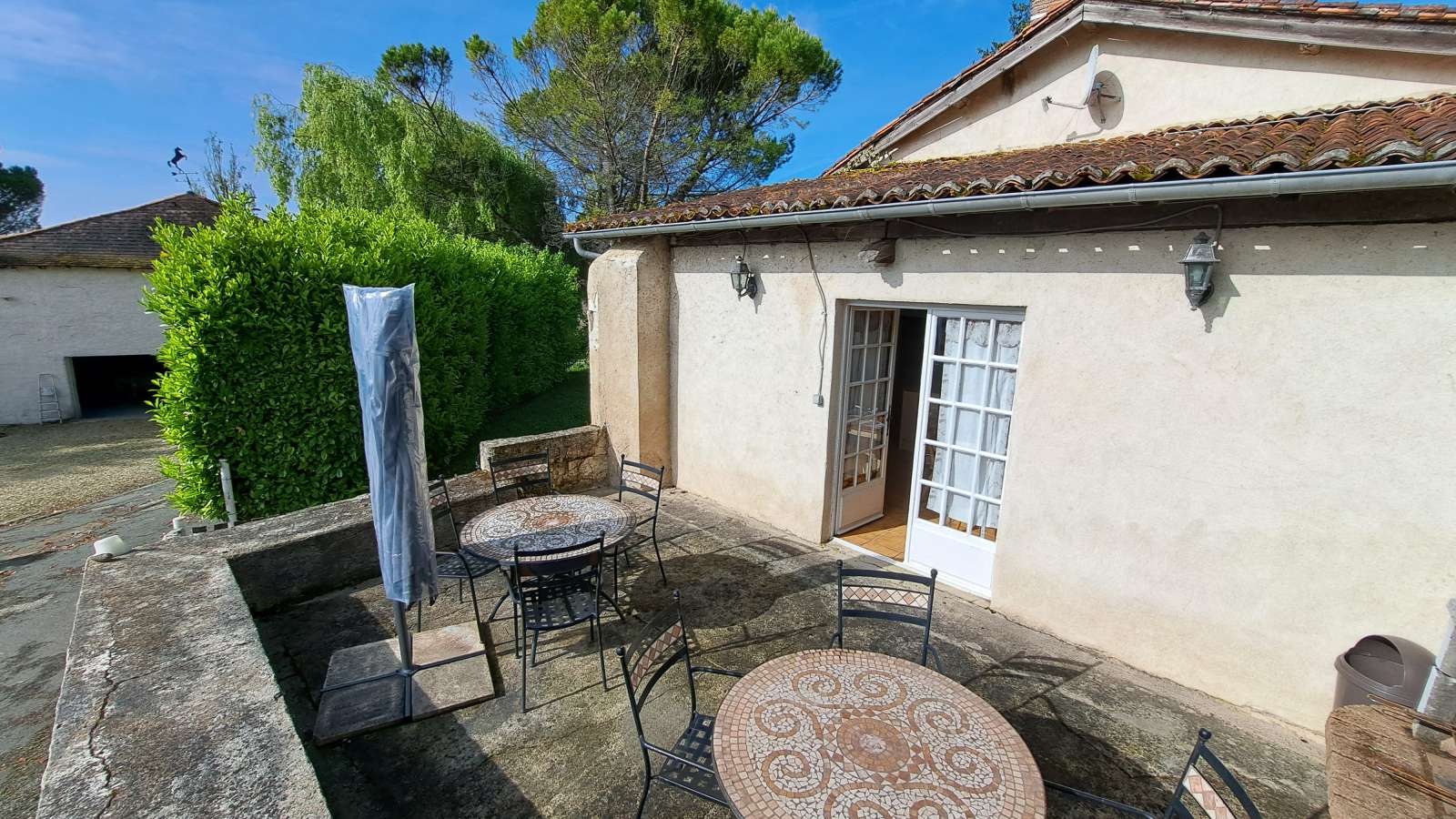 La maison "les orangers" accueille 5 personnes et dispose de 3 chambres une grande cuisine une salle à manger une piscine partagée avec Turquoise. 2 grandes terrasses vous permettent de manger à l'ombre ou au soleil selon la météo. La Ferrière se situe dans la belle campagne Charentaise entre le village d'Aubeterre-sur-Dronne et celui de Saint-Séverin, non loin de Ribérac du côté de la Dordogne. Vous y trouverez un cours de tennis, un espace jeux (Billard, Baby Foot) et un espace extérieur (foot, ping pong, balançoires, trampoline,cabane) et une salle de sport La maison "les Orangers" d'environ 75 m2 dispose d'un jardin, d'un four à pizza extérieur et d'une piscine partagée avec la maison "Turquoise". L'intérieur se compose d'une cuisine, d'un salon avec poêle à bois. A l'étage vous trouverez 3 chambres et une salle de bain avec douche.