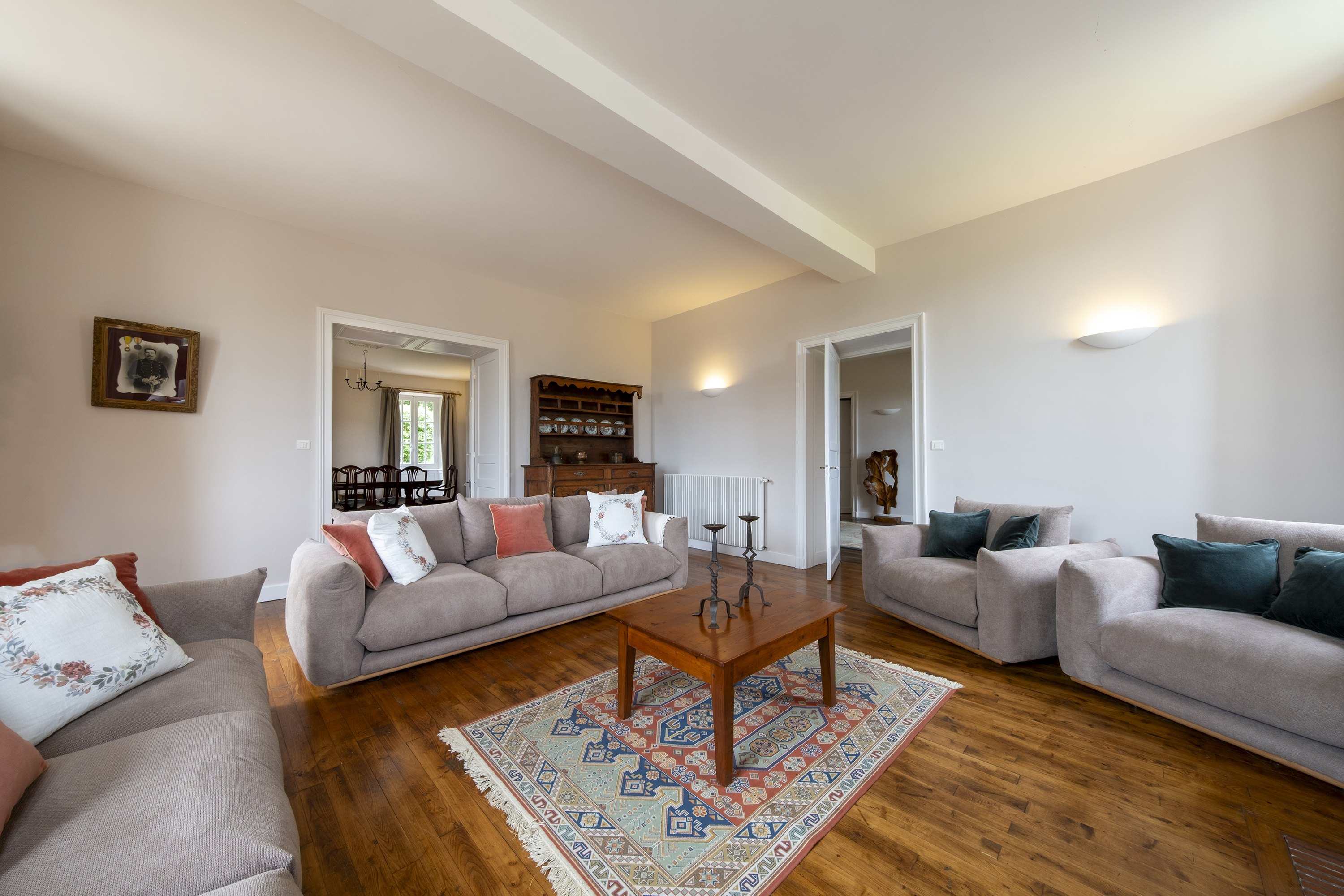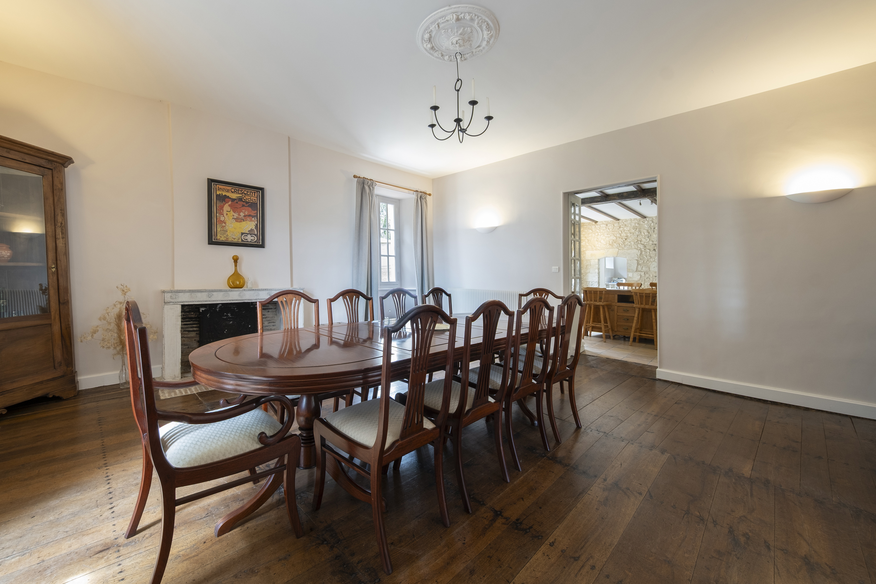Une magnifique maison de maître spacieuse avec 5 chambres et 5 salles de bains. Au rez-de-chaussée, un somptueux salon et une salle à manger avec une immense cuisine, une buanderie et un cellier. À l'extérieur, un grand jardin clos et 2 piscines chauffée Idéal pour les mariages, les célébrations telles que les anniversaires, Noël et le Nouvel An, ou simplement pour passer des vacances luxueuses entre amis ou en famille. Évadez-vous dans la campagne française et séjournez au manoir Langlade, imprégné d'histoire et de traditions locales. En 2024, les 5 chambres ont été rénovées et réaménagées selon des normes très élevées. 5 salles de bains spacieuses et luxueuses ont été créées, dont une avec baignoire. Le salon est doté de somptueux canapés et fauteuils qui invitent à la détente totale, tandis que la salle à manger chic est parfaite pour les repas raffinés. Le véritable cœur du Manoir est la grande cuisine, si spacieuse que l'on s'y perdrait presque. Imaginez toutes les histoires que cette grande cuisine pourrait raconter. Le domaine Langlade comprend 4 maisons, dont le Manoir. Il se dresse fièrement au milieu du domaine avec son fantastique jardin clos et ses 2 piscines chauffées de 10 x 5 mètres clôturées, ce qui signifie que vous partagez la piscine avec les autres clients. Il arrivera parfois que vous ayez la piscine pour vous seul si aucun autre client n'est présent. Commerces / magasins les plus proches : Montmoreau St Cybard - 8 min en voiture (8,5 km). Chalais - 9 min en voiture (8,8 km) Montboyer - 3 min en voiture (1,6 km) - boulangerie bio et restaurant local. Gare de train la plus proche : Chalais. Gare TGV la plus proche : Angoulême. Informations historiques intéressantes : les propriétaires ont retracé l'histoire de la propriété jusqu'au milieu du XVIIe siècle. Parmi les anciens propriétaires les plus illustres de L'Anglade, on trouve Dangiaud de L'Anglade, avocat du prince de Talleyrand et seigneur du Périgord. Plus récemment, Francis Ganivet Desgraviers, célèbre soldat français, est né dans cette propriété en 1768. Degraviers est devenu un général célèbre et décoré de l'armée avant de prendre sa retraite en 1807 pour se marier.