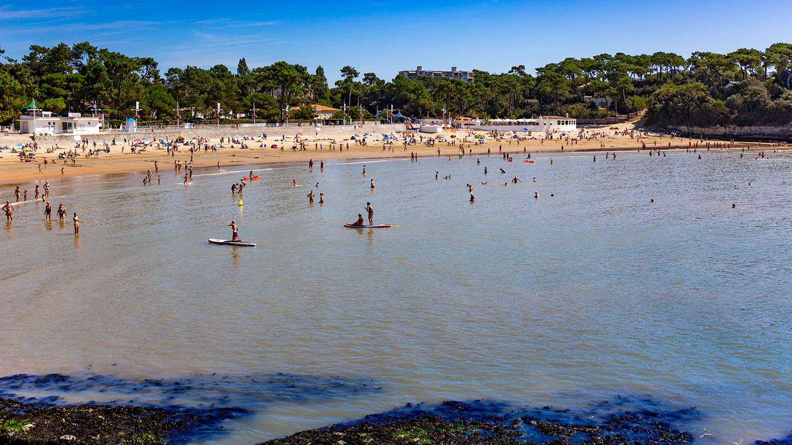 Plus grande plage de la ville, la plage de Nauzan est commune entre Vaux-sur-Mer et Saint-Palais-sur-Mer. Idéale pour les familles elle est bordée d'une promenade pavée où vous retrouverez commerces et restaurant pour profiter au maximum du sable, du soleil et de la mer. La plage de Nauzan est aussi un lieu de festivité. Tous les lundis de l’été, un marché nocturne est organisé de 19h à minuit. Chaque jeudi en juillet et août, la promenade de Nauzan devient musicale sous l’appellation des Jeudis de Nauzan. La Plage de Nauzan est depuis 2021 classée 2 étoiles "Qualité des Eaux de Baignade" avec la mention "Classement Bon". Vous trouverez sur la Plage de Nauzan : - L'École Française de Voile de Saint-Palais-sur-Mer - Le Club Mickey (Club de l’Étoile) La plage de Nauzan est accessible aux handicapés : 3 rampes d'accès, 3 fauteuils hippocampe et 1 tiralo sont disponibles sans réservation. S'adresser au poste de secours pendant la période de surveillance. Les animaux ne sont pas acceptés sur la plage du 1er avril au 30 septembre, se référer à la règlementation/arrêté municipal affiché à l’entrée de la plage. Naturisme interdit. Plage surveillée du samedi 15 juin au dimanche 1er septembre 2024 de 11h à 19h. Équipements pour les handicapés : Tiralo, rampe d'accès et fauteuils hippocampe. Activités : planche à voile, pêche, voile.