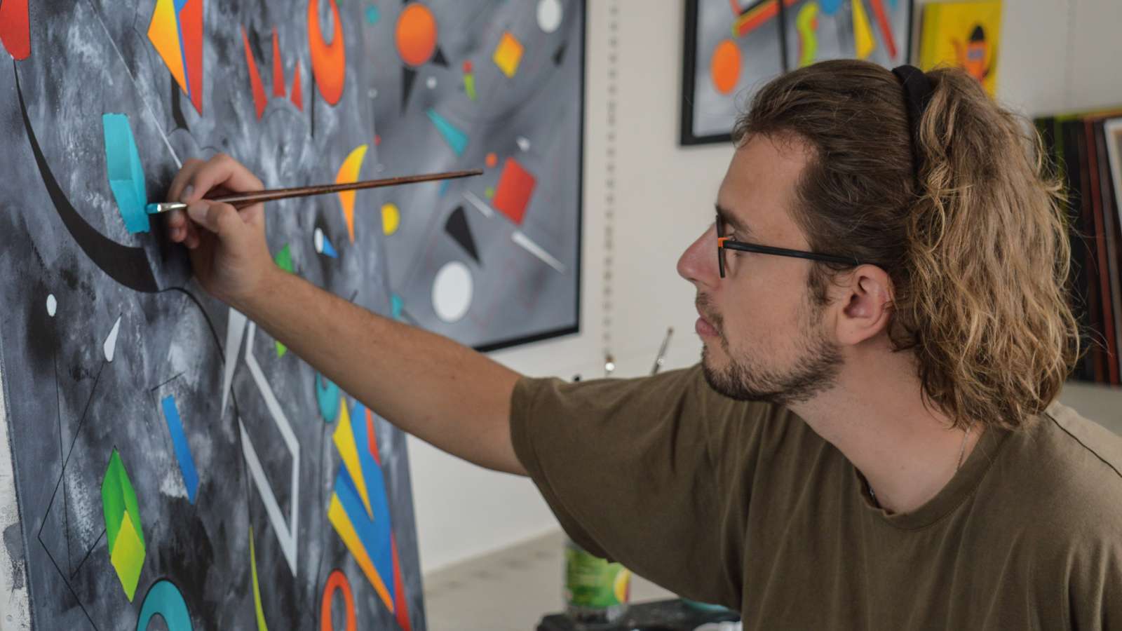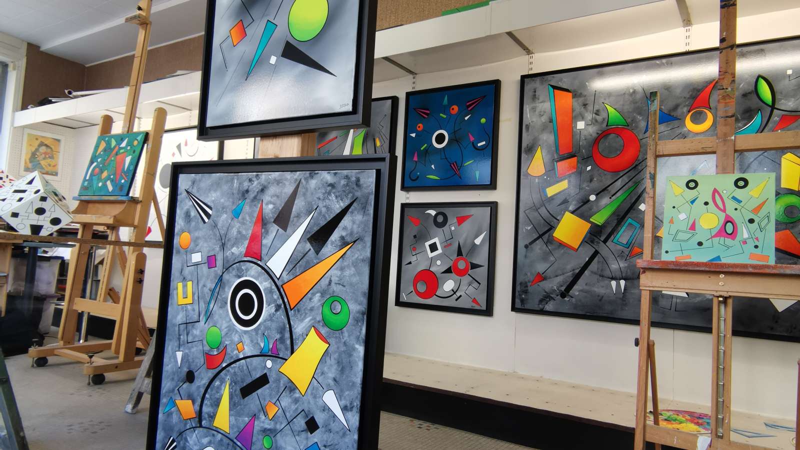 Atelier galerie d'artiste peintre Rémy Demestre vous reçoit dans son atelier galerie. L'artiste jonzacais travaille l'abstraction et la figuration géométrique avec un style très personnel assez atypique. N'hésitez pas à pousser la porte de son atelier pour découvrir son univers gaie et coloré.