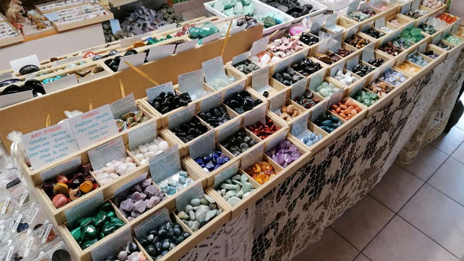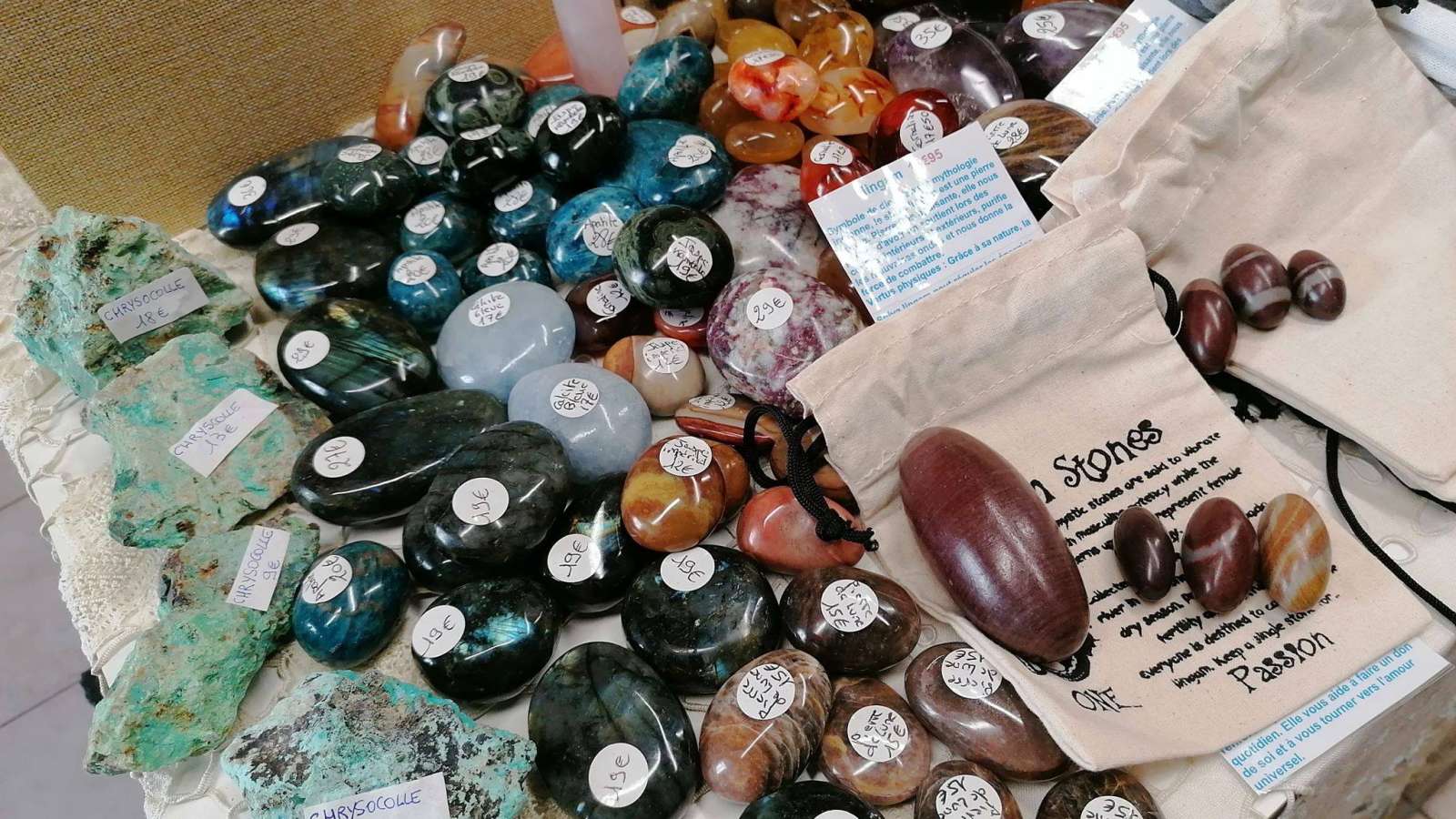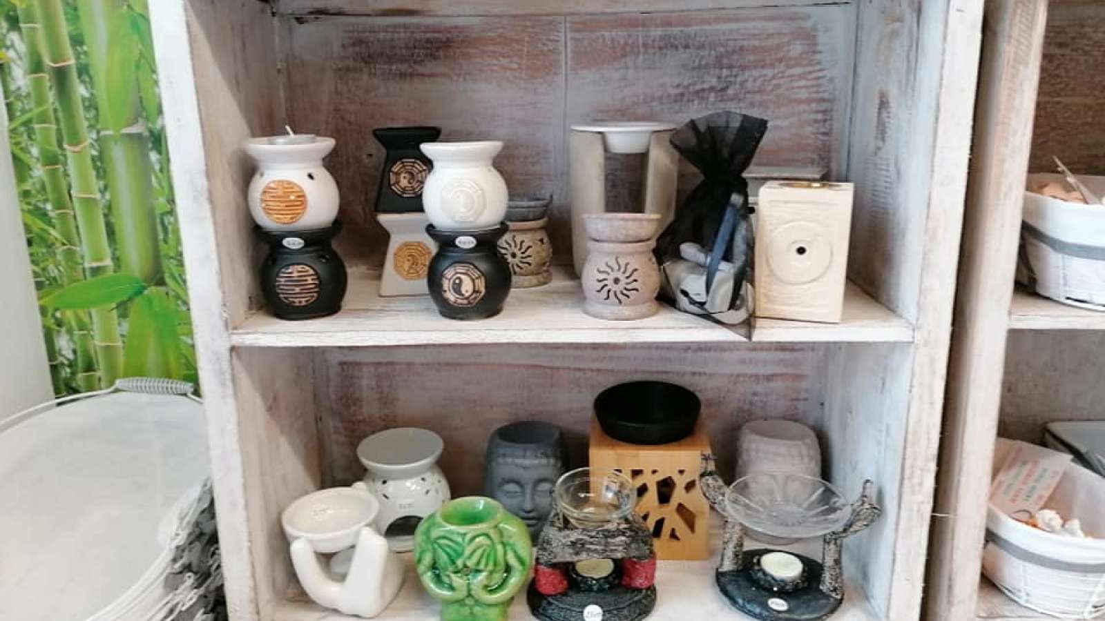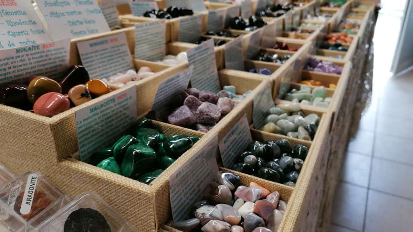 Bijoux, Pierres et minéraux, produits d'hygiènes et bien-être bio. Encens et bougies 100% naturel. Fleurs de Bach. Mobiles énergétiques. Vêtements à l'étage.