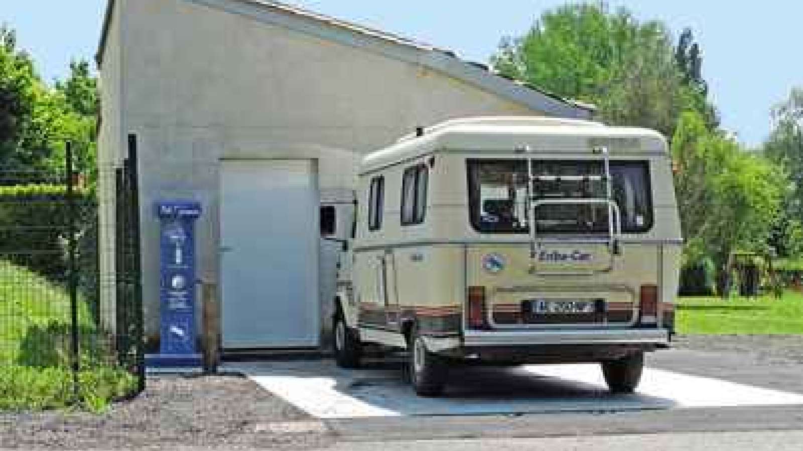 Aire de services camping-cars à proximité de la Tude, d'une aire de pique-nique et de jeux pour les enfants. Stationnement 48h, eau et vidange des eaux usées, sanitaires. L'utilisation des jetons n'est pas requise.