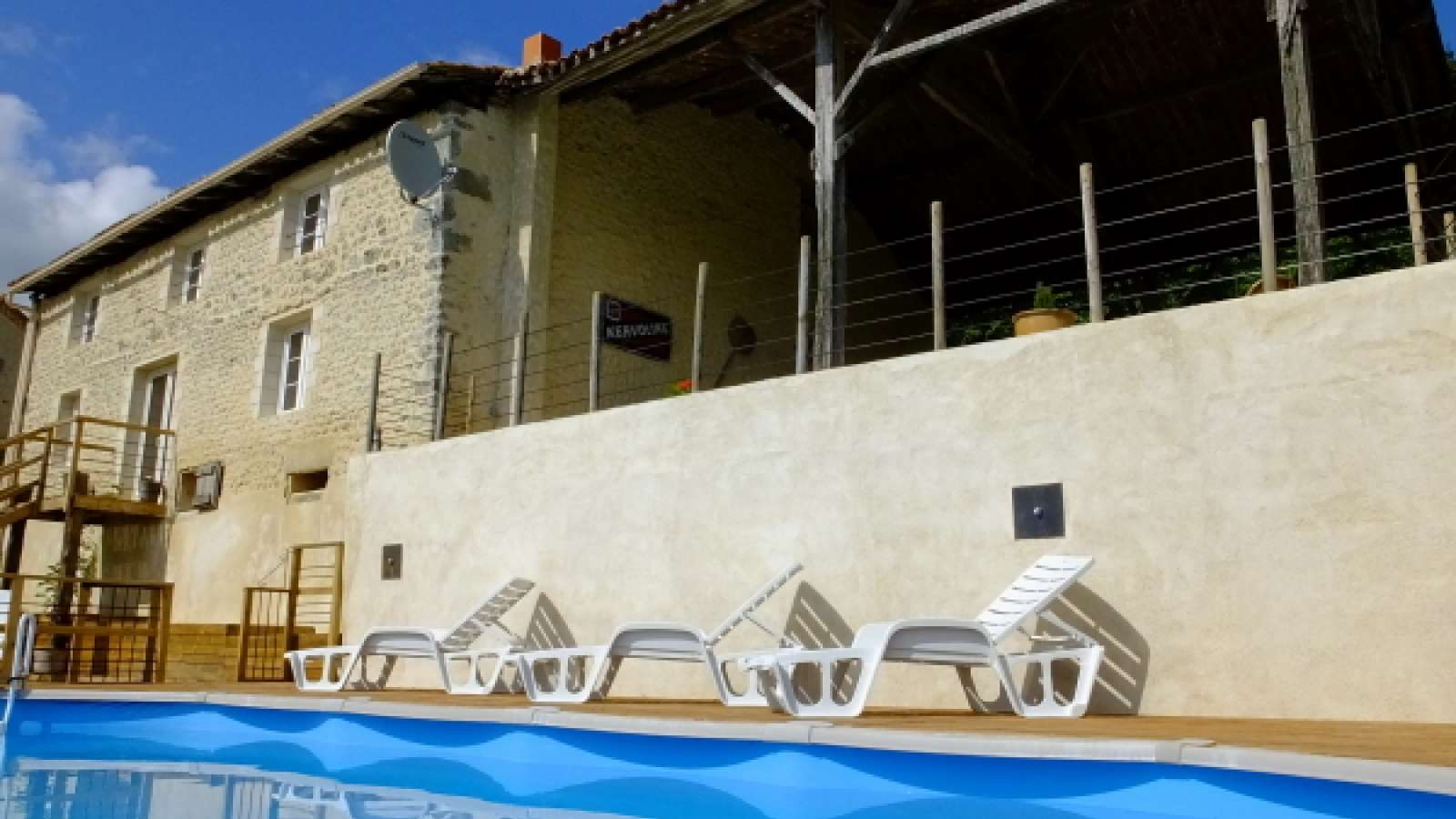Nous nous réjouissons de vous accueillir à "Les Hirondelles". Notre grange transformée a une capacité d'accueil jusqu'à 12 personnes avec une piscine privée de 10 X 5 m et une immense terrasse couverte avec vue sur le lointain. Nous sommes situés dans ce qui doit être l'un des endroits les plus spectaculaires de la Charente avec de belles vues de chaque pièce. Il y a de belles promenades dès la porte franchie et un grand jardin qui mène à la campagne. Nous sommes situés près de la ville de Montmoreau St-Cybard et à 15 minutes de Villebois-Lavalette et Aubeterre-sur-Dronne.