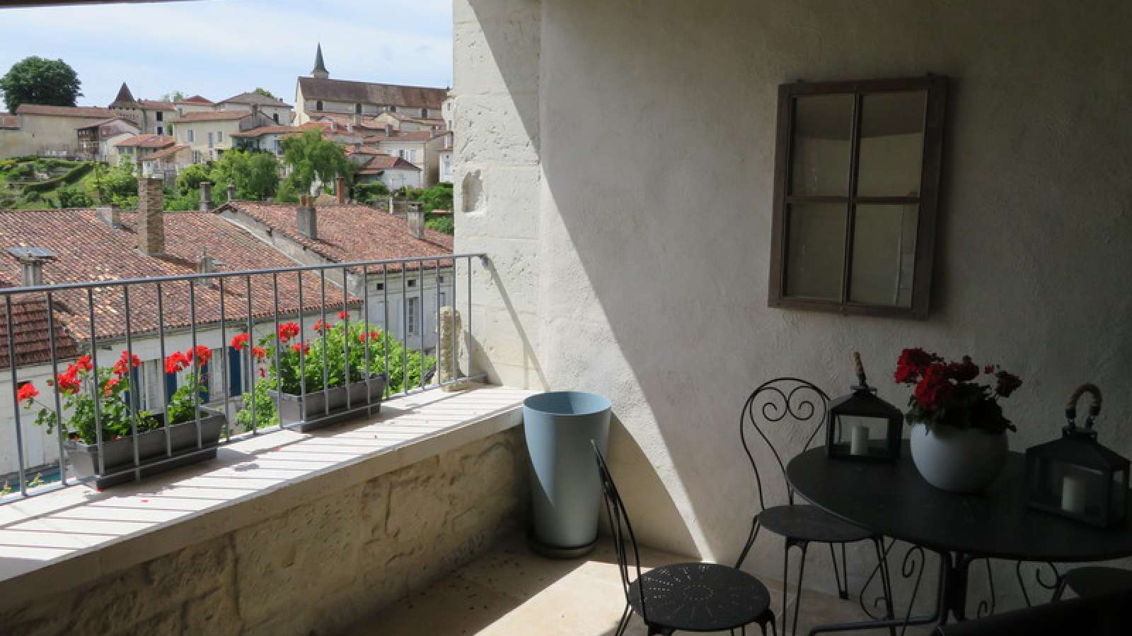 Appartement de haute qualité récemment rénové sur deux étages situé dans un des "Plus beaux villages de France", Aubeterre-sur-Dronne. Vue plongeante sur la place centrale animée. Appartement de haute qualité récemment rénové sur deux étages comprenant une terrasse couverte et exposée plein sud avec une vue imprenable sur les toits, une cuisine entièrement équipée, deux chambres doubles, deux salles de bains et un salon.