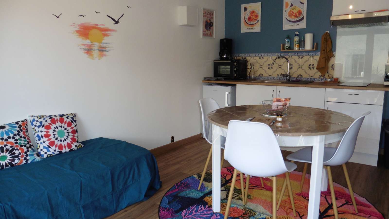 Le gîte De Porto à Tanger, est un charmant petit gîte de 30m2 environ pour 1 à 3 personnes, situé en Sud Charente, à 10 minute de Barbezieux. Gîte au calme, avec jardin et piscine commune à la belle saison. Notre 3ème gîte De Porto à Tanger, est un gîte avec une chambre, une salle de bain avec douche, une pièce de vie avec cuisine et coin salon avec télévision, et une terrasse avec vue sur vignes. La chambre peut être en configuration 2 lits ou 1 grand lit. Dans le coin salon, il y a également un couchage pour 1 personne. La cuisine est entièrement équipée. La piscine est ouverte dès la belle saison. Le jardin de 2000m2 est ouvert à tous les locataires, avec un espace jeux enfants. Vous pouvez également profiter, en supplément, de notre espace détente avec jacuzzi et sauna. Chiens et chats acceptés avec supplément. Toute la décoration du gîte a été faite avec soin, sur le thème des voyages qui nous ont marqué, comme le Portugal et le Maroc. Nous sommes très bien situés, à 10 min de Barbezieux, 30 min d’Angoulême, Cognac, Jarnac et Jonzac.
