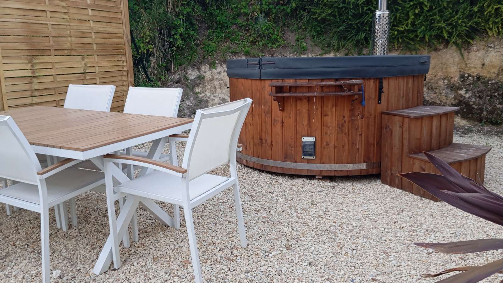 Grand gîte moderne et tout confort accompagnée d'une piscine ainsi que d'un bain nordique, à la campagne au coeur du vignoble charentais. La belle étape est une ode au bien être, au cocooning et à la nature. Un séjour inoubliable où détente et romantisme ne font qu'un. Une literie Kingsize digne des plus grands palaces, une grande cuisine aménagée et équipée, une décoration originale qui met en avant les spécialités de notre si belle région, un coin salle à manger avec table et chaises, une salle de bain avec douche, un espace salon doté d'une télévision écran plat et d'un canapé lit. La belle étape est un logement moderne en prolongement de notre résidence principale, proposant une large ouverture vers l'extérieur, une terrasse avec accès direct à la piscine partagée. Pour plus d'intimité et encore plus de bien être vous profiterez d'un jardin secret accessible uniquement par vous, situé derrière la maison pour un moment privilégié de détente et de déconnexion à deux dans votre bain nordique. Barbecue, fléchette à votre disposition et massages, coach sportif sur rdv. Situé à 4km de Barbezieux Saint Hilaire et 15km environ de Jonzac.