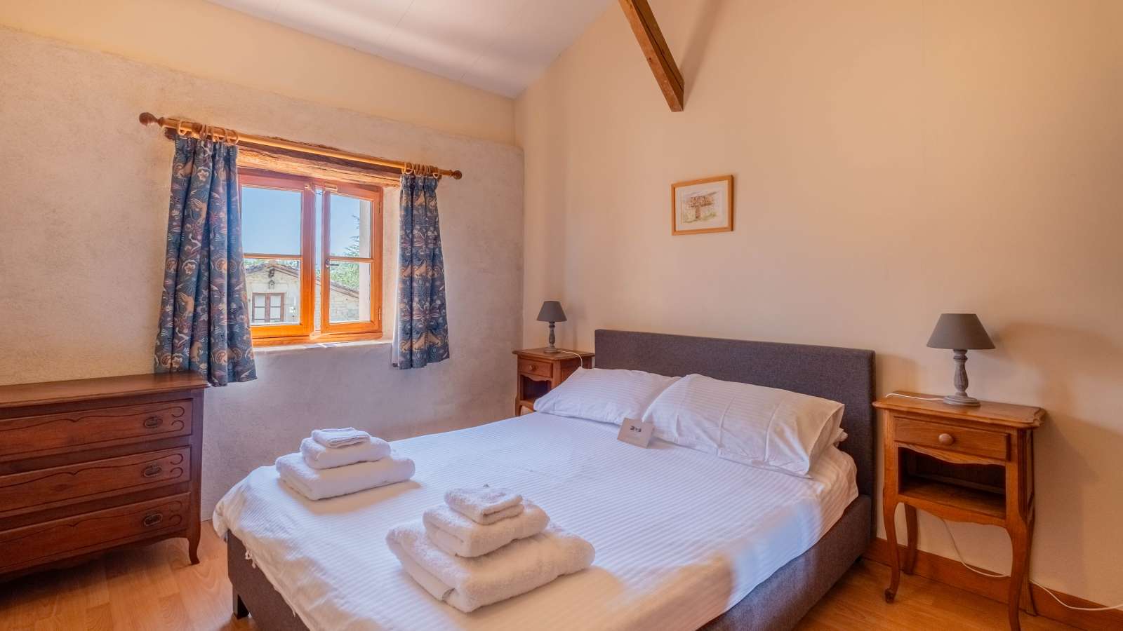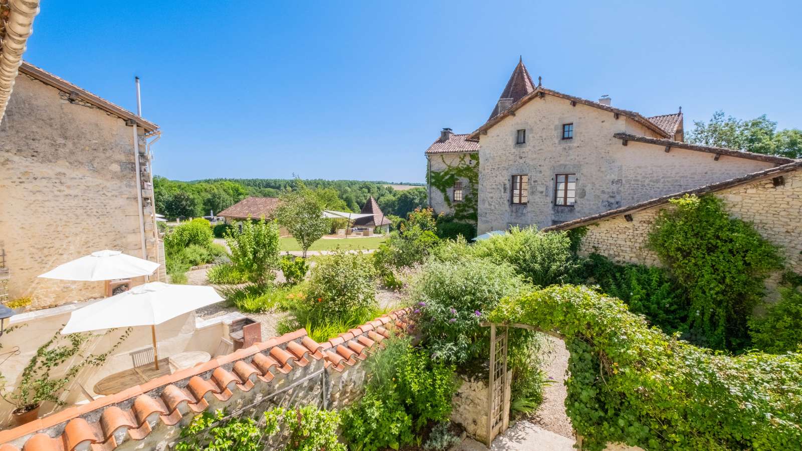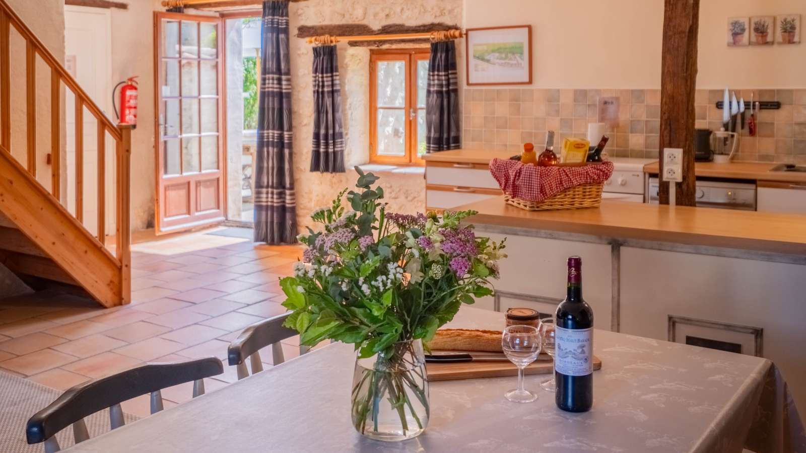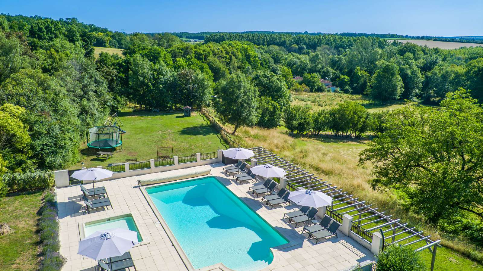 Le Mas Provençal: The Toddler Safe Gîte - Aux portes du Périgord, nichée entre le charmant et paisible village de Gurat et 14 hectares de bois et prairies, le Château de Gurat propose 6 gîtes avec piscine et bassin séparé pour les petits. Il y amples possibilités pour amuser les enfants de tout âge avec un bac à sable géant, trampoline, balançoires, et dans la grange rénovée toutes sortes de jouets, jeux et livres, DVD, un baby foot et table de ping-pong. Il y aussi la rencontre avec les animaux (cochons d’Inde, moutons, chèvres, poules), les promenades dans la campagne et la visite de la Charente et de la Dordogne. Le Mas Provençal - Avec une vue imprenable sur les jardins, le bac à sable et le parc. C'est un endroit idéal si vous voulez vous asseoir sur la terrasse avec un bon livre et un verre de Bordeaux, tout en gardant un œil sur les enfants qui jouent. Voir la photo dans la galerie ci-dessous des vues du coin de la terrasse sur le paysage vers le bac à sable et le parc. Surface habitable de 77m2 au total.
