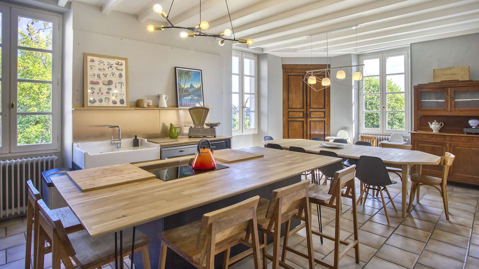 Située dans un endroit de rêve, cette luxueuse maison surplombe la vallée de la Tude, et vous offrira une vue magnifique sur son environnement vallonné. Prenez plaisir à profiter du grand jardin luxuriant et du calme du village de St-Laurent de Belzagot. Venez découvrir ce logement classé 4 étoiles par Charentes Tourisme. C'est avec passion que cet ancien presbytère a été rénové pour en faire une magnifique maison familiale avec piscine chauffée. Passionnés par les vieilles pierres, la décoration et les brocantes, les propriétaires ont mis tout leur amour et toute leur énergie pour faire revivre cette magnifique demeure. Située dans un endroit de rêve, cette luxueuse maison surplombe la vallée de la Tude, et vous offrira une vue magnifique sur son environnement vallonné. Adultes et enfants prendront plaisir à profiter du grand jardin luxuriant (1200 m2) et du calme de l'adorable village de St-Laurent de Belzagot. Cette belle dame, qui fêtera bientôt ses 200 ans, est située à proximité immédiate du chemin de St Jacques de Compostelle et garde de nombreuses empreintes du passé. LA MAISON C'est parce que les propriétaires sont très attachés à la qualité de votre séjour qu'ils ont confié les clés de leur maison à un service de conciergerie à votre service 24/7. Ainsi, vous serez accueillis et écoutés par du personnel qualifié pour pouvoir pleinement profiter de vos vacances dans cette grande et chaleureuse demeure (320 m2). Orientée face au Sud et surplombant la vallée, le presbytère vous permettra de profiter de 6 chambres et de 3 salles de bain pour confortablement accueillir jusqu'à 10 adultes et 3 grands enfants. Vous pourrez donc en profiter pour vos réunions de familles ou d'amis, mais aussi pour des séminaires dans la nature (yoga, méditation). La maison est propice aux séjours tout au long de l'année. Vous pourrez en effet profiter de sa piscine chauffée de mi-avril à mi-octobre (lorsque les températures le permettent) et de sa belle cheminée le reste de l'année. La douceur de la chaleur diffusée par les vieux radiateurs en fonte vous enveloppera dès que les températures baisseront. L'ENVIRONNEMENT La maison est située en bord de village, mais surtout à proximité immédiate d’un beau terrain de pétanque, entretenu et peu fréquenté. De belles parties au soleil couchant pourront ainsi égayer vos soirées d’été. Les principaux services dont vous aurez besoin se situent à 3 minutes en voiture : station de recharge pour véhicule électrique, super marché, boulangerie, centre médical, coiffeur, etc. Par ailleurs, et au-delà des nombreux attraits de la maison, de nombreuses activités et visites vous tendent les bras et vous garantiront des vacances réussies quelques soient vos envies : des sites touristiques incontournables en Charente ou en Dordogne, le marché de Ribérac, Angoulême et son musée de la bande-dessinée, un parc d'escalade, des plages sur la rivière, du géocaching, de l’équitation, du canoë et bien plus encore.