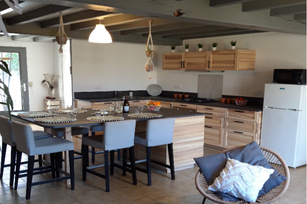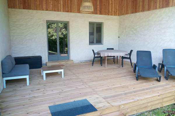 Camping 3* adoptant une démarche Eco-responsable propose ce gite pour 6 personnes composé d'une cuisine équipé et ouverte sur une grande pièce de vie (45m2) donnant sur une belle terrasse bois sous pergola dépliante. À l'étage deux grandes chambres de 15m2 chacune et une salle de bain avec douche. 2 chambres à l'étage : Chambre n°1 : 1 lit double (140x190) Chambre n°2 : 1 lit double (140x190) et 1 lit superposé avec en haut 1 lit simple (90x190) et en bas 1 lit double (140x190) Le gite possède sa propre entrée, indépendante de celle du camping, tout en donnant accès à ses infrastructures (piscine et pataugeoire, aire de jeux pour enfants, tables de ping-pong, home-ball, billard, resto-bar …). Le camping Le Petit Lion des Tourbières situé aux portes du Parc Naturel Régional Périgord Limousin et du site Natura 2000 des Tourbières de Vendoire, met à disposition de grands emplacements de 100 à 200 m². Vous trouverez également sur le camping des huttes, des tentes aménagées, 1 autre gite de 6 personnes et un studio de 3 personnes. Vous serez au point de départ idéal pour vos escapades à pieds avec de nombreux parcours de géocaching. Sur les routes touristiques, vous irez en direction du "Petit Versailles" charentais le château de la Mercerie, tout proche aussi du château de Villebois Lavalette, de la découverte de la Venise verte du Périgord en canoë à Brantôme et son abbaye ou, en longeant la Dronne, vos pas pourraient vous conduire vers l'un des plus beaux village de France, Aubeterre-sur-Dronne et son église monolithe. Les fermes auberges, les producteurs locaux, toutes les saveurs du Périgord et du Cognac sont à deux pas du camping Le Petit Lion des Tourbières. Les différentes animations seront l'occasion d'échanges et de détente (soirée à thèmes, pétanque, jeux extérieurs, espace enfants, sensibilisation compostage et tri des déchets).