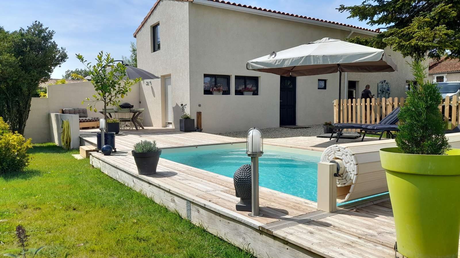 Gîte situé à Baignes Ste Radegonde à proximité de toutes commodités à moins de 2 mn à pieds. Le gîte est composé d'une pièce de vie d'une surface de 25 m2 avec cuisine équipée (lave vaisselle, four, plaque induction, micro-ondes, frigo et petits électroménagers. et wc avec machine à laver. A l'étage : - 1 chambre parentale avec un lit de 160X200 avec un coin bureau, une méridienne et sa salle d'eau ; douche, lavabo et wc, (avec une table à langer) - 1 chambre avec un lit double de 140x190 et sa salle d'eau (douche et lavabo) Une terrasse avec table, chaises, parasol, barbecue électrique, transats et hamac La piscine est accessible directement par la terrasse à partager avec les propriétaires (2 personnes). Des vélos pourront être mis à disposition gratuitement pour de nombreuses balades sur les pistes cyclables vertes (seul les casques ne sont pas fournis). Un Abri est disponible si vous venez avec vos propres vélos. Les motards sont également les bienvenus car nous sommes nous-mêmes motards. Les motos peuvent stationner à l'intérieur de la propriété car clôturée et portail électrique. Les voitures pourront stationner à l'extérieur sur une place dédiée. Lit bébé (lit parapluie) chaise haute, baignoire disponibles sur demande. Accès Internet WIFI privatif Jeux de société et livres sont disponibles à la demande. Nos amis les petits chiens ne sont pas admis (car nous avons un petit Jack Russel) A proximité de toutes commodités, commerce, tabac, pharmacie, Marché les mercredis et dimanches matin (marché à thème le 3ème dimanche du mois), à moins de 200 m du gîte. De nombreux sites médiévaux à visiter (Cognac et ses vignobles , Aubeterre sur Dronne avec son église souterraine. Saveur locales ,Village de charme et bien d'autre visites à faire aux alentours. Jonzac pour sa cure thermale et son parc aquatique (les Antilles). 40 MN d' Angoulême, 45mn de Bordeaux 1h30 de La Rochelle, Ile d'Oléron A visiter également : Talmont sur Gironde, Meschers sur Gironde et ses grottes de Régulus.