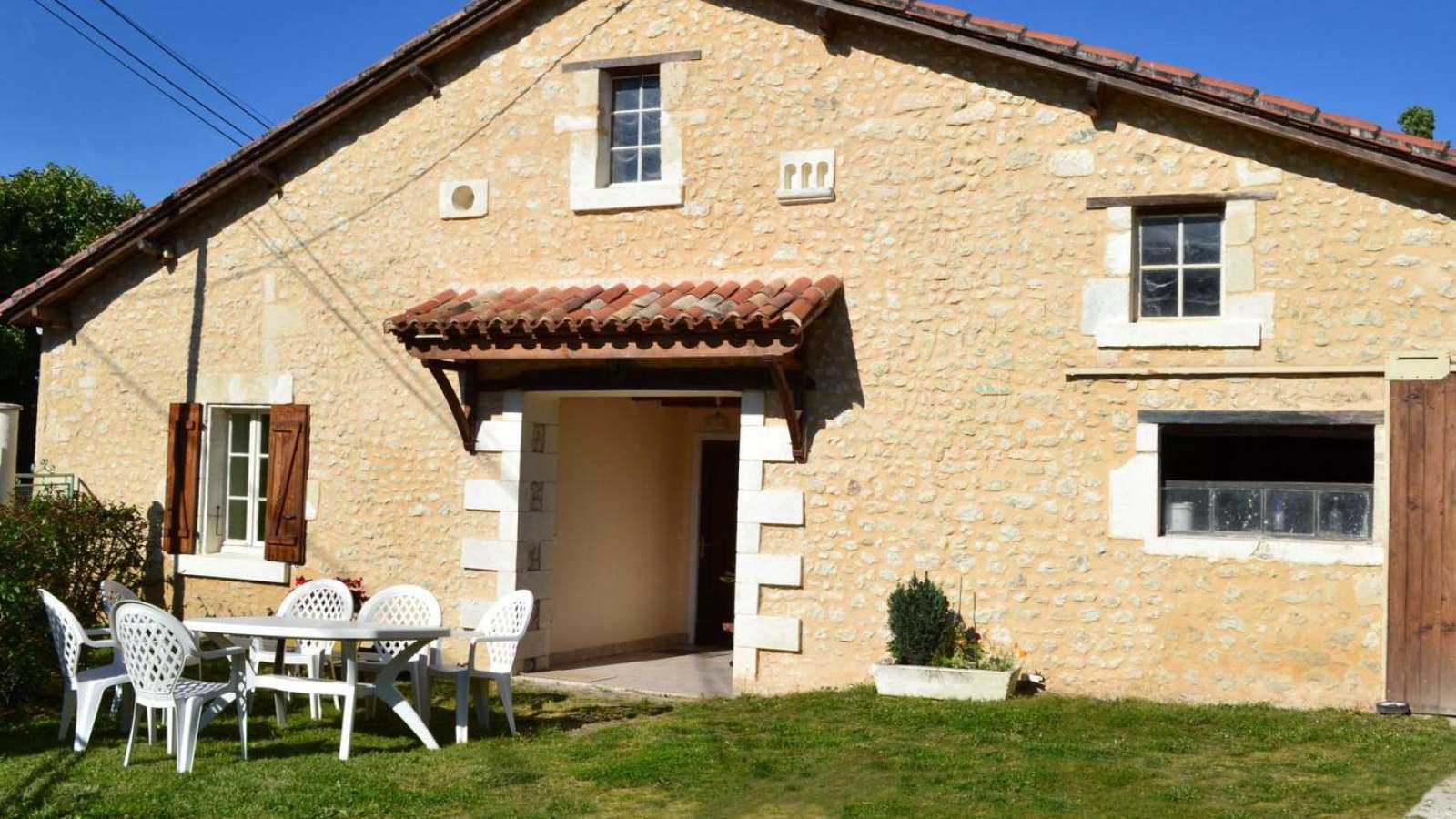 Maison en pierres apparentes, située dans un petit village typique du Sud Charente, à proximité du Périgord et d'Aubeterre sur Dronne, classé parmi les plus beaux villages de France. Entrée couverte, 2 marches à descendre pour accéder au séjour