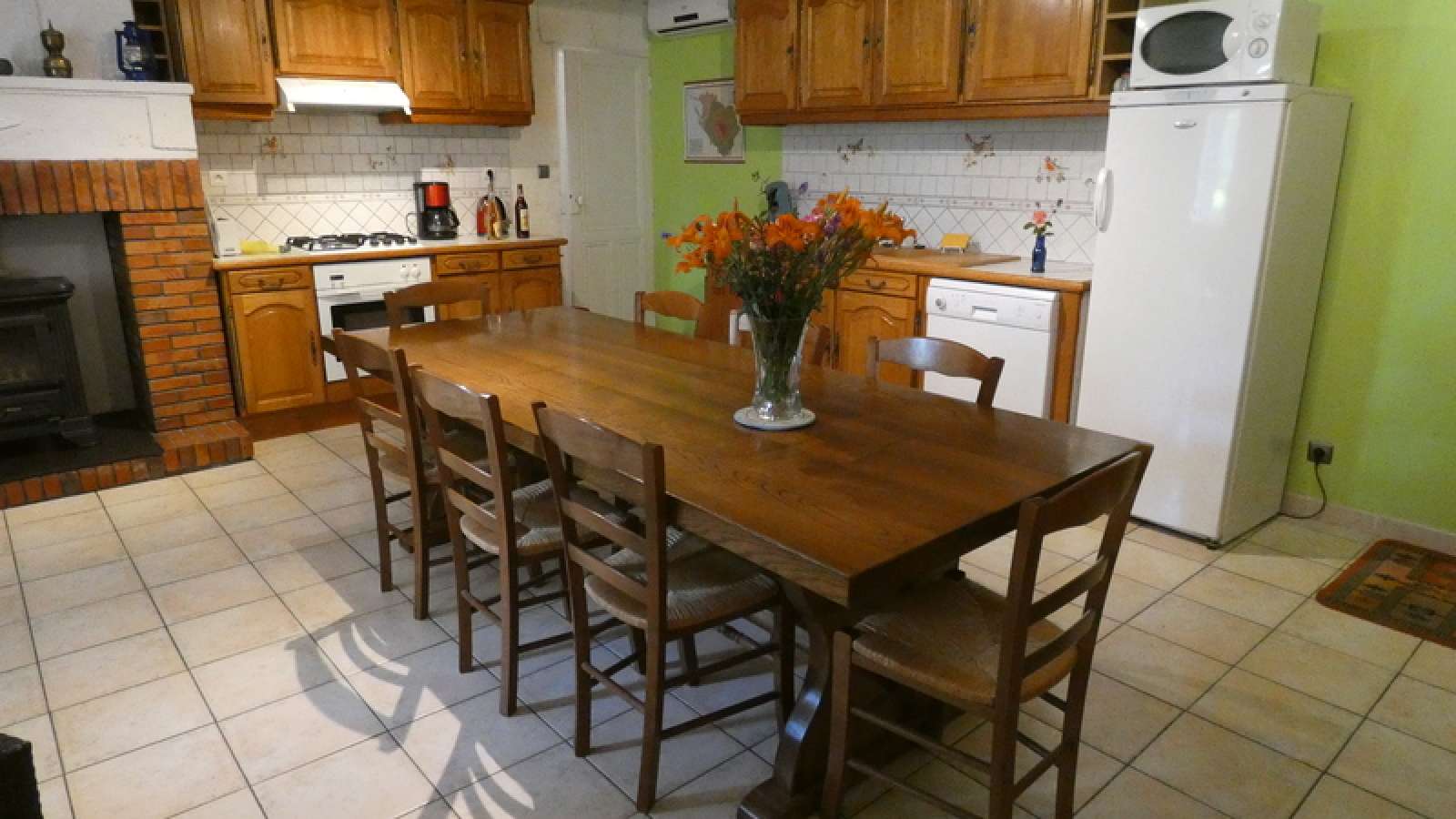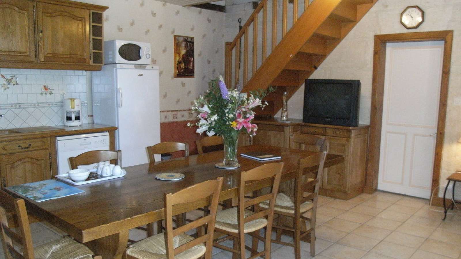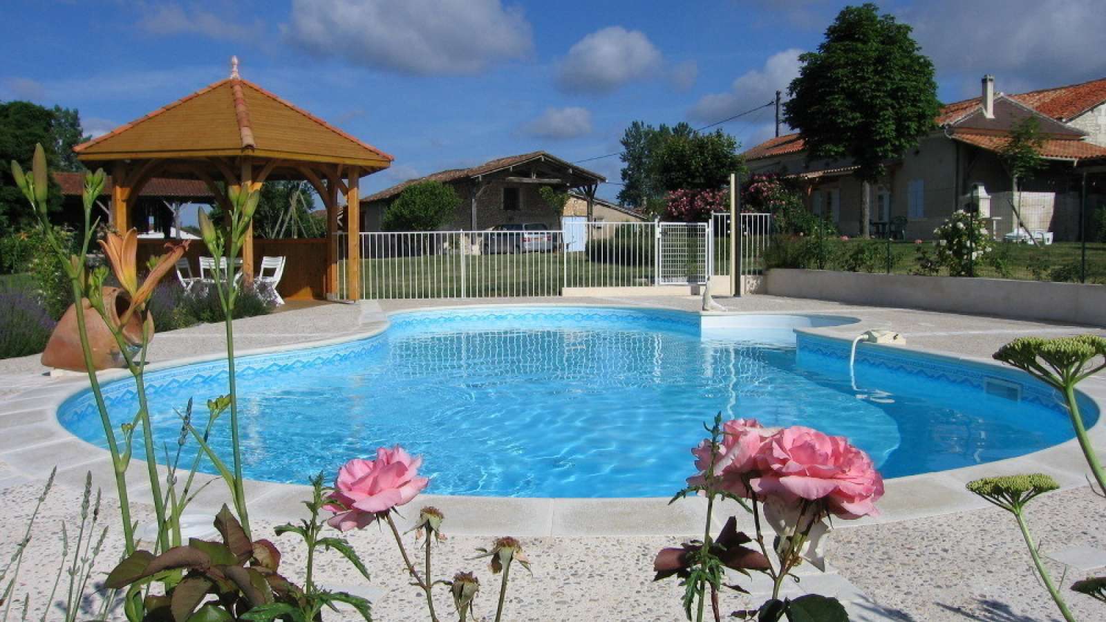 Cette maison charentaise indépendante est entourée d'un grand terrain clos, à 500 m du bourg, dans un cadre reposant avec vue sur la campagne. Au rez-de-chaussée : séjour avec coin cuisine, 1 chambre avec lit 160 x 200, 1 salon avec canapé-lit 2 personnes, salle de bains, wc indépendants. A l' étage : 1 grande chambre avec 1 lit 140 et 1 lit 90, 1 chambre avec 2 lits 90, coin lecture, salle d'eau avec wc. Lit bébé à disposition. Climatisation en été, internet, chaîne Hifi. Terrasse, terrain clos privé de 2500 m² avec portique et piscine privative close de 5 x 11 m (chauffée par capteurs solaires). Abri voitures. Possibilité entretien quotidien. A proximité : circuits de randonnée, location VTT, circuit de pilotage.
