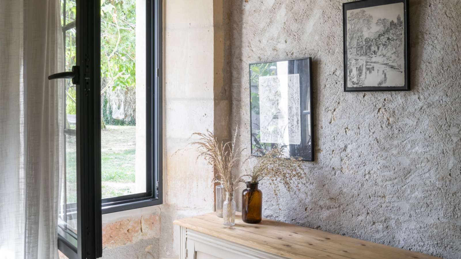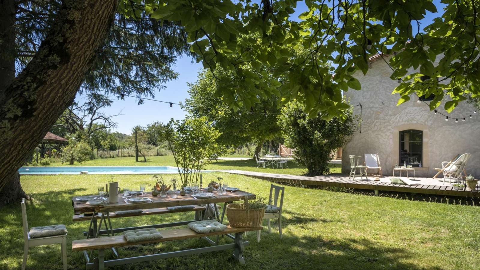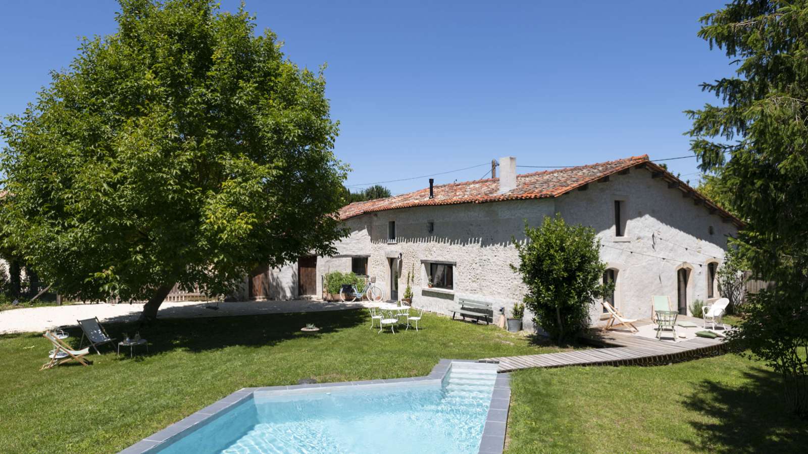 Entièrement rénovée en 2021 dans un style campagne cosy, la maison, située dans un charmant hameau, à 2.5 km de Baignes Sainte Radegonde et ses commerces, est équipée d’une piscine et de 6 couchages. Maison pour 6 personnes (idéal un couple avec enfants ou deux couples), entourée d’un jardin privatif d’environ 1000 m² comprenant une piscine non chauffée de 9x4 m (équipée d'une alarme), du mobilier d’extérieur (2 coins repas et une terrasse) et un barbecue. Les 110 mètres carrés se composent de Au rez-de-chaussée : • une cuisine-salle à manger entièrement équipée avec un poêle à granulés • un salon avec cheminée et coin table • une salle de douche avec WC Au premier étage : • une mezzanine ouverte avec un espace TV, un coin jeux-lecture, une cabane de couchages avec un lit en 160x200 cm et au-dessus 2 matelas en 90x200cm (espace sous-pente à réserver à des enfants) • une chambre double avec lit en 160x200 cm avec un espace toilette-douche et WC La maison du clocher est située dans le charmant hameau de Sainte-Radegonde, à 2,5 km du centre du village de Baignes-sainte-Radegonde où vous trouverez tous les commerces nécessaires (supermarché, boulangeries, boucherie, pharmacie, station-essence, centre médical…) et un marché avec des producteurs locaux deux matinées par semaine.