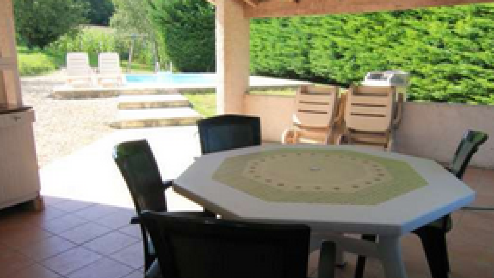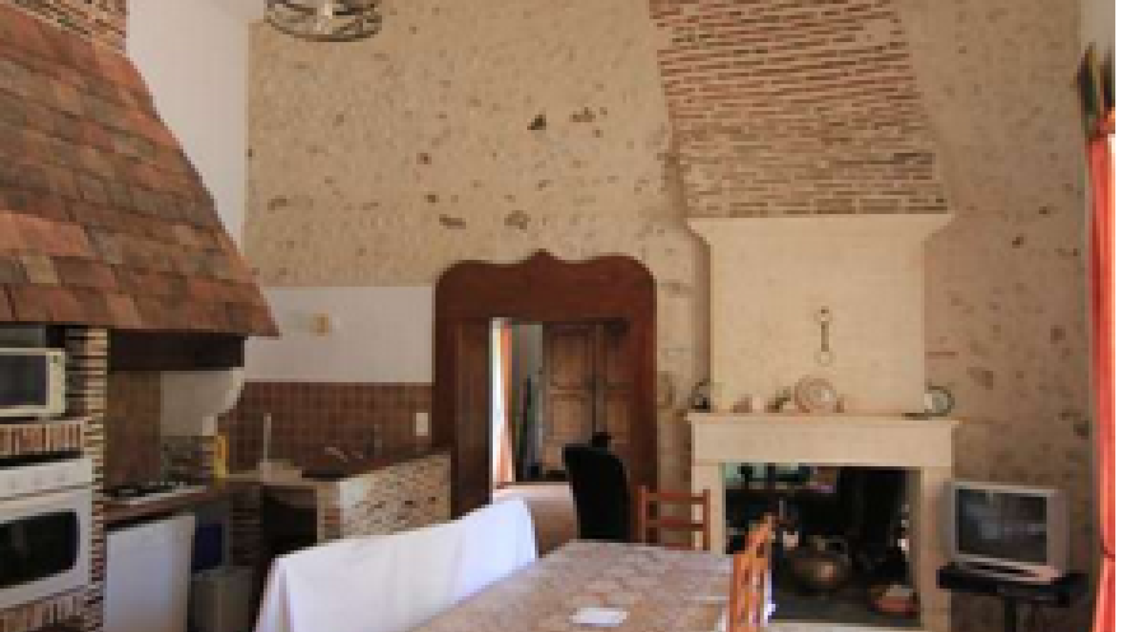 Maison mitoyenne de caractère de plain-pied à la campagne. Séjour avec coin cuisine, salle à manger-salon, 3 chambres, salle d'eau, WC, chauffage central. Équipement : micro-ondes, LL, LV, TV, (formule téléséjour), salon de jardin, barbecue, piscine, jardin arboré en pelouse. Terrasse couverte non fermée, nécessaire bébé.