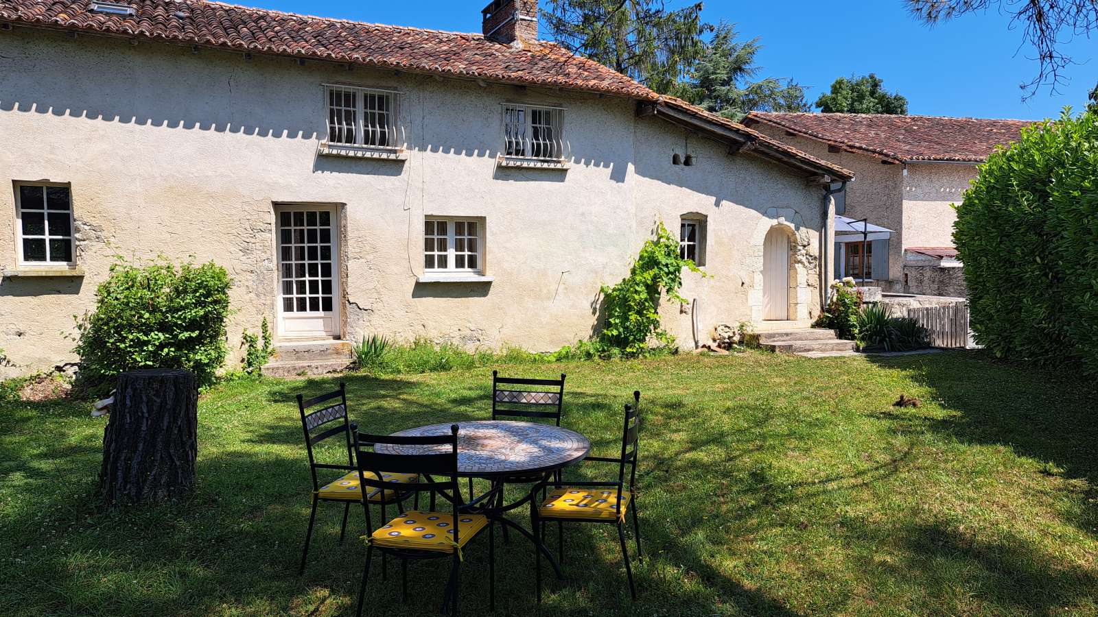 Le gîte "les Orangers" d'une surface de 75 m2 accueille 5 personnes et dispose de 3 chambres (2 lits adulte 1 lit une place) une salle de bains (douche) une grande cuisine un salon et d'un grand jardin. Deux espaces repas à l'extérieur. Situé en Sud Charente à proximité d'Aubeterre sur Dronne et de la Dordogne. Vous y trouverez un cours de tennis, un espace jeux (Billard, Baby Foot, Fléchettes) et un espace extérieur (cages de foot, ping pong, balançoires, trampoline,cabane) et une salle de sport, d'une grande piscine (10x5m) partagée avec le gîte Turquoise.